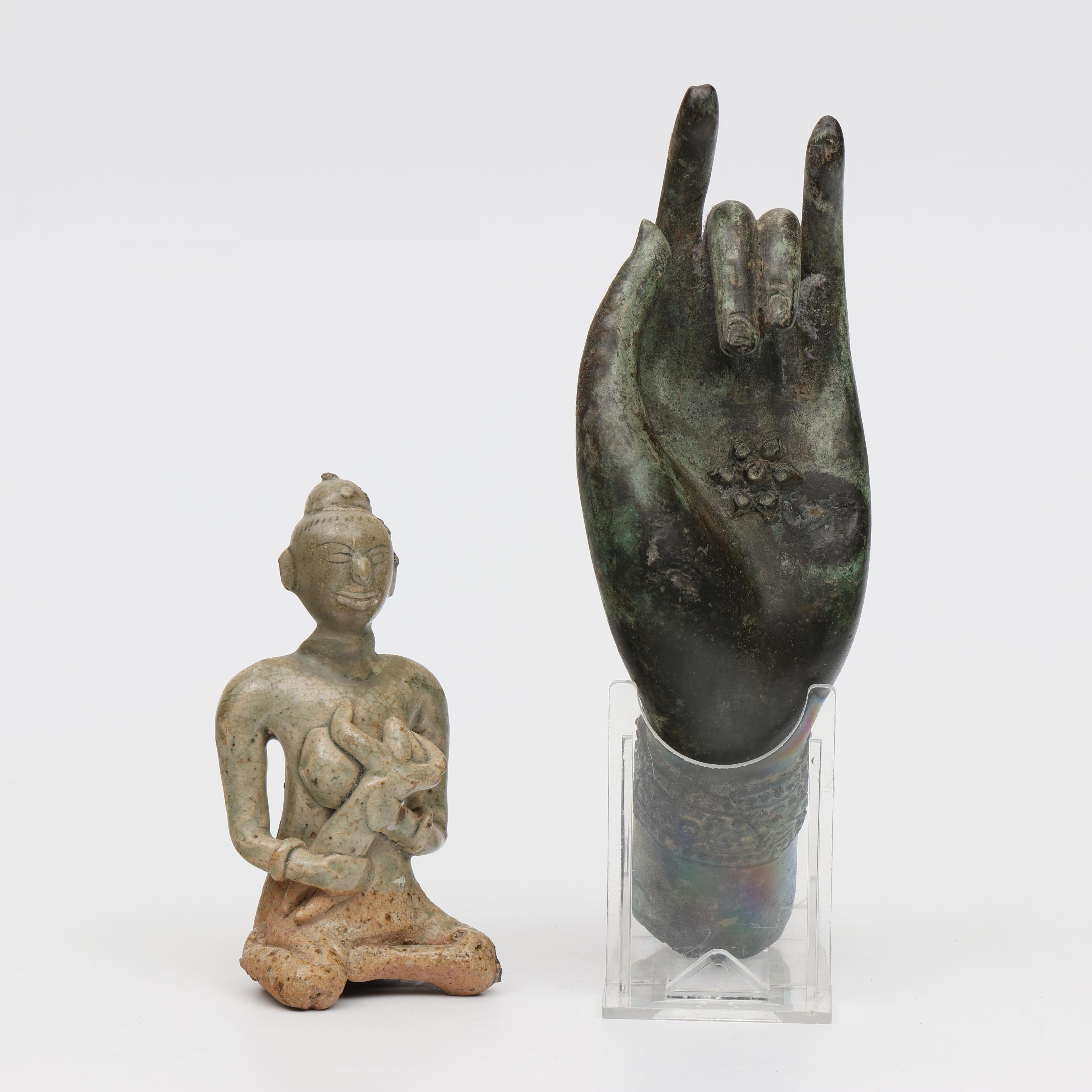 Thailand, green patinated Boeddha's hand, 20th century;