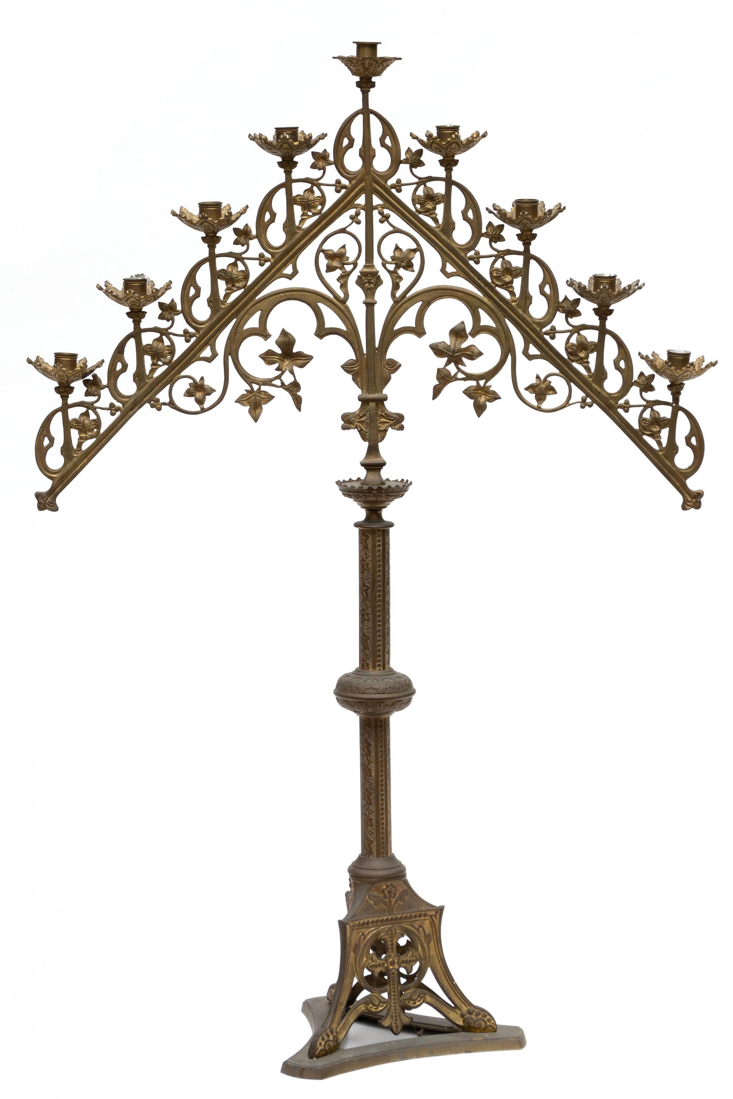 Kapitale koperen acht lichts kandelaar, circa 1900;