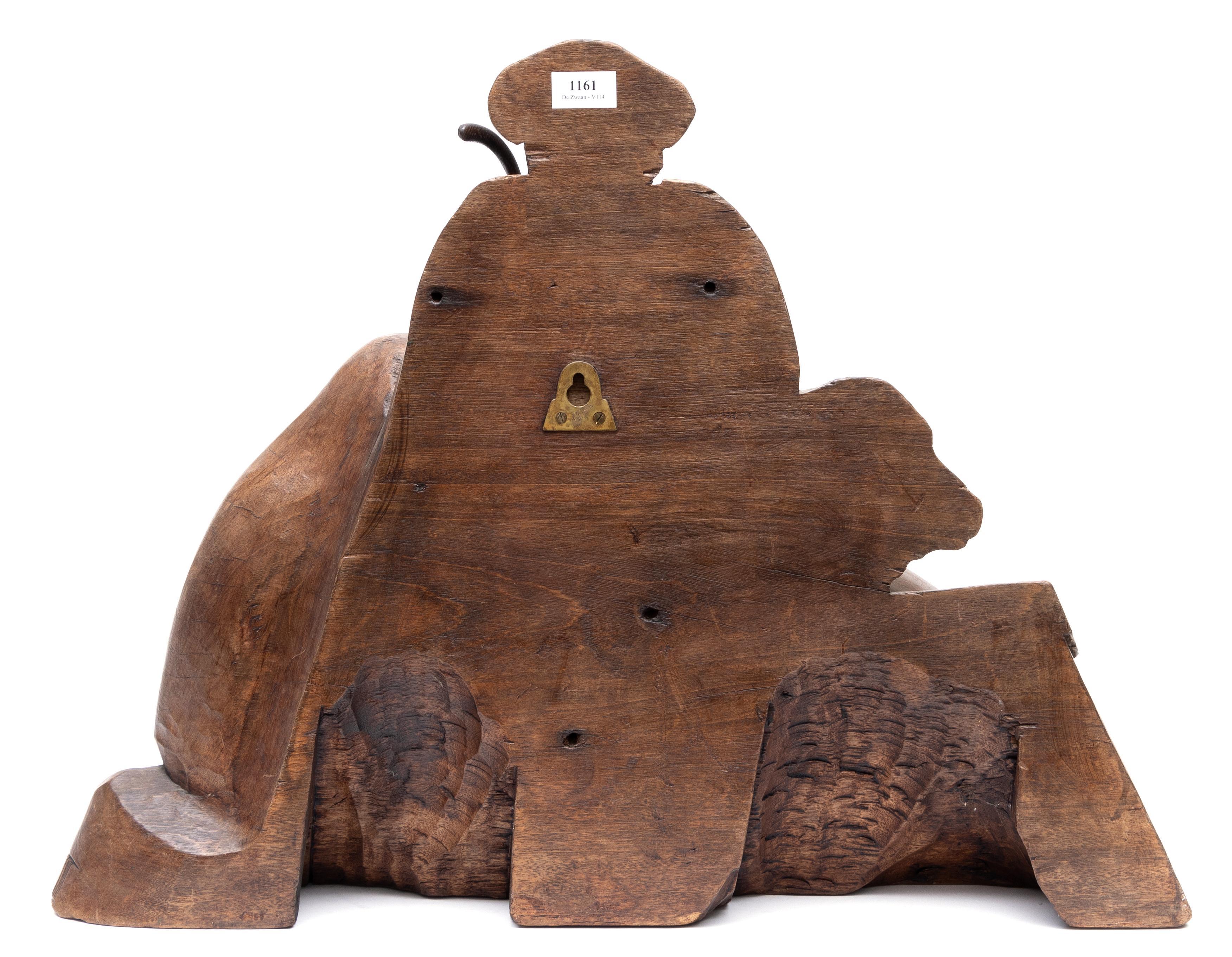Eikenhouten gestoken sculptuur voorstellende kinneke Jezus, Maria en drie Wijzen uit het Oosten, 20e eeuw;