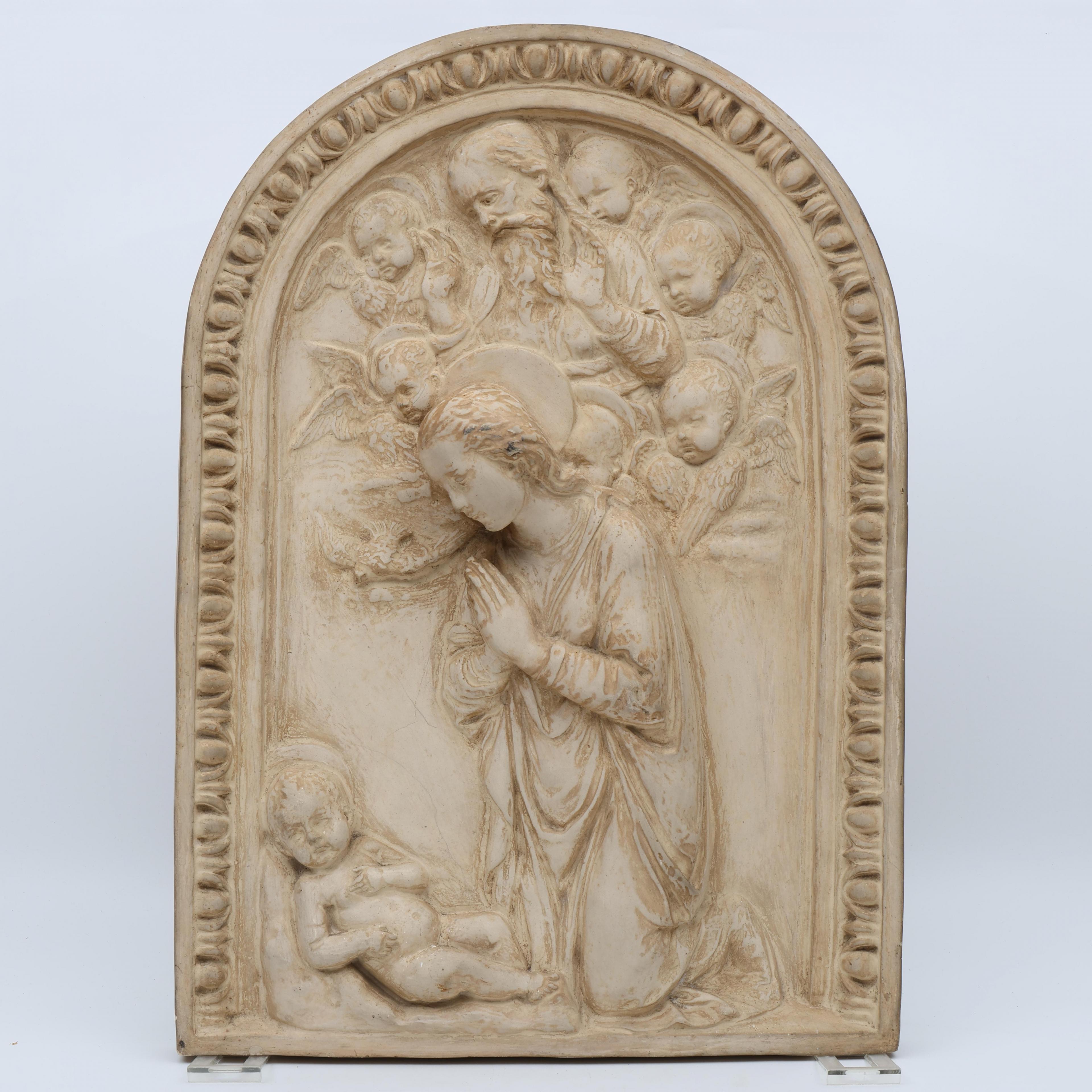 Italië, terracotta reliëf plaquette met voorstelling van kindje Jezus en Maria, uitvoering Di Signa in de stijl van Della Robia, ca. 1900;