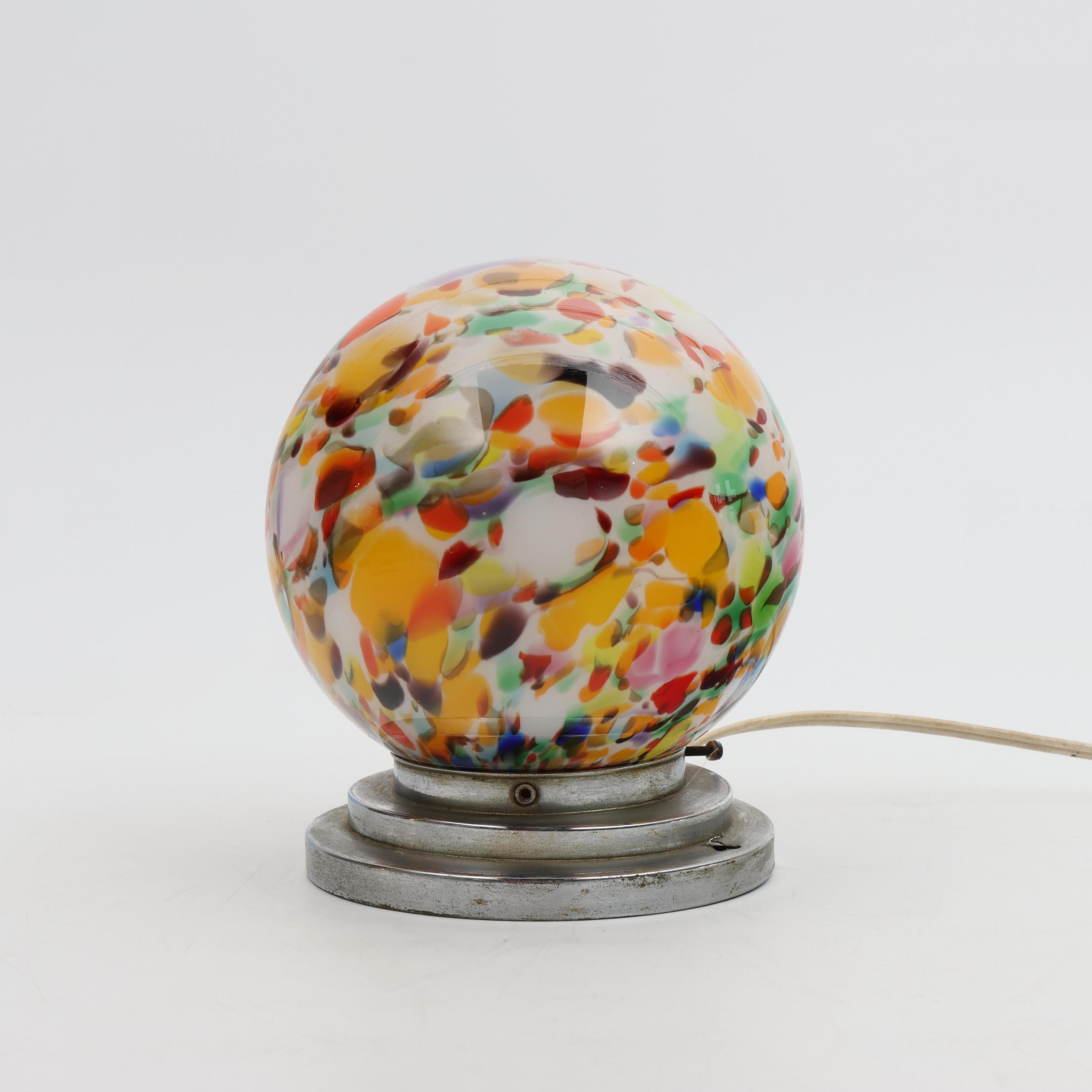 Art Deco tafellampje met glazen bolvormige kap, circa 1935;