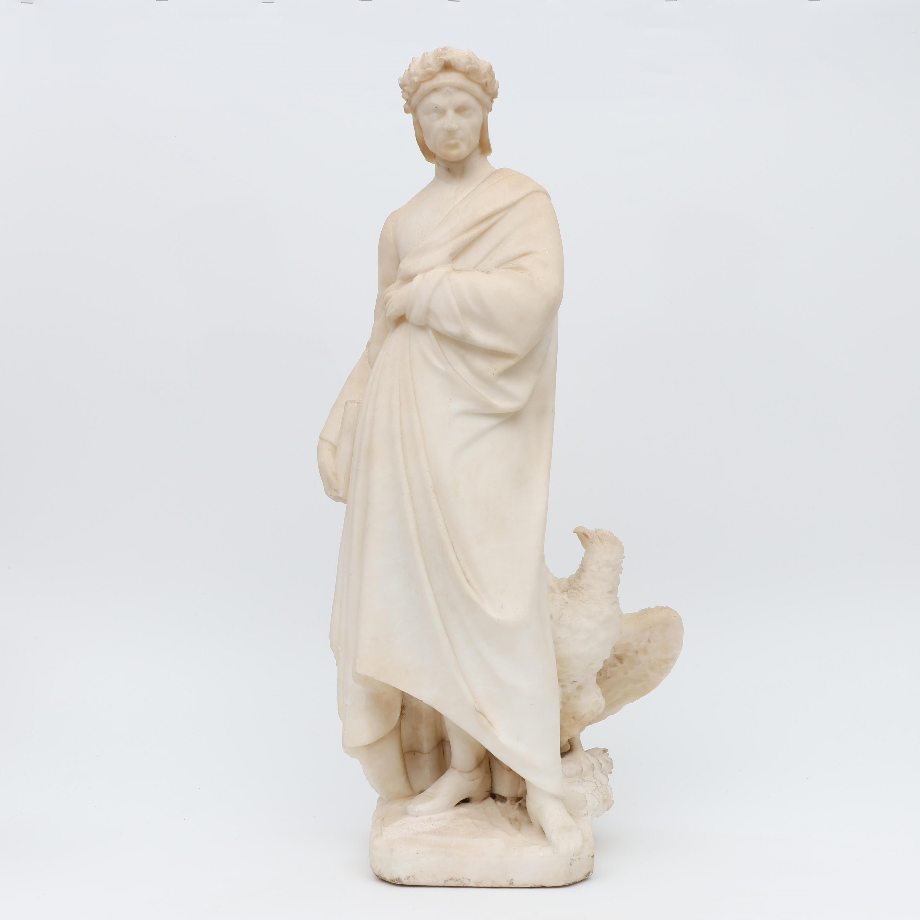 Italië, wit marmeren sculptuur voorstellende Dante Alighieri, 19e eeuw;