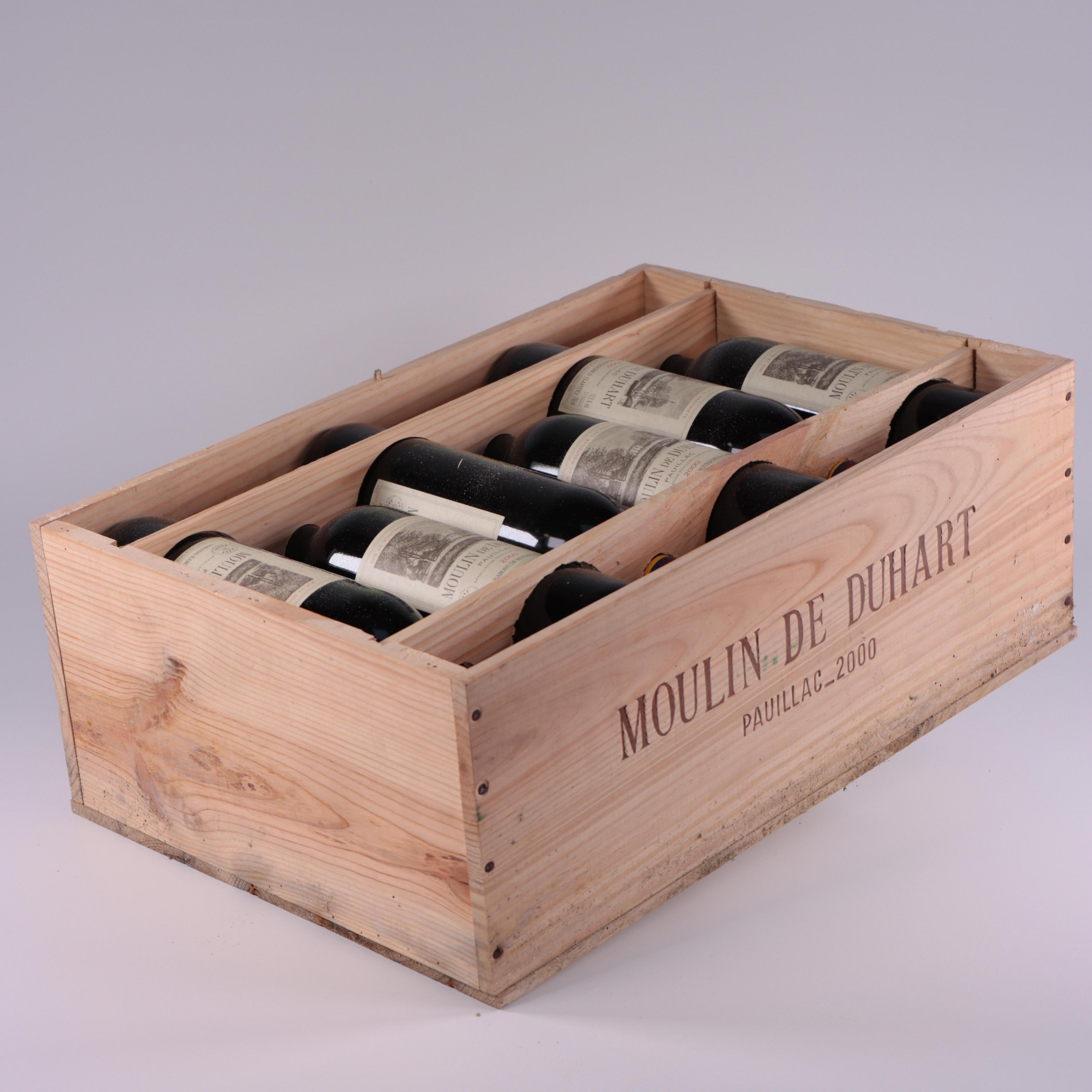 Twaalf flessen wijn, rood, Chateau Moulin Duhart, Domaines Barons de Rothschild, Puaillac, 2000. In kist.