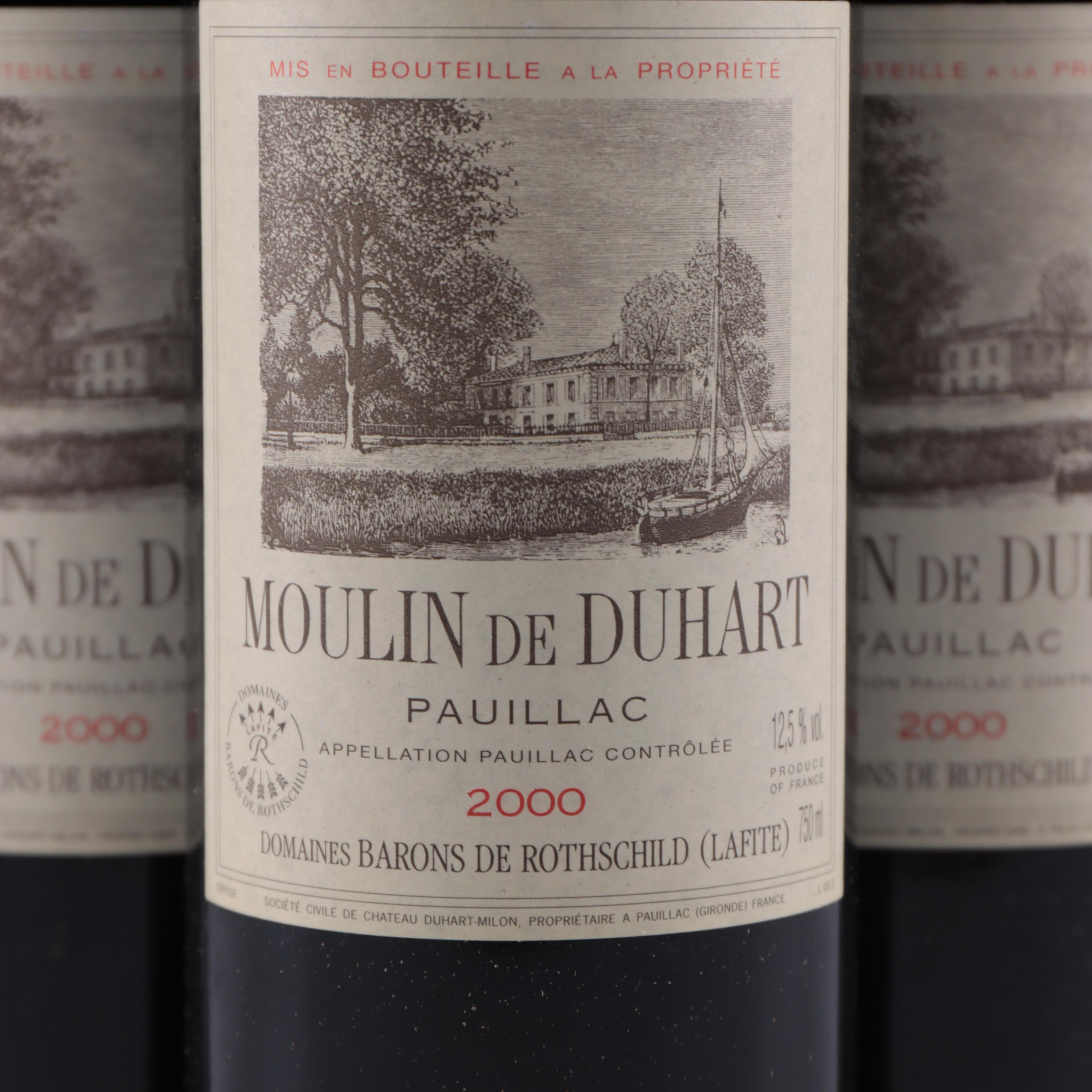 Twaalf flessen wijn, rood, Chateau Moulin Duhart, Domaines Barons de Rothschild, Puaillac, 2000. In kist.