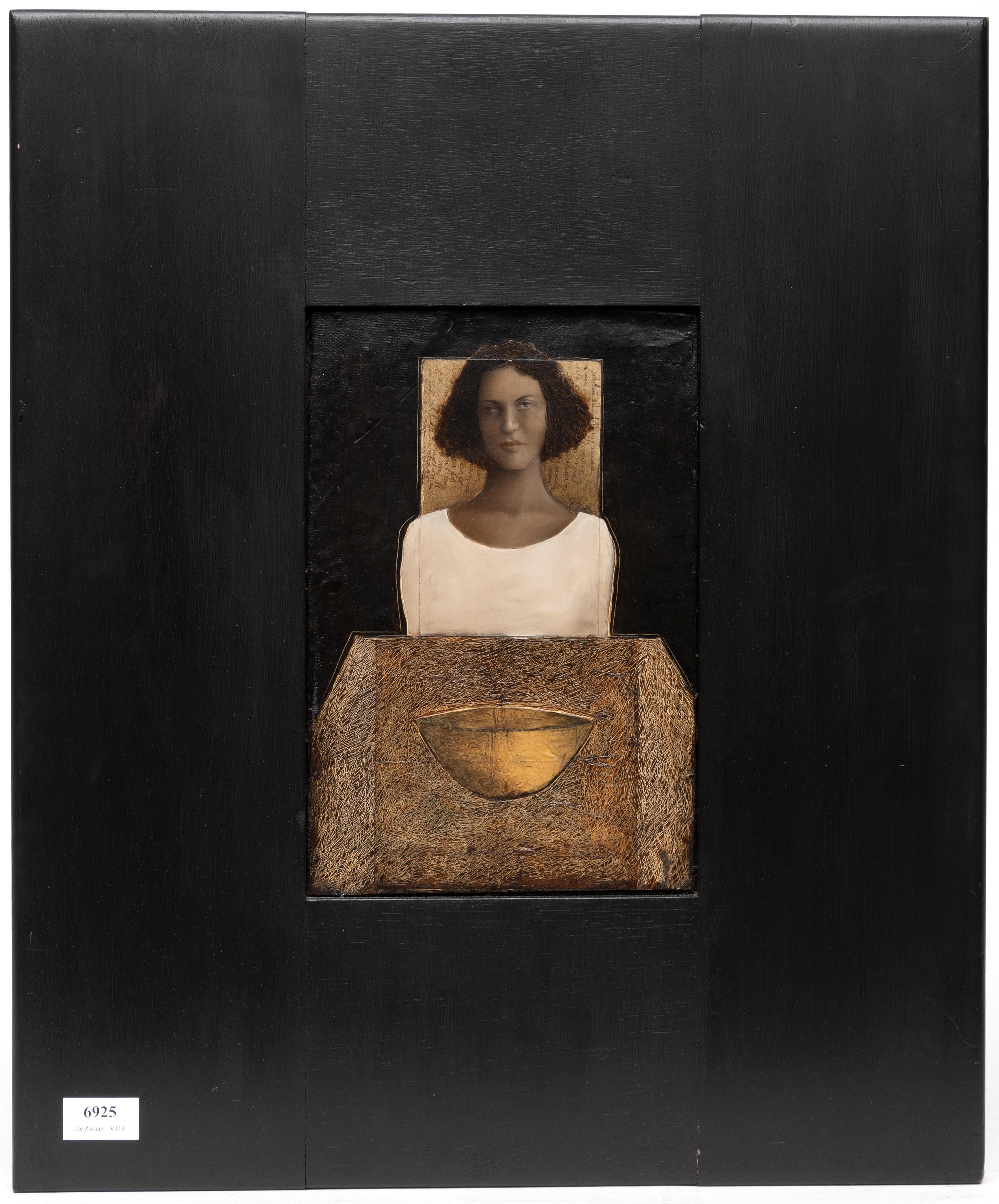 gemengde techniek op paneel, verso gesign., 2005, 30 x 20 cm. incl. lijst 60 x 50 cm.