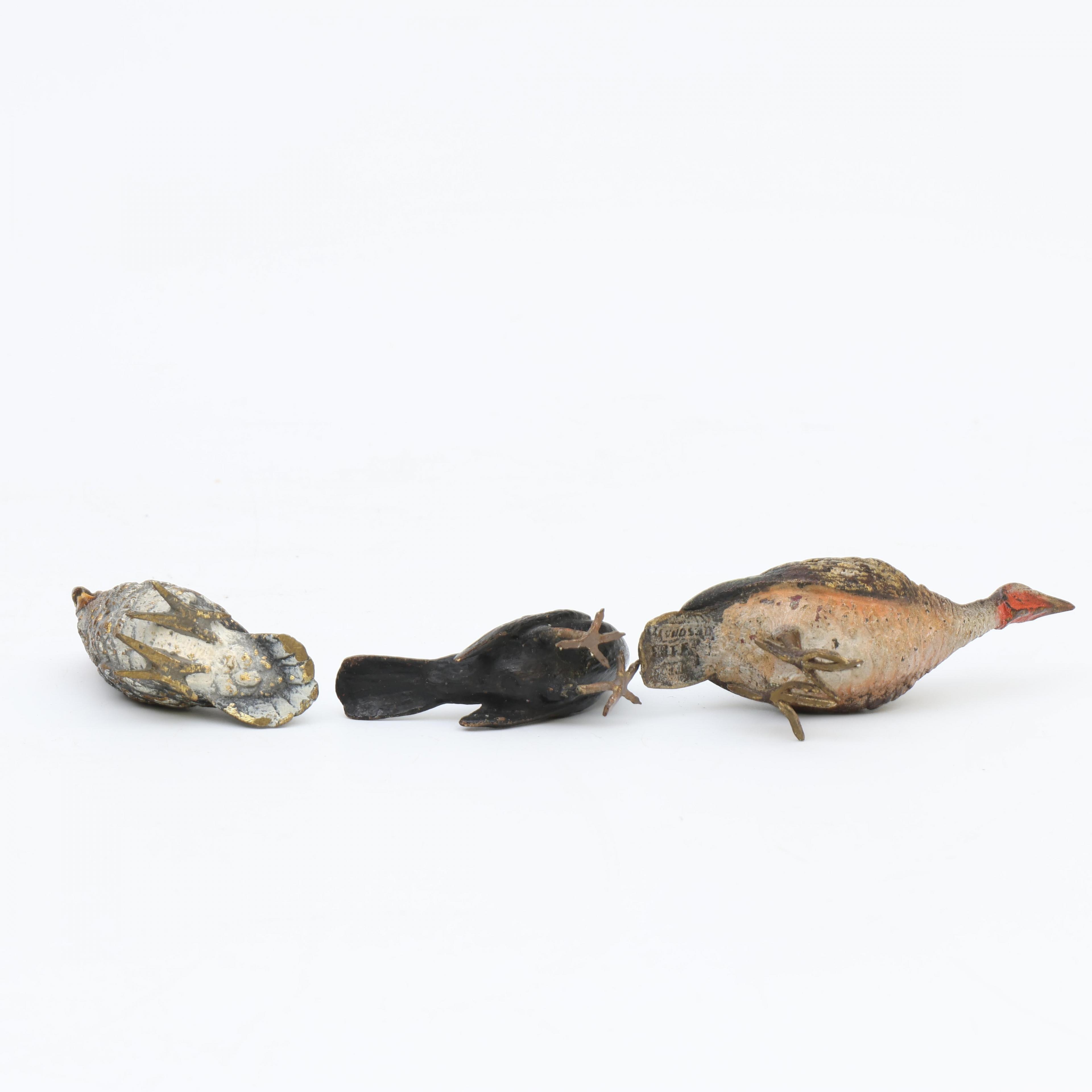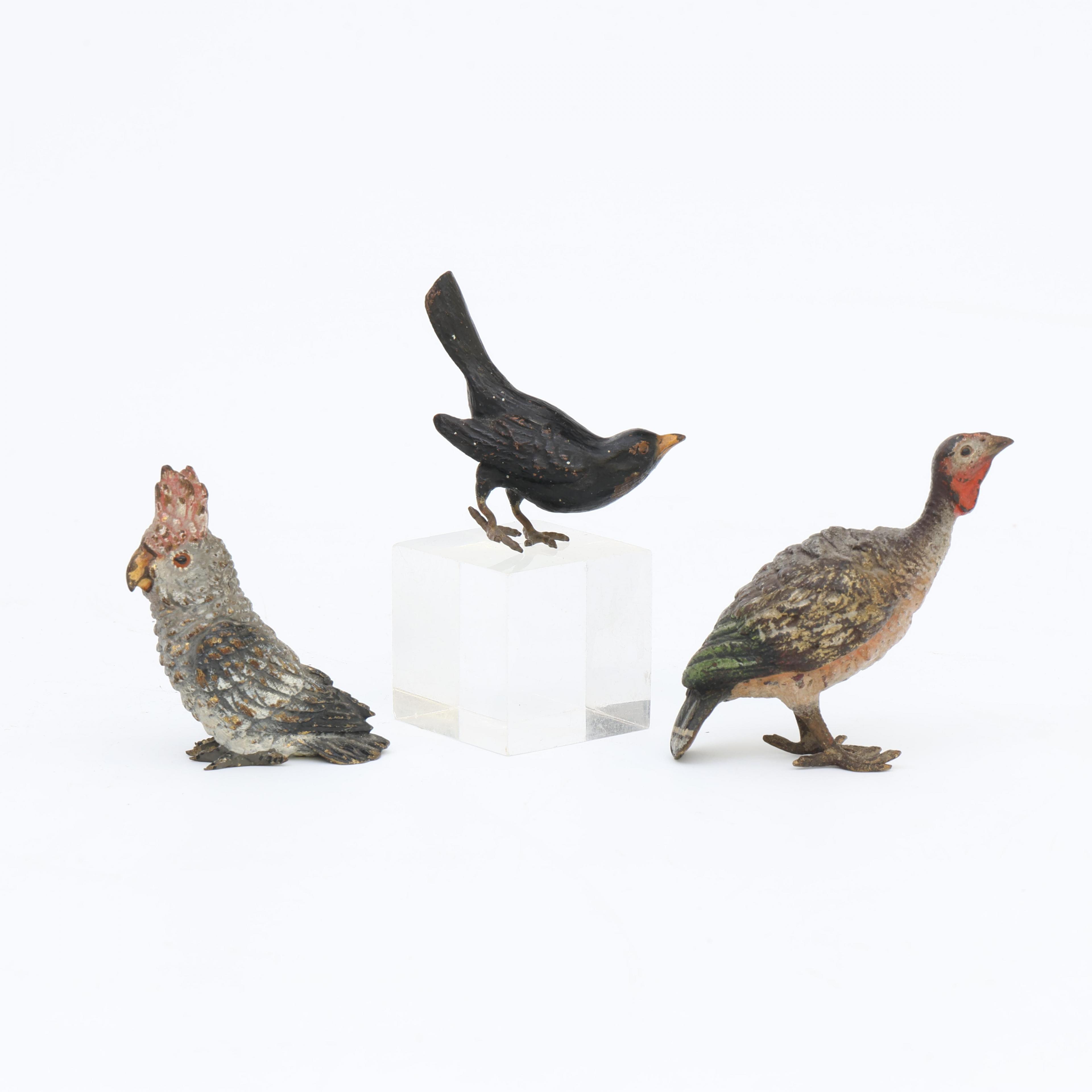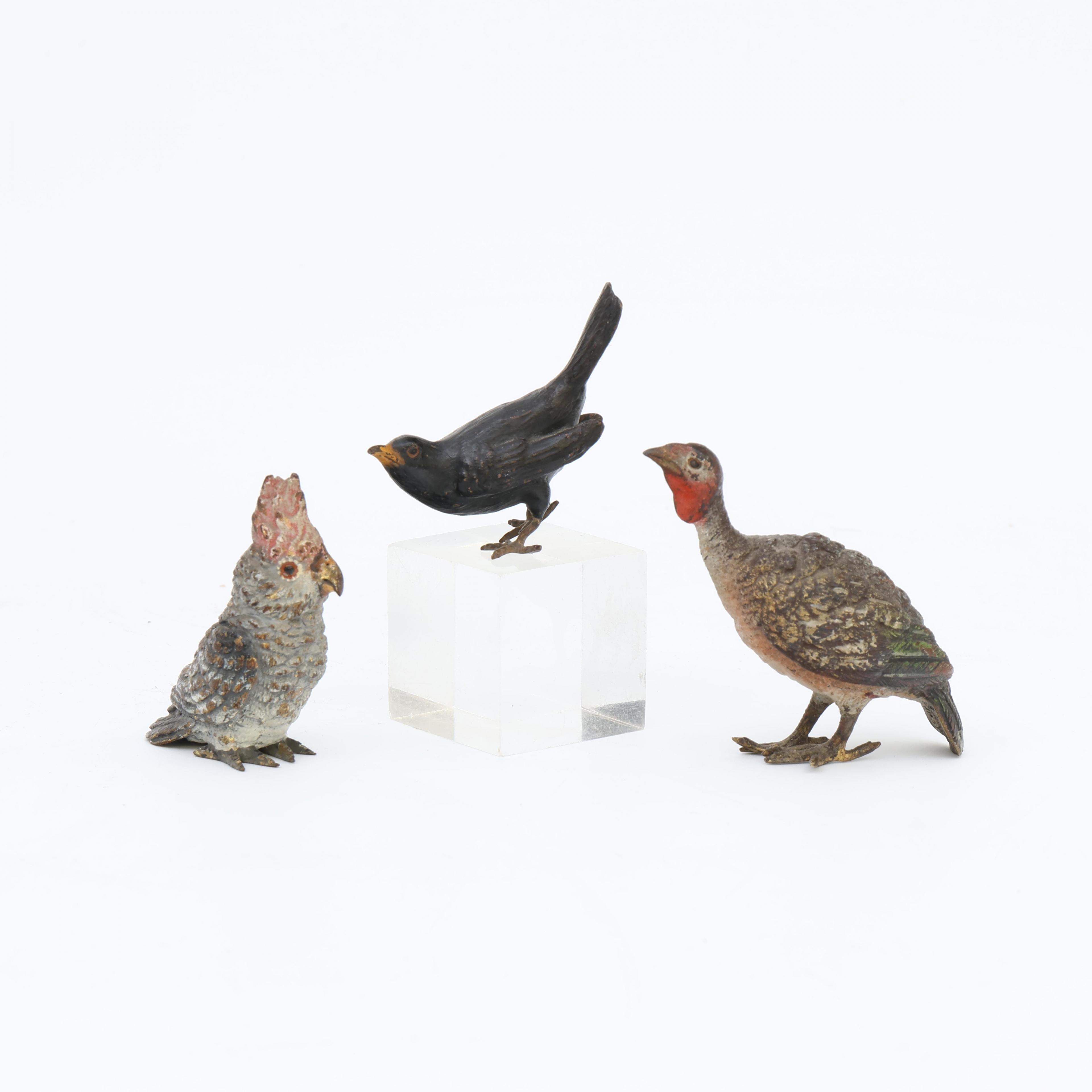 Kaketoe, merel en kalkoen. Koud beschilderd.
