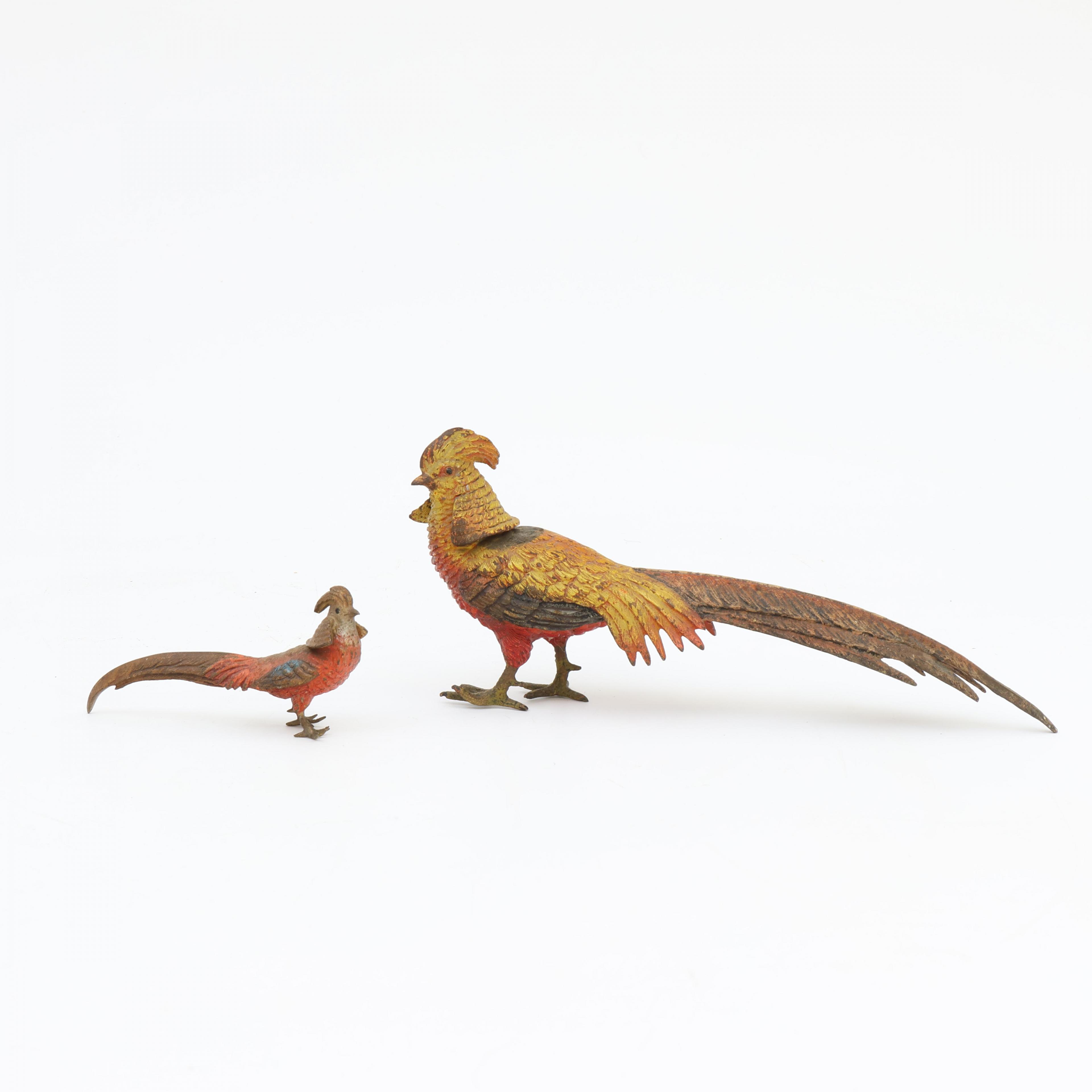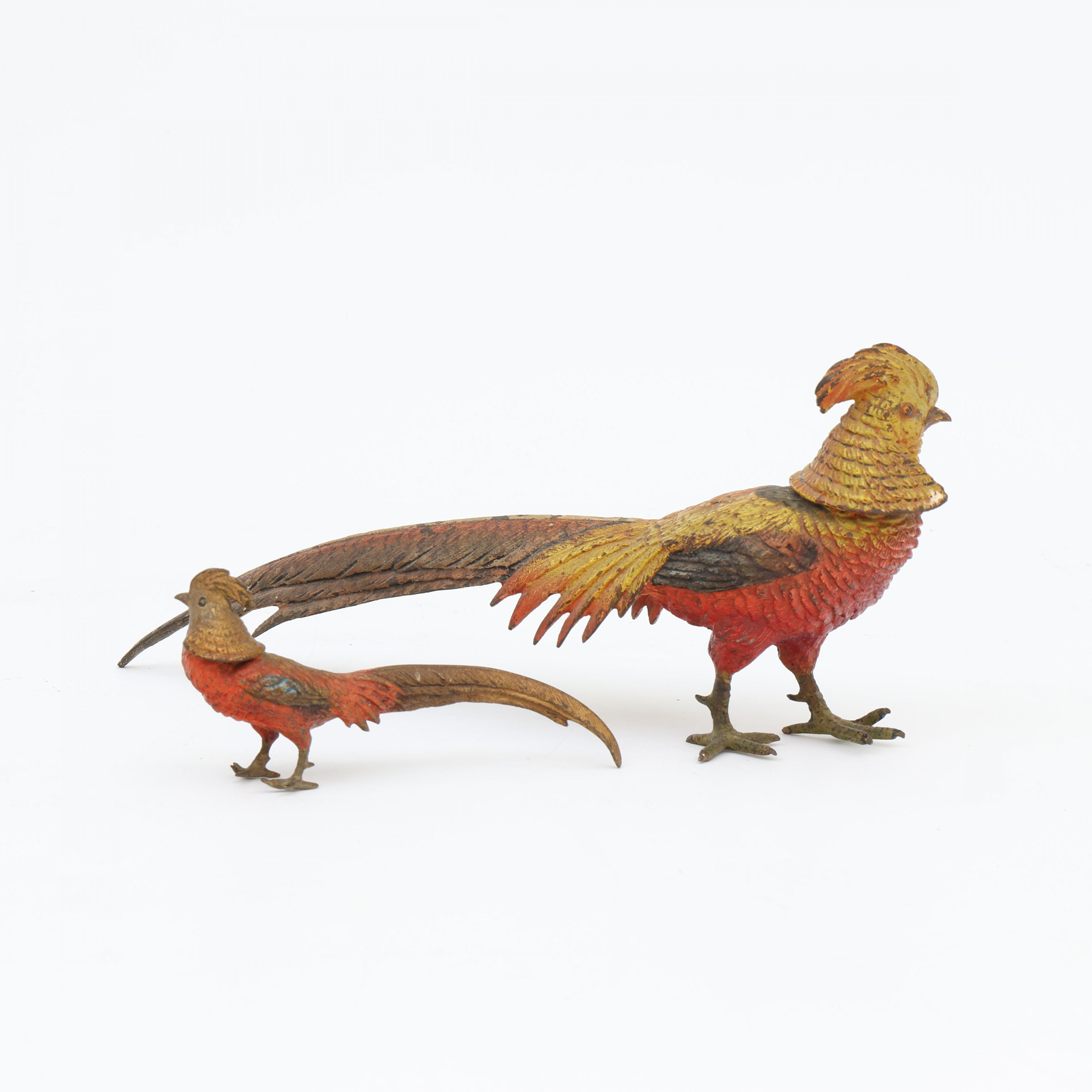 Twee Weense bronzen, goudfazanten, circa 1900;