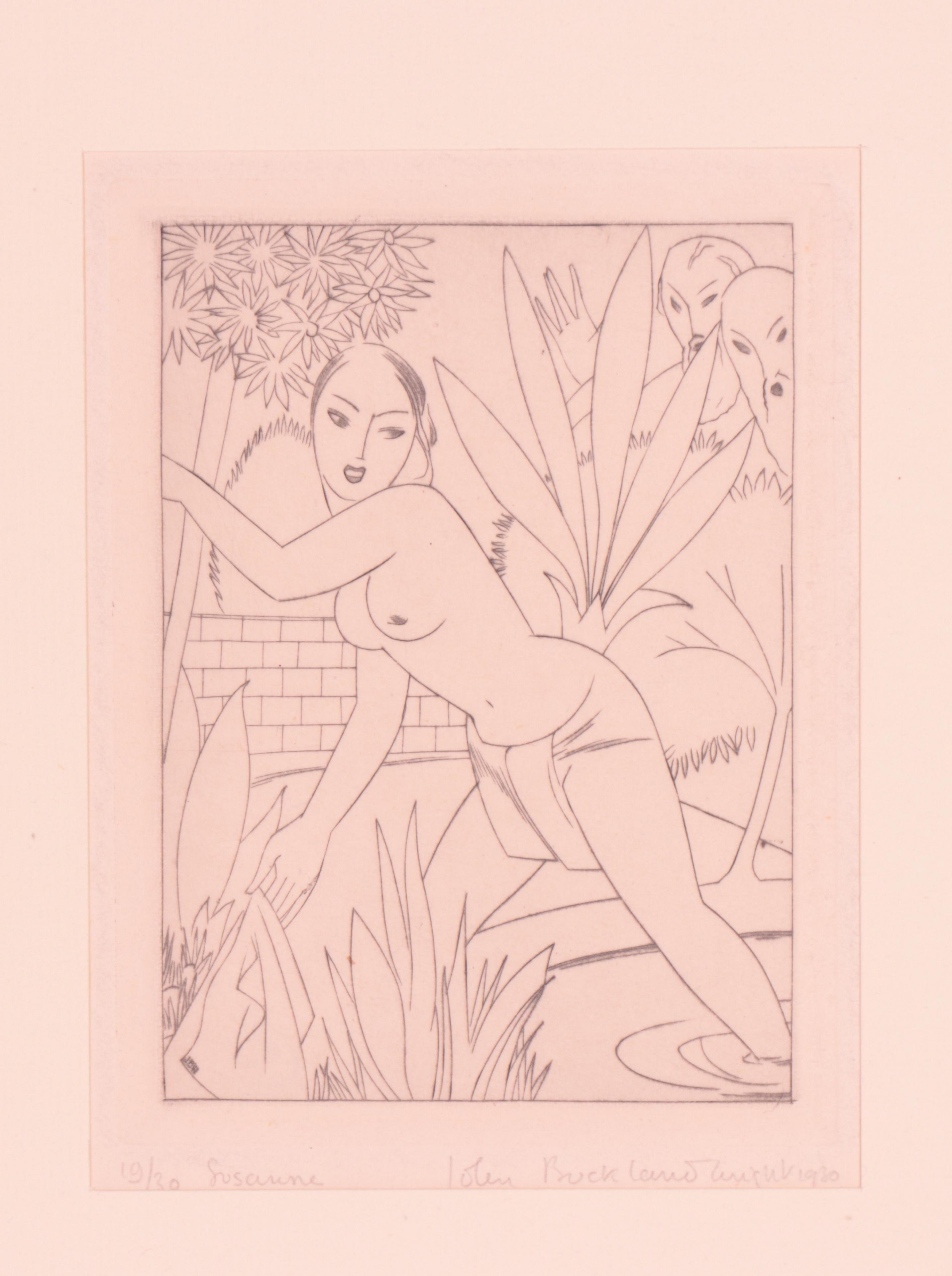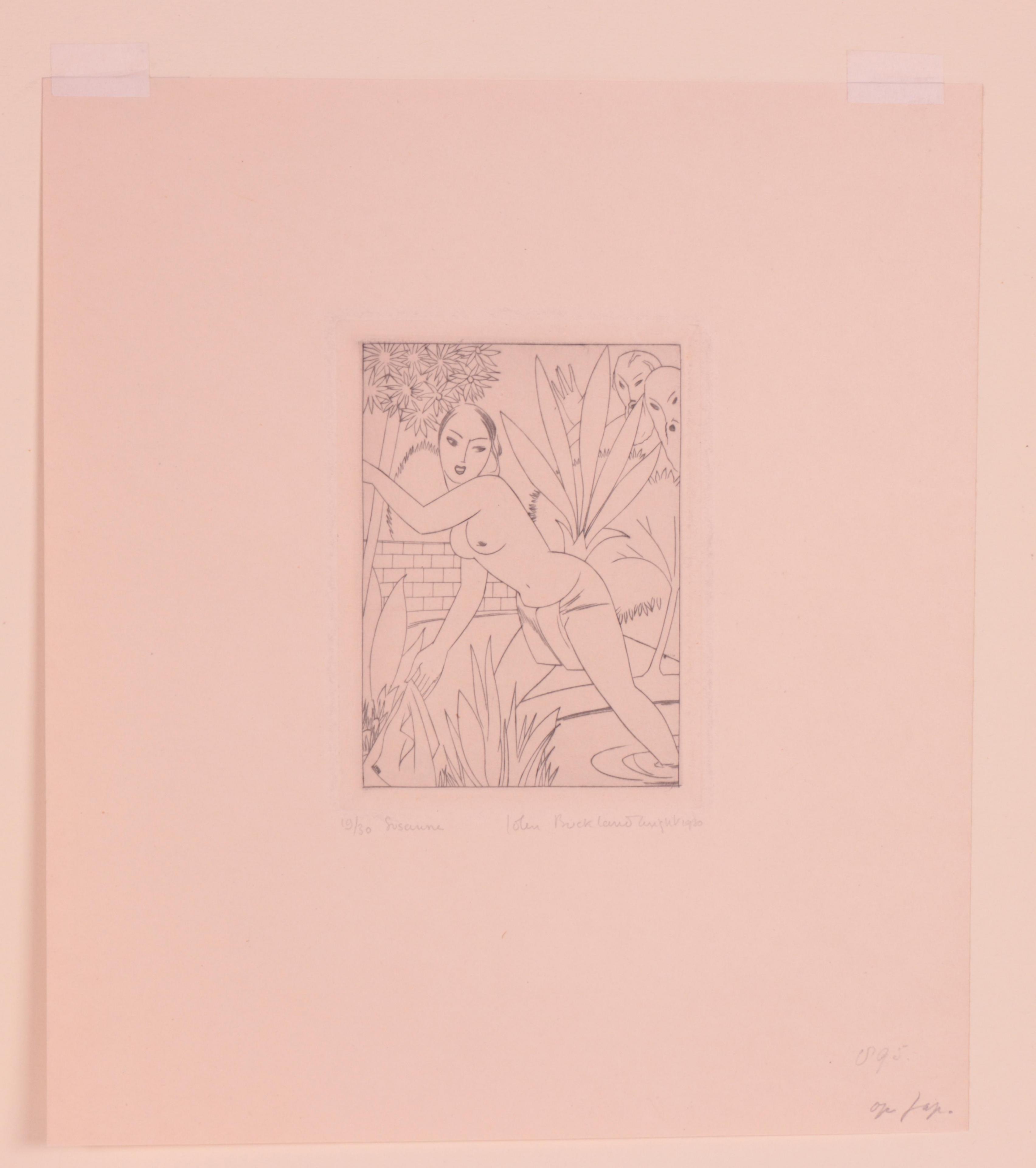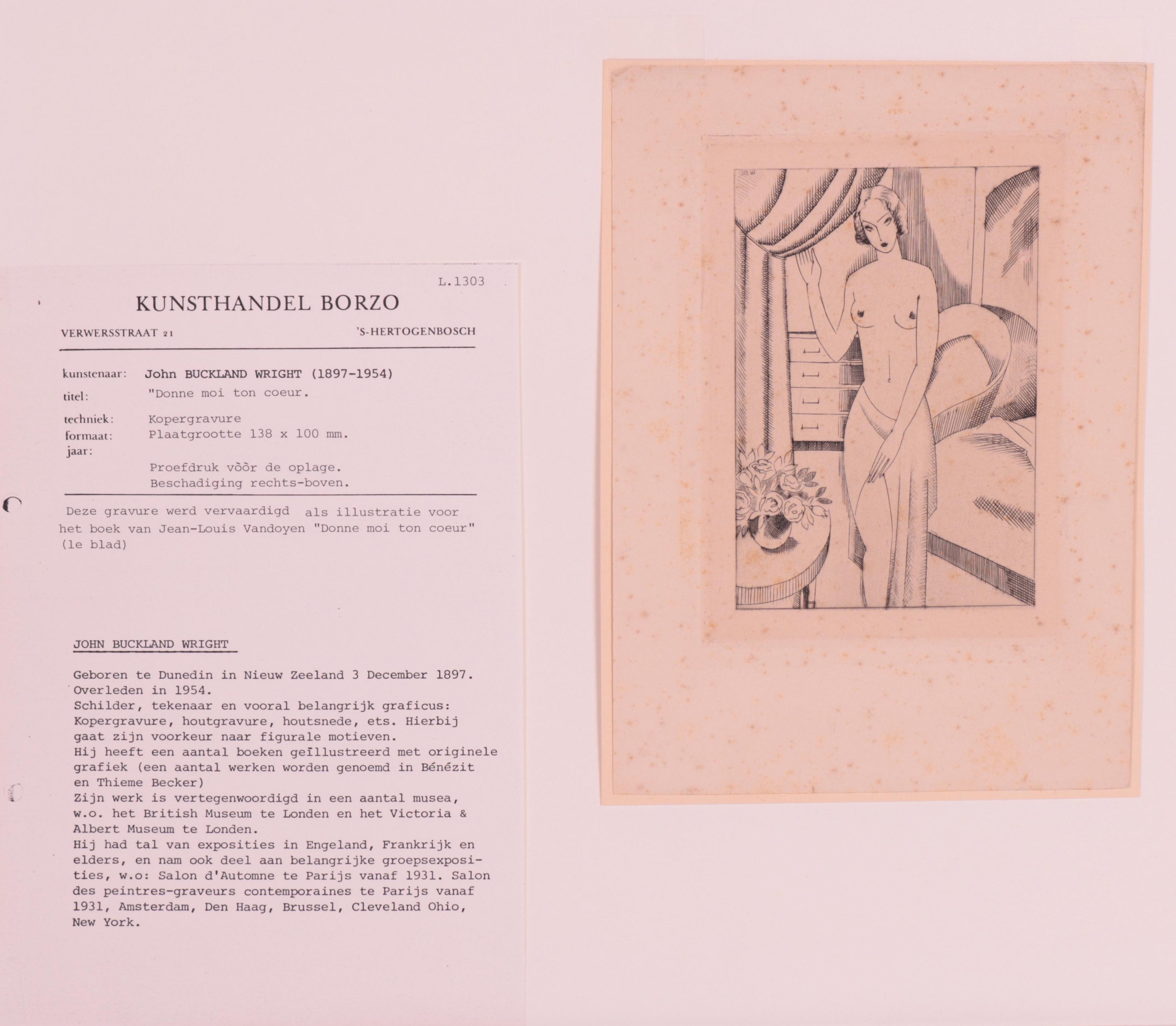 ets, gesign., 19/30, beeld 12 x 9 cm. en ets ongesign., 14 x 9 cm. blad 20 x 15 cm.