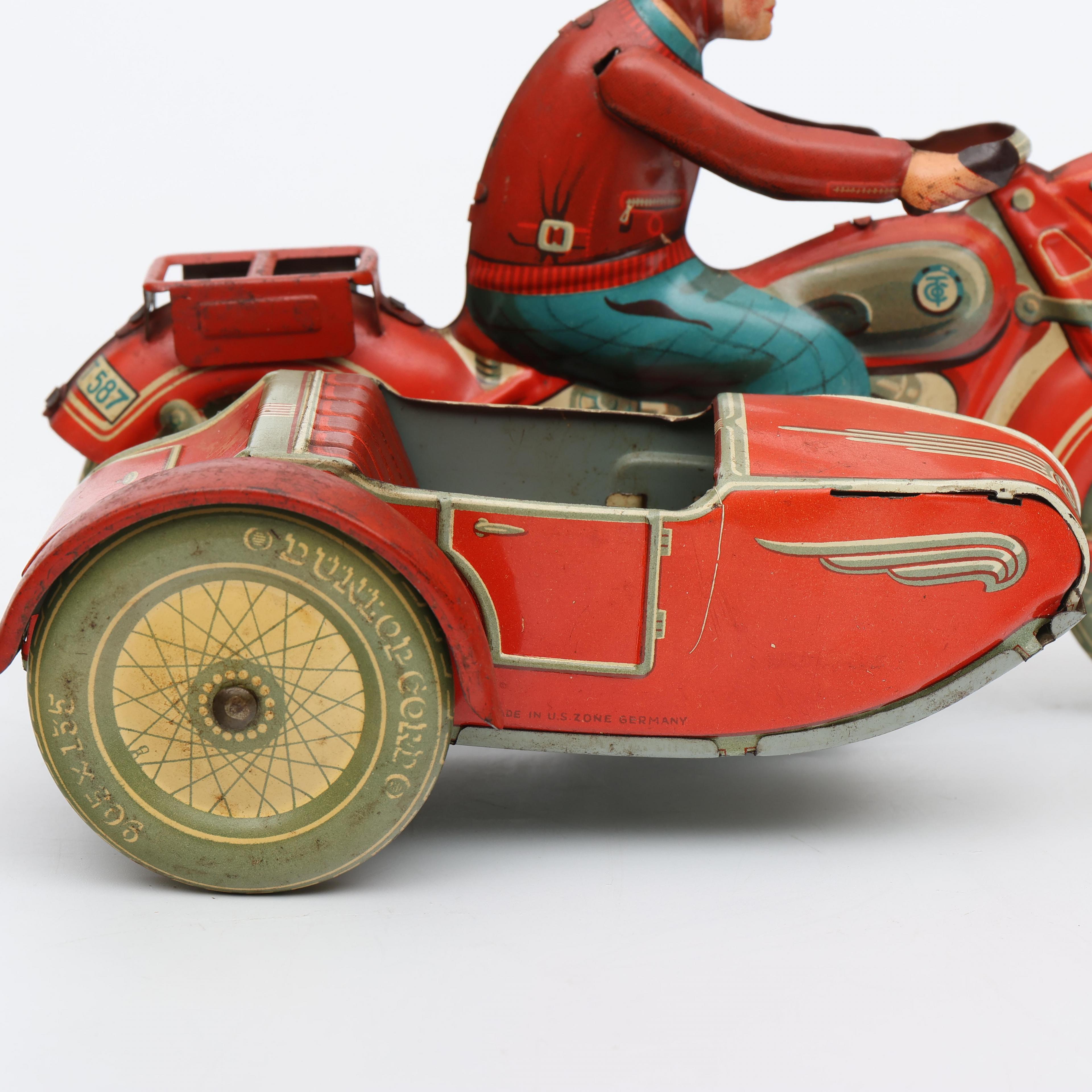 Tippco, blikken gelithografeerde motorfiets met zijspan;
