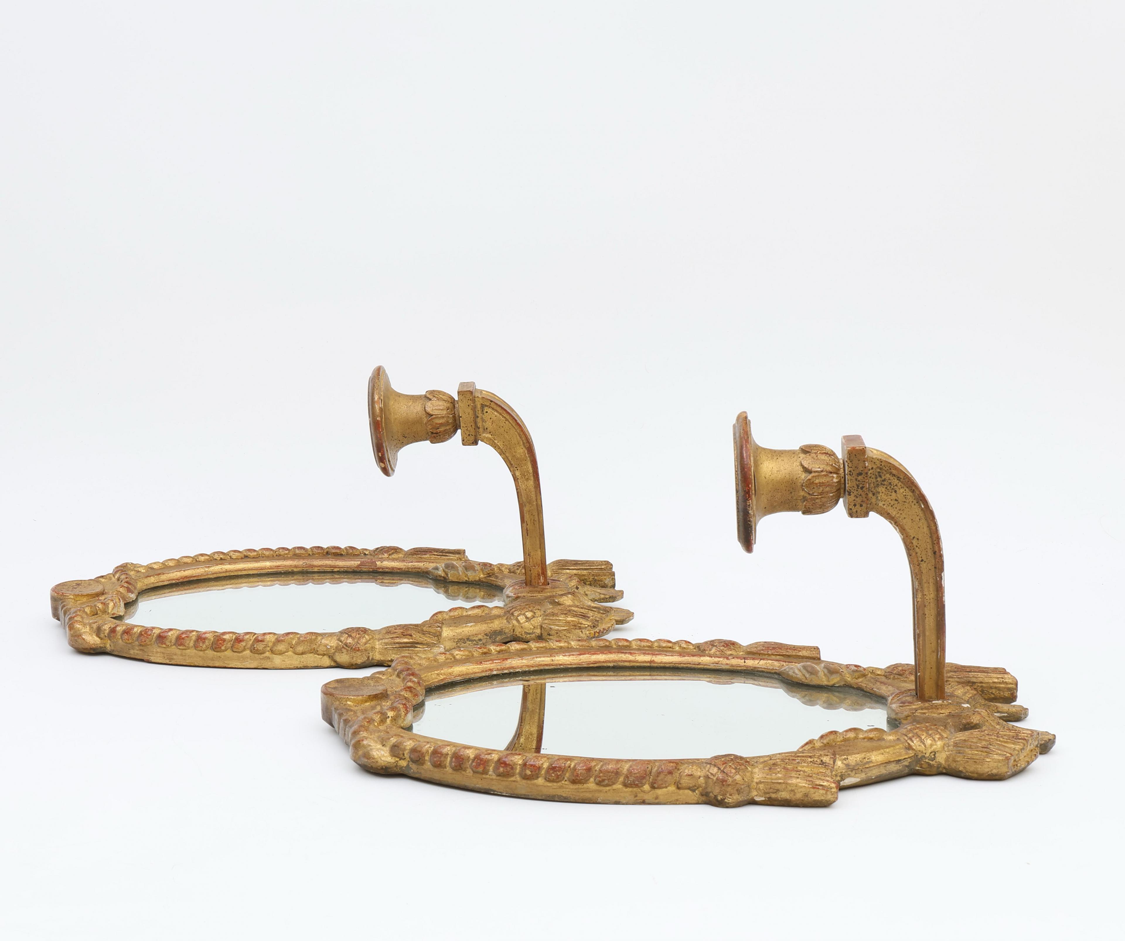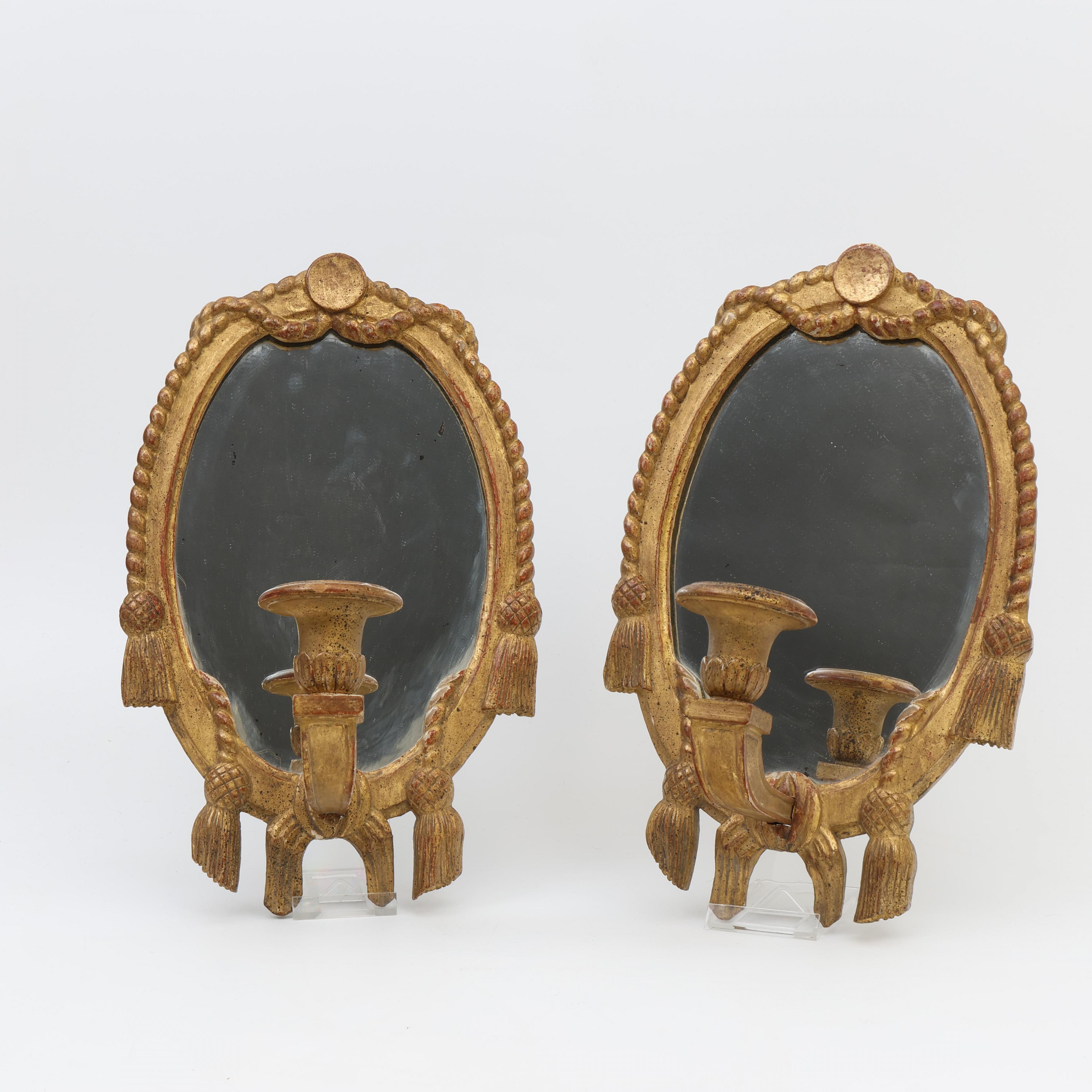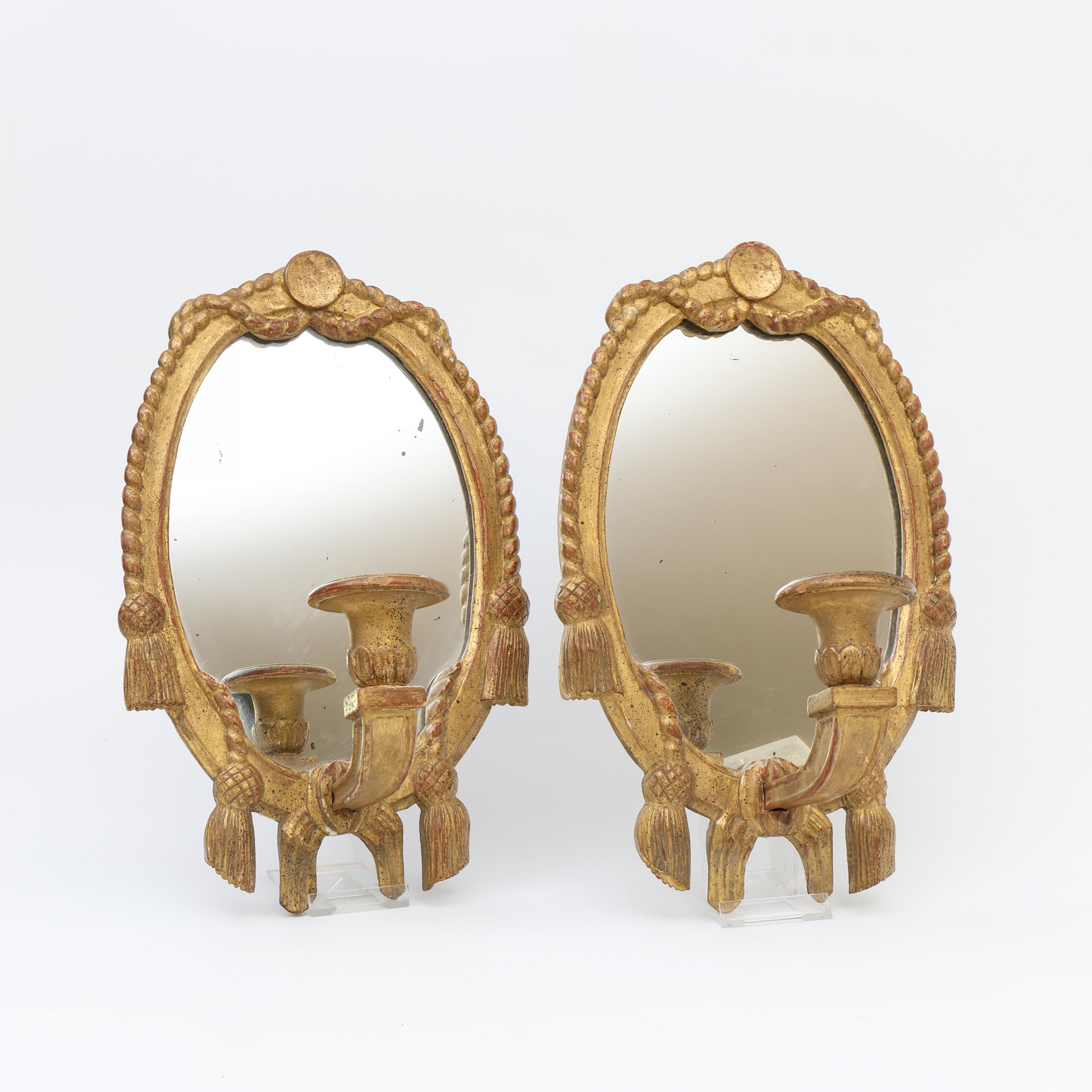 Frankrijk, paar verguld lindehouten girandoles met spiegel, Louis XVI stijl, circa 1900;