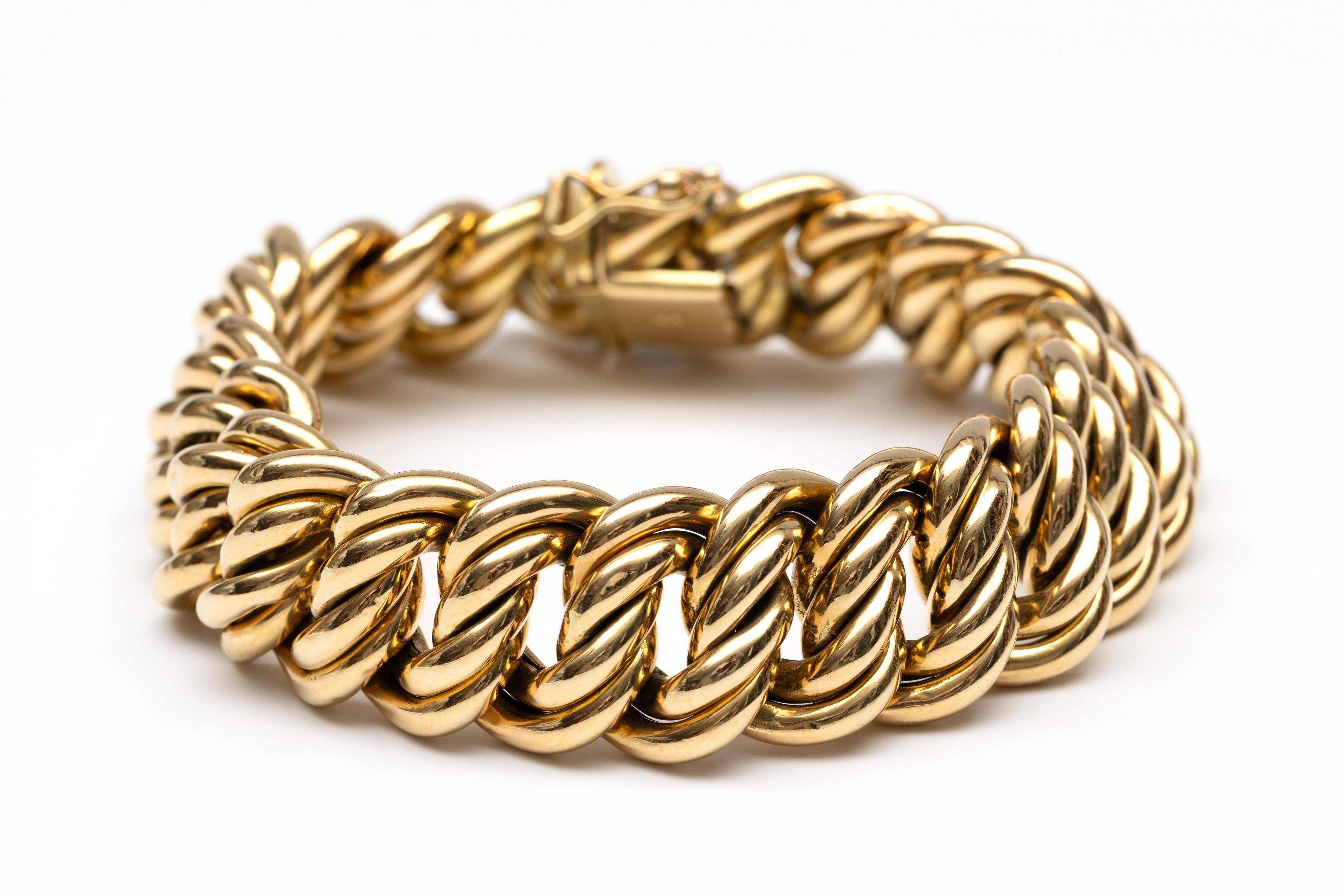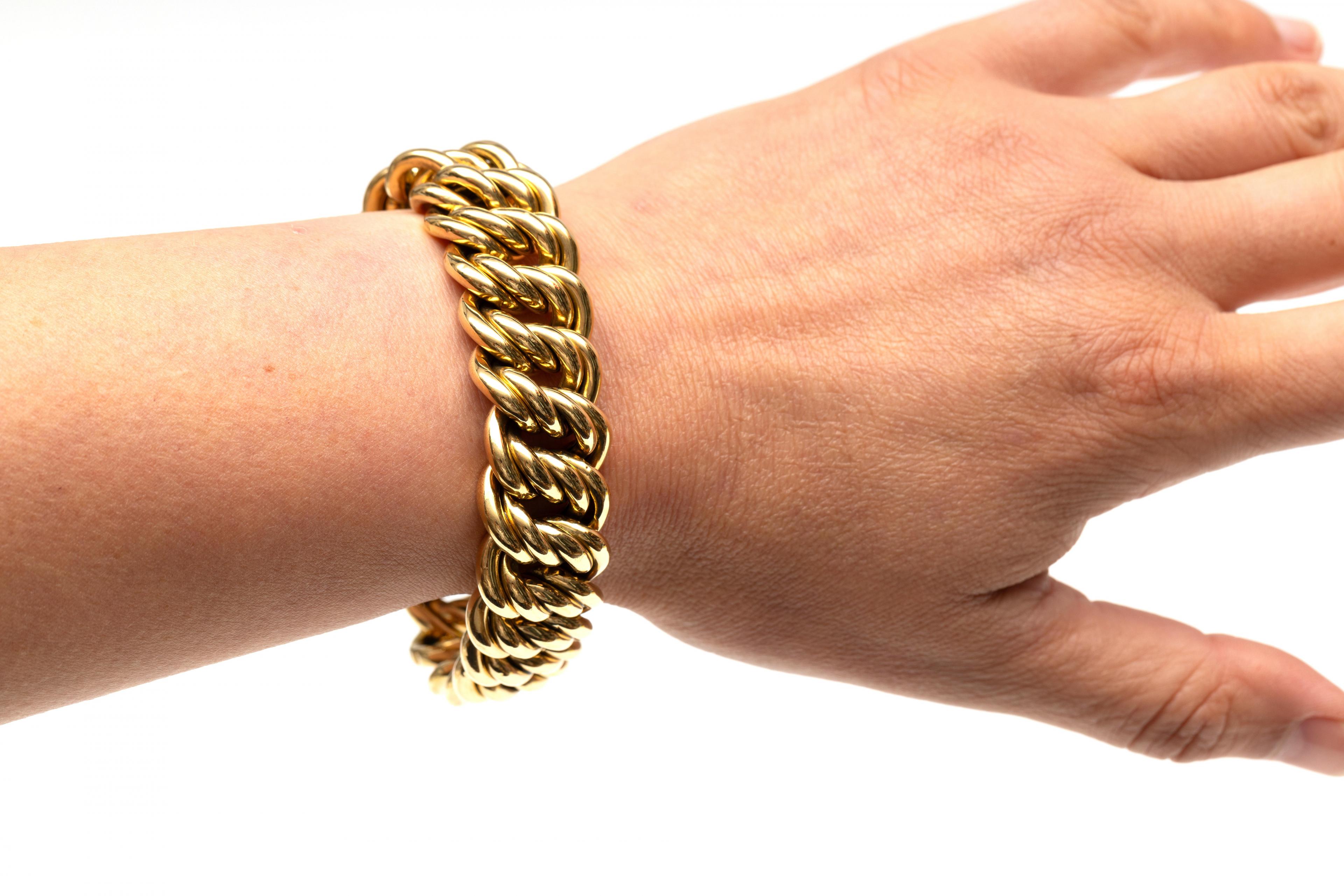18 k. Gold bracelet, made of a double curb link on a box clasp