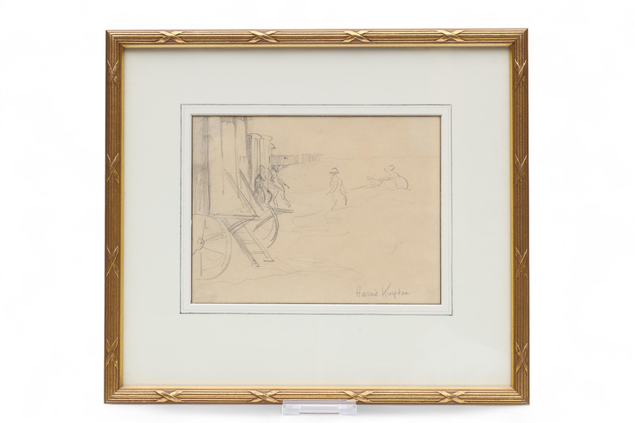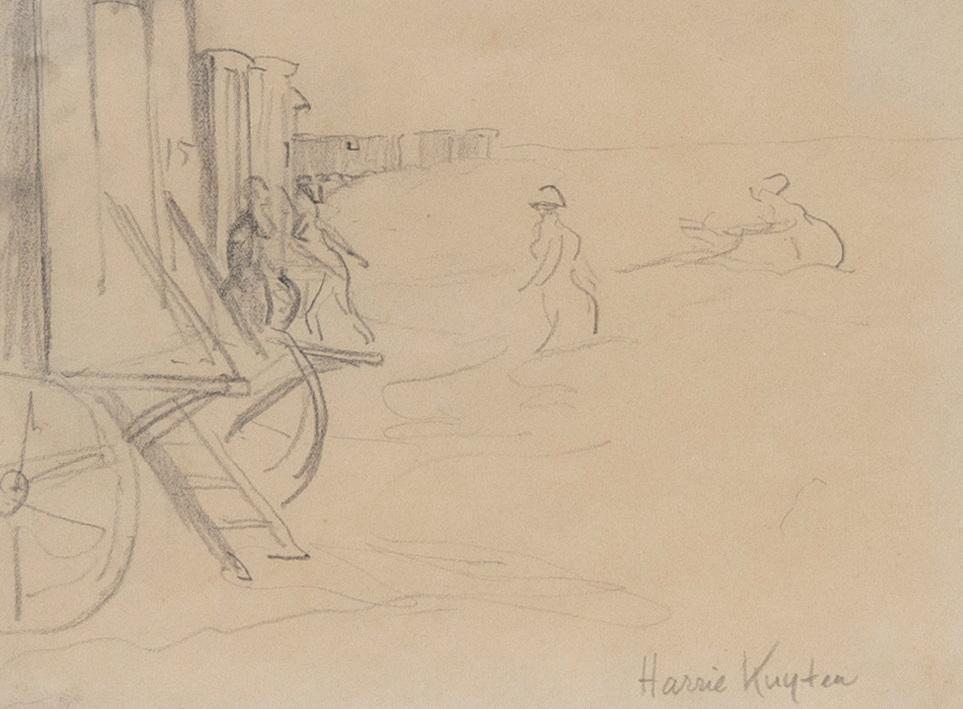 Drie tekeningen met voorstellingen van het strand waaronder bij Wijk aan Zee