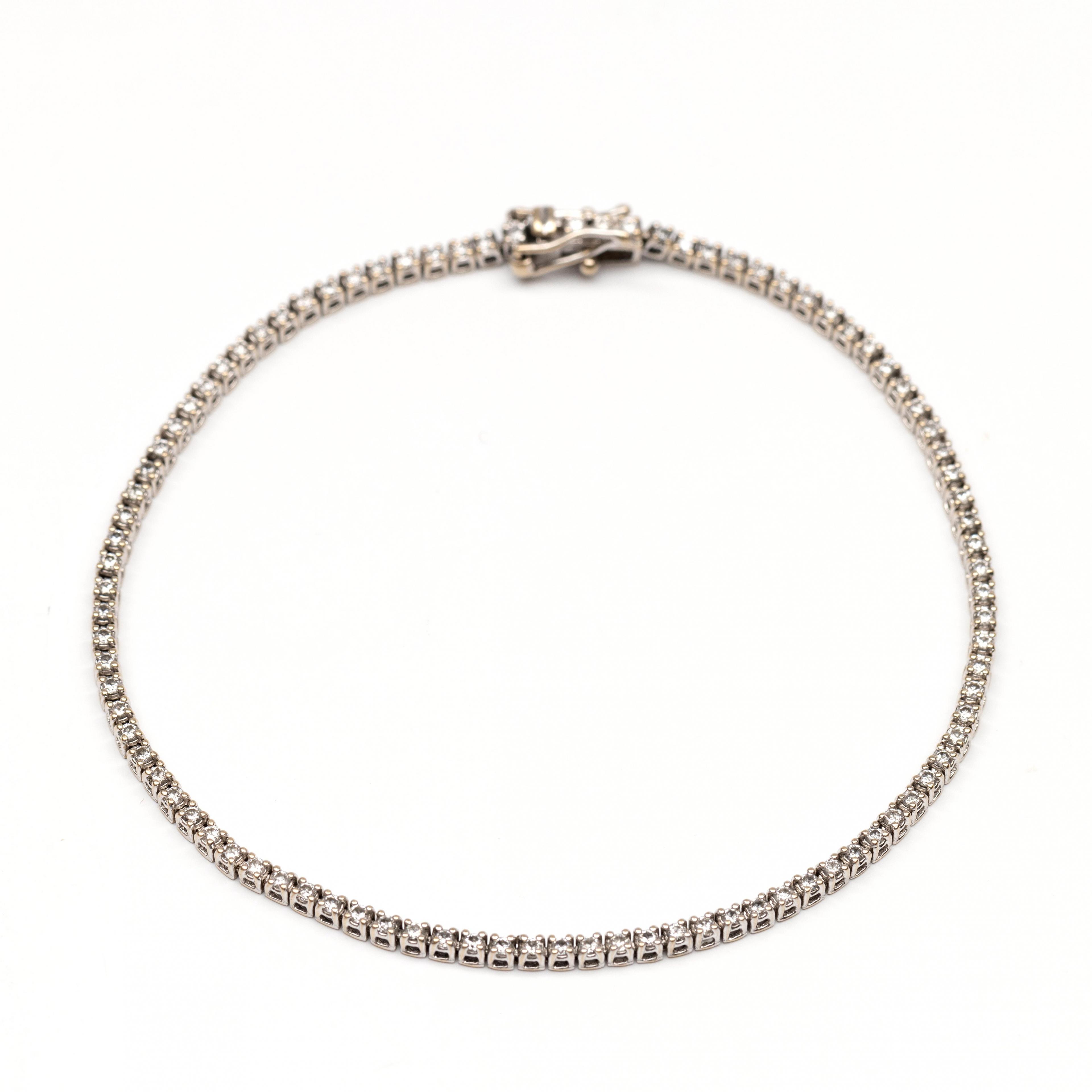 Gelber, Frankfurt am Main, white gold tennis bracelet. Set with brilliant-cut diamonds with a total weight of approximately 1.00 ct.