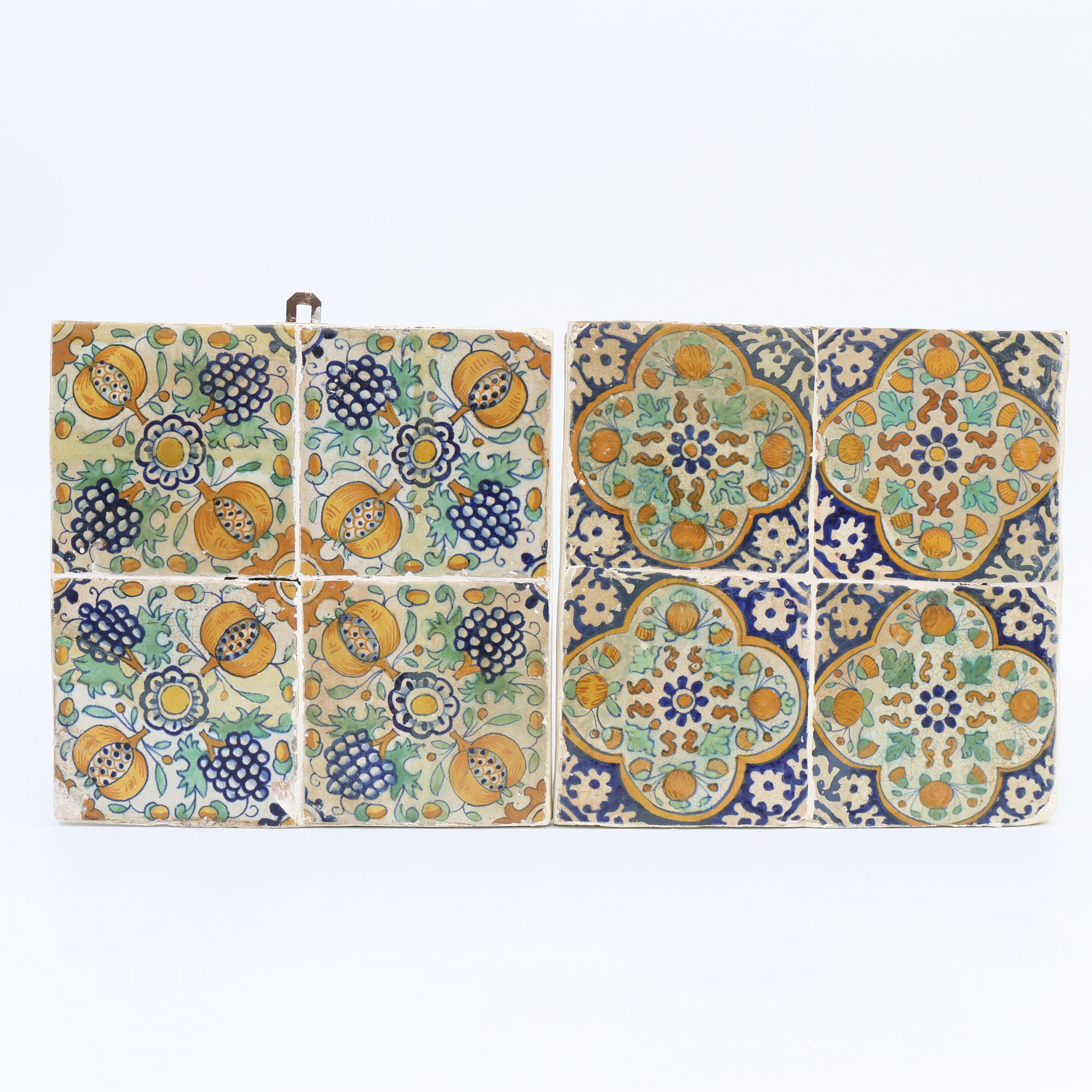 Delft, twee polychroom geschilderd tegel tableaus, 17e eeuw;