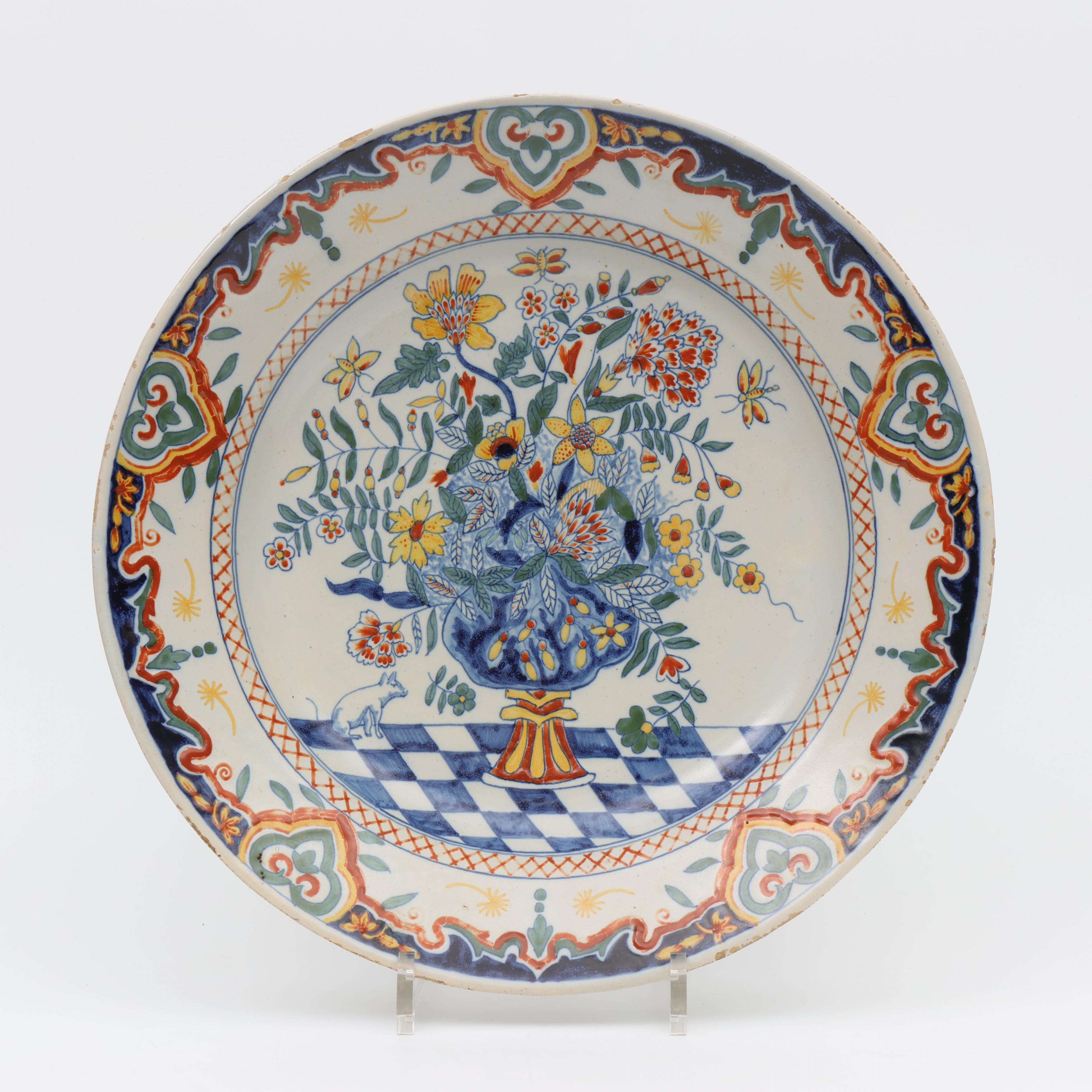 Delft, polychroom geschilderde aardewerk schotel, circa 1900;