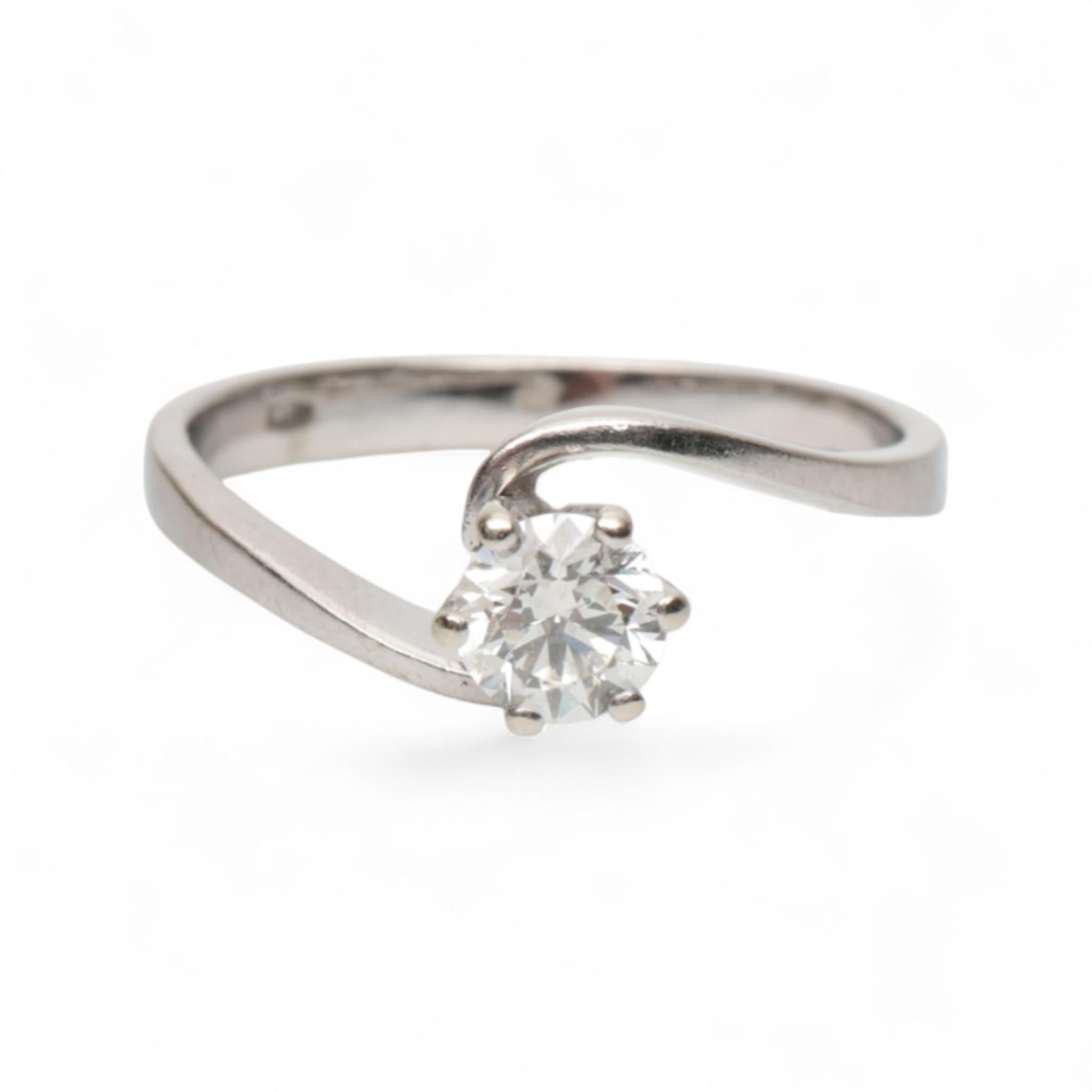 White gold tourbillon-shaped solitaire ring, set with a brilliant-cut diamond of approx. 0.40 ct.