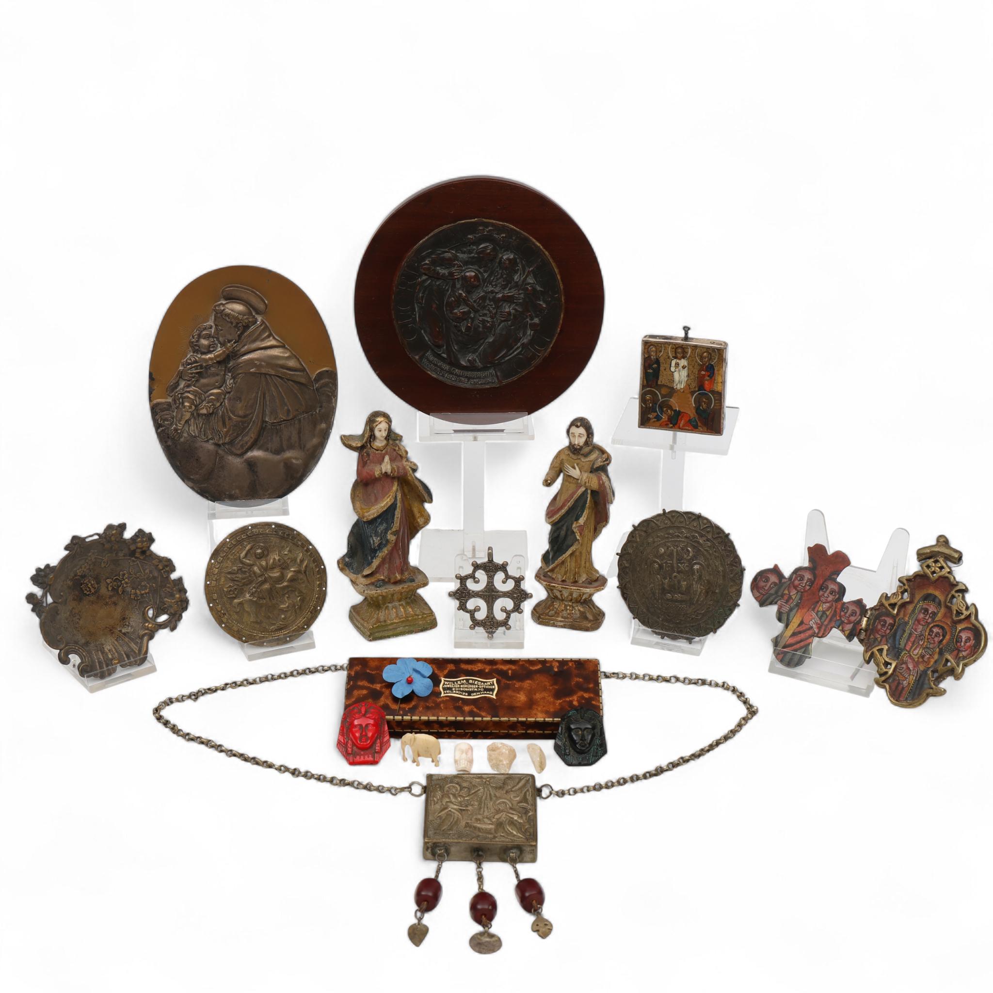 w.o. reliekhouder, reisikoon en twee gestoken sculptuurtjes.