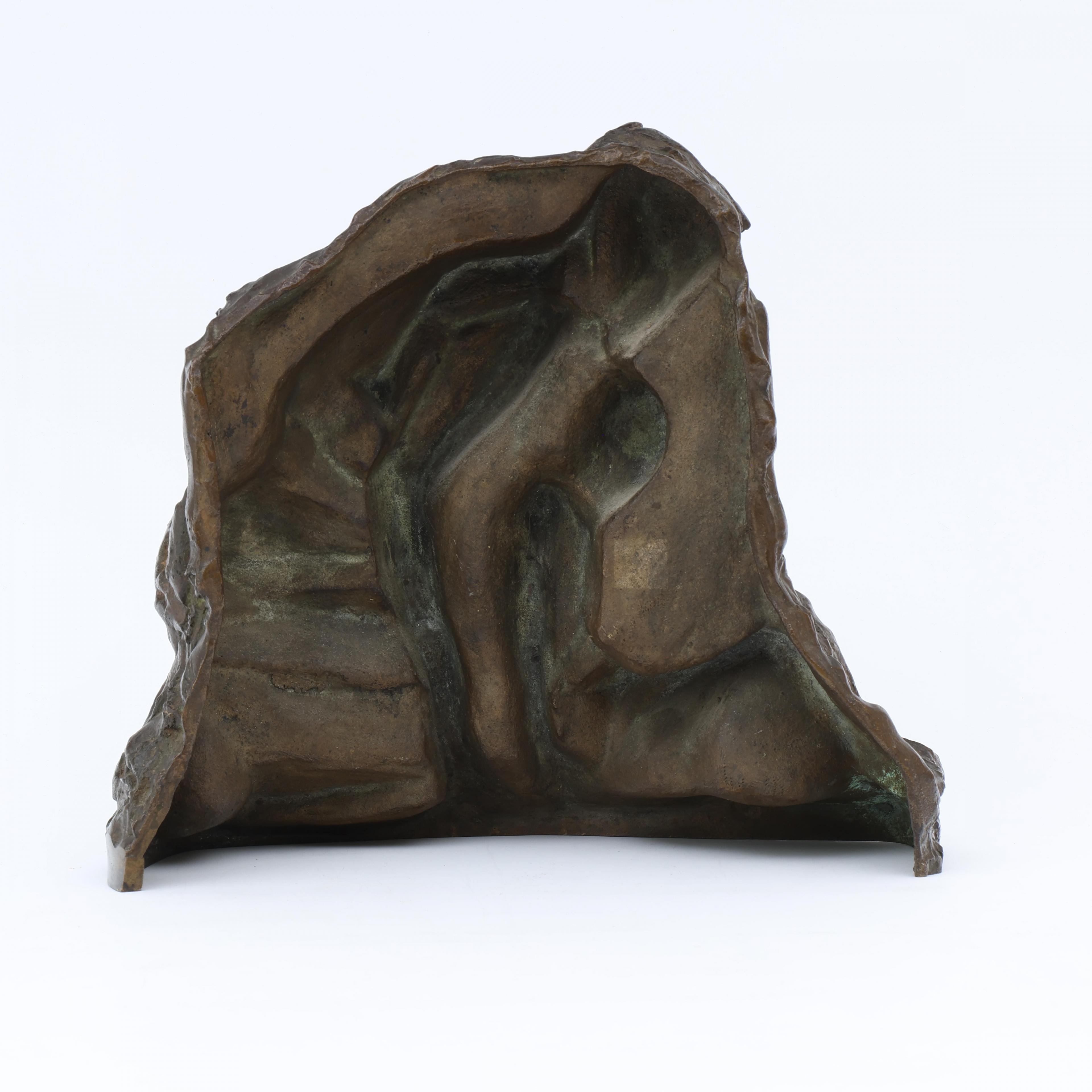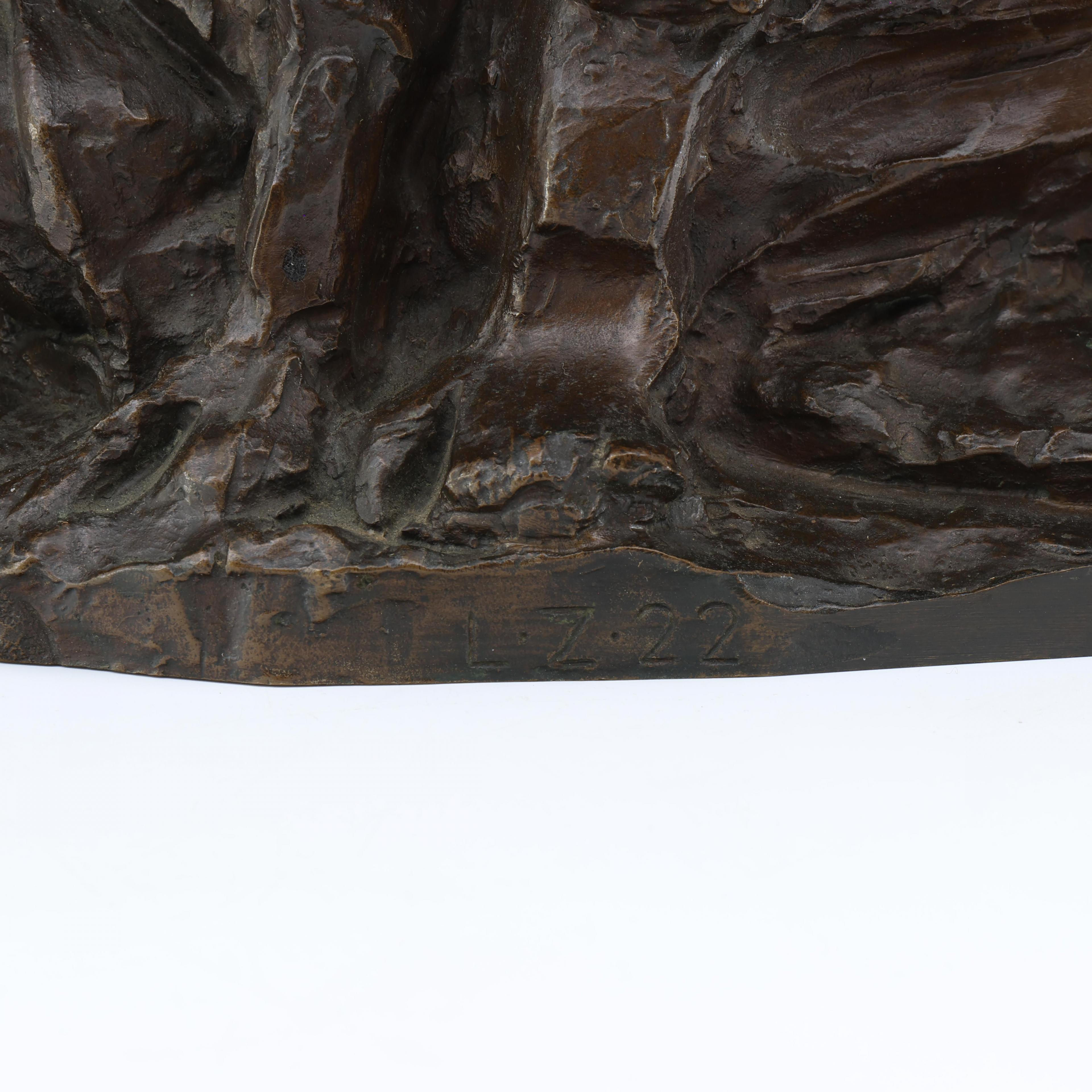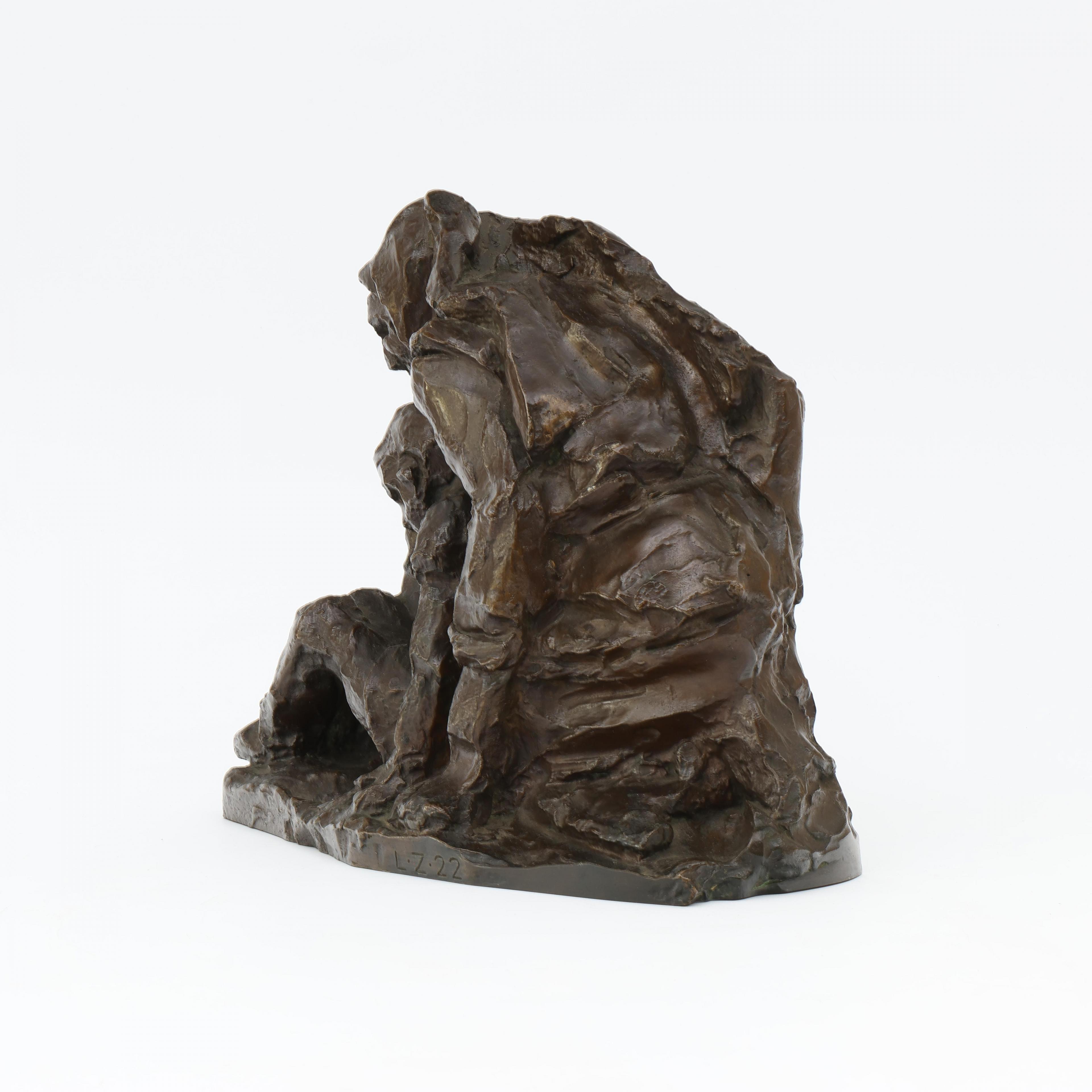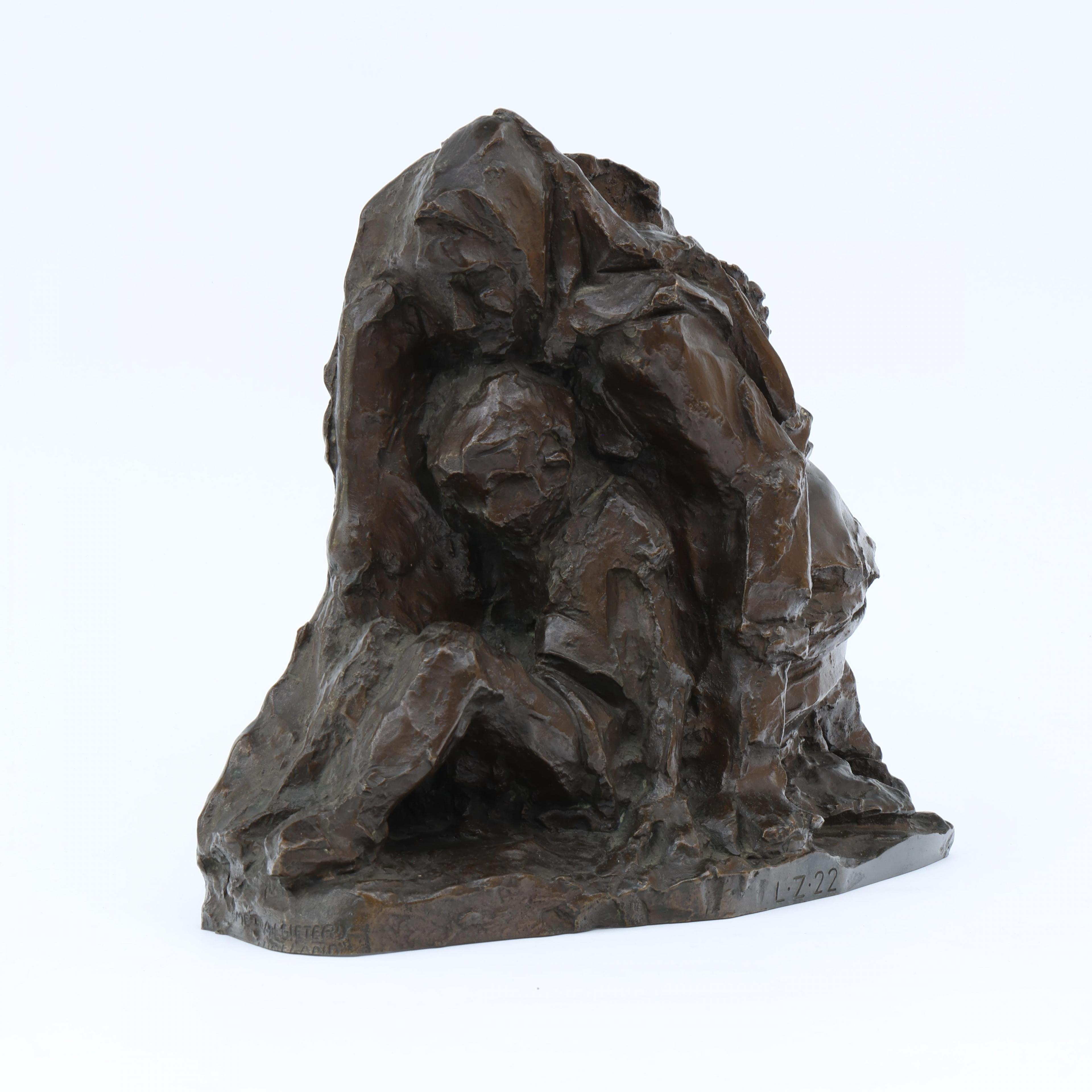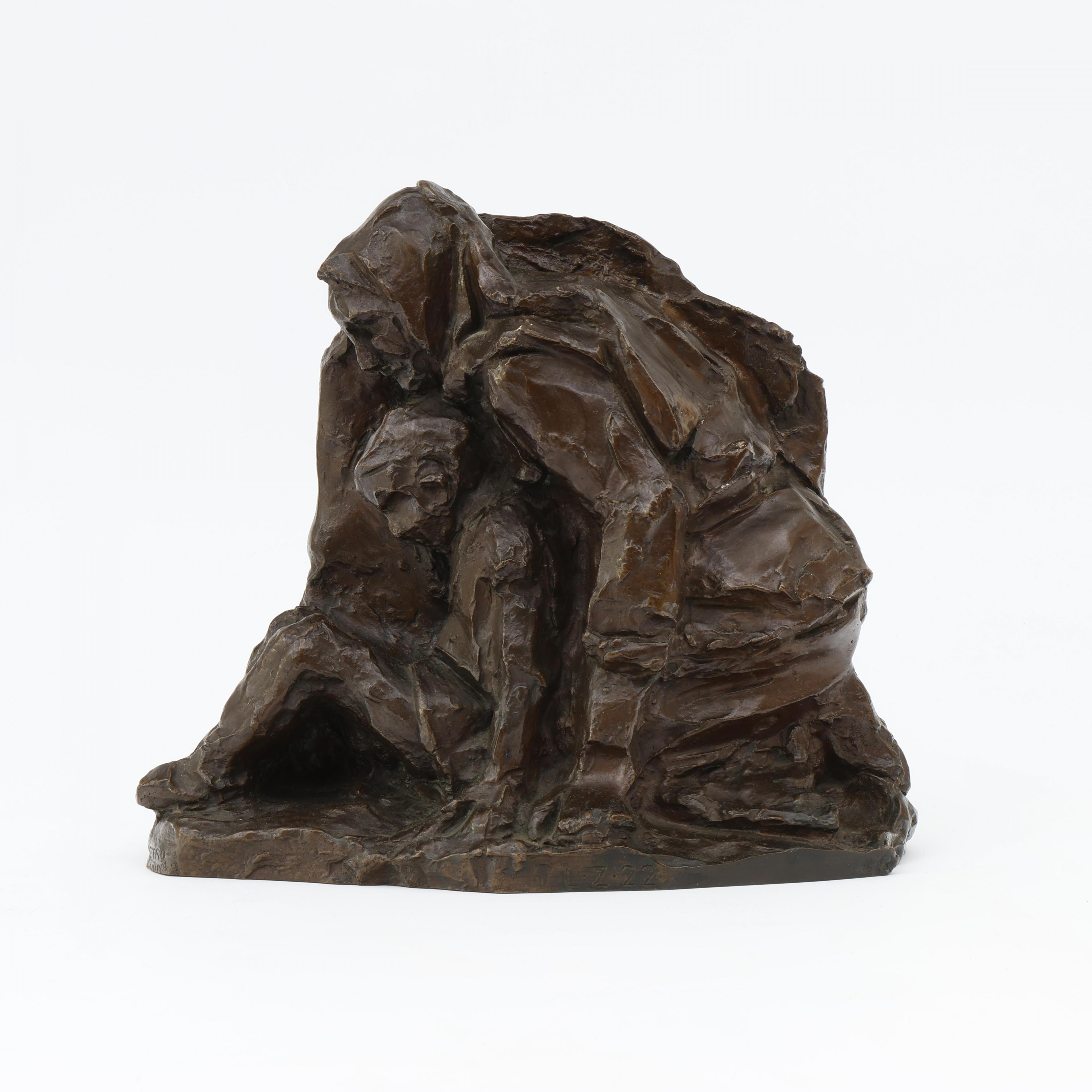 Lambertus Zijl (1866-1947), bruin gepatineerd bronzen sculptuur, 'Geknielde oude vrouw met jongen', 1922;
