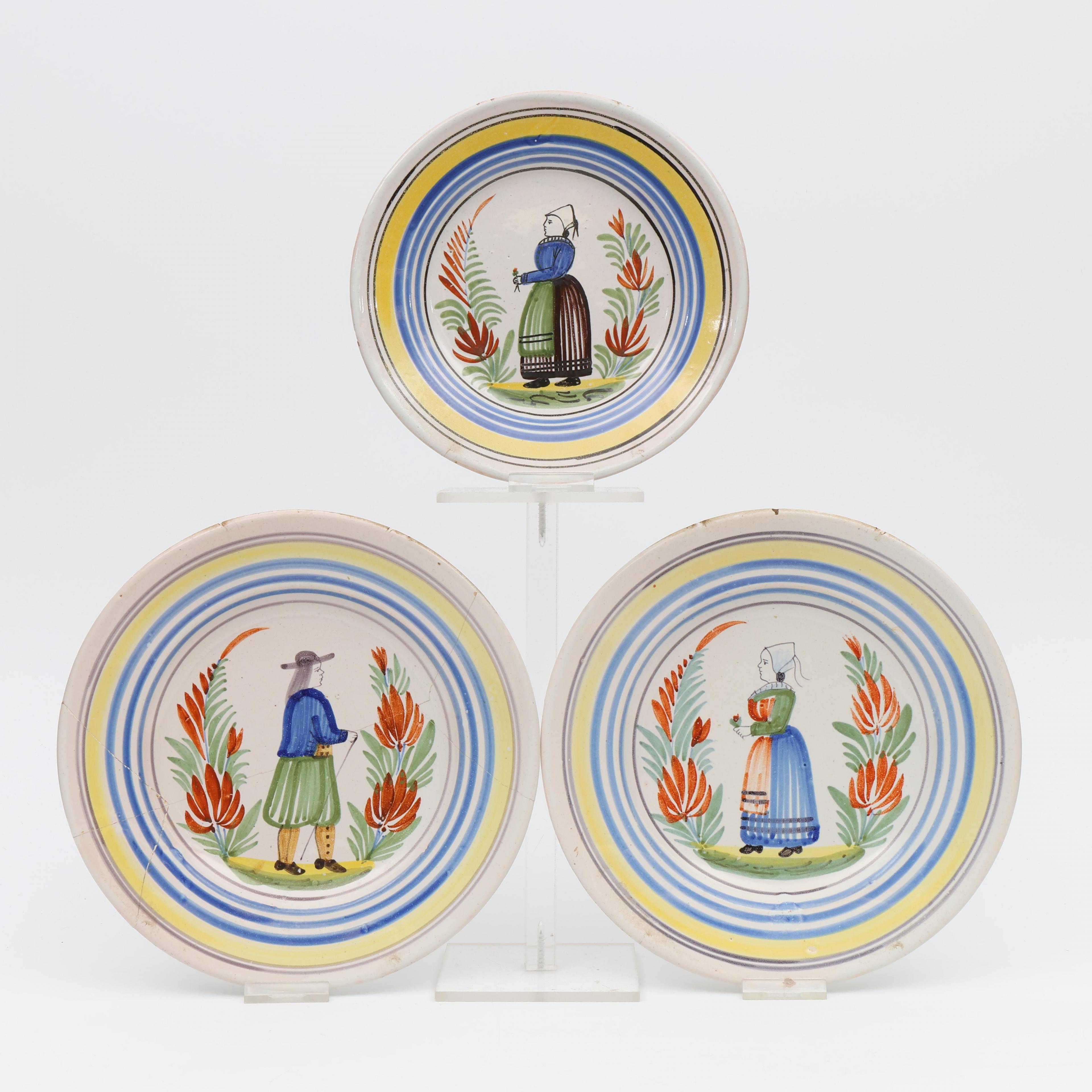 Frankrijk, drie aardewerk schotels, 18e eeuw;