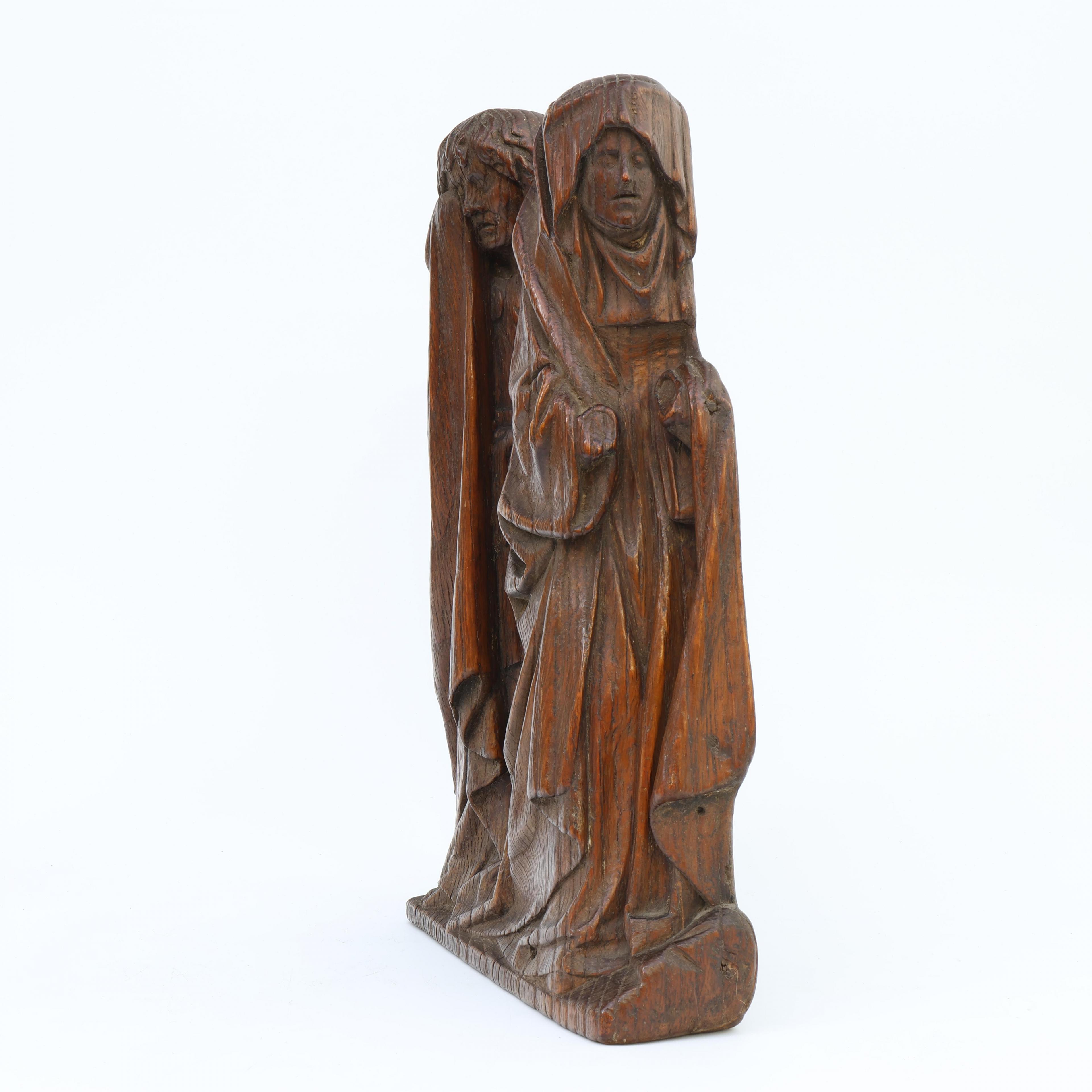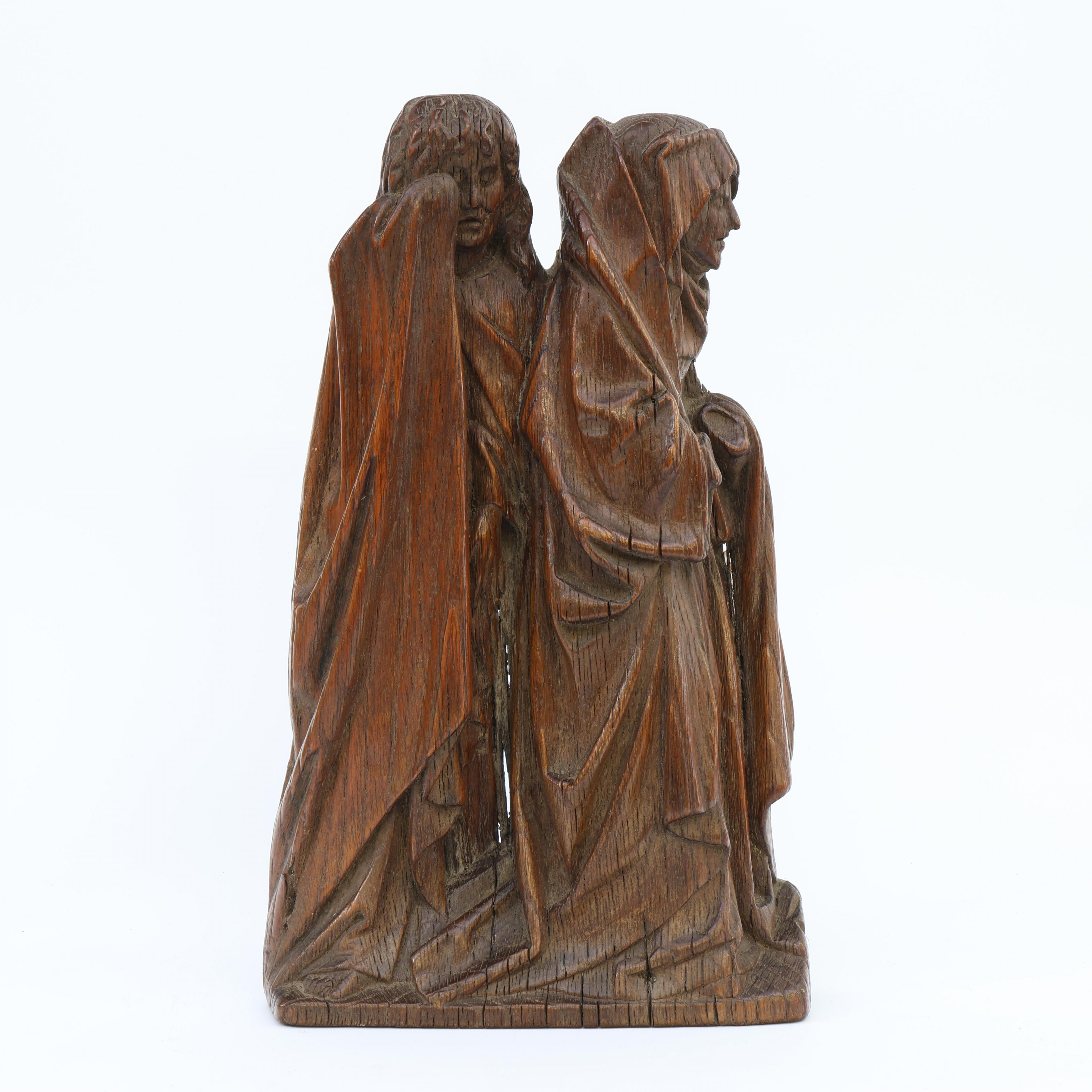 Frankrijk, eikenhouten gestoken sculptuur, twee Heiligen, 17e eeuw;
