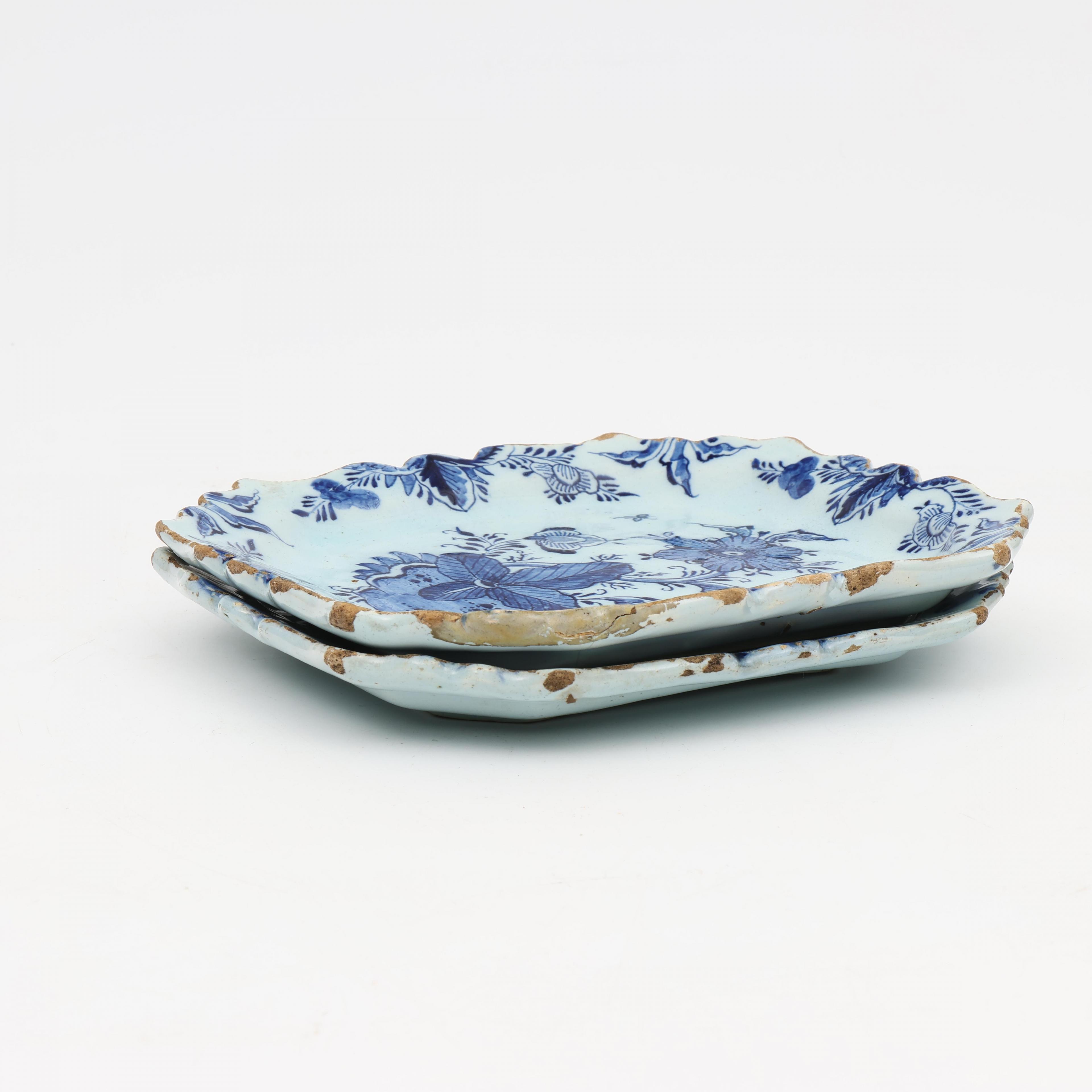 Delft, twee blauw wit aardewerk schalen, 18e eeuw;