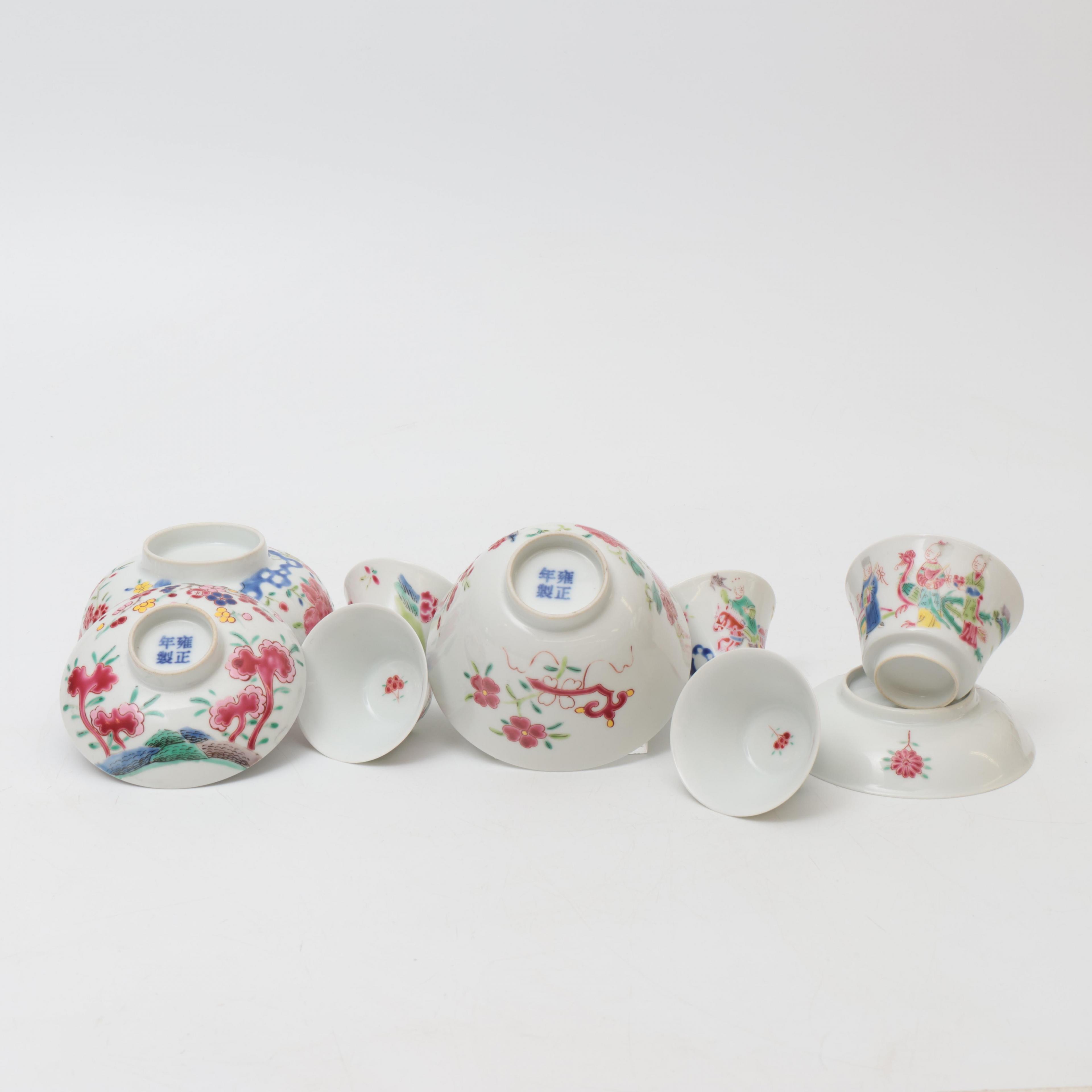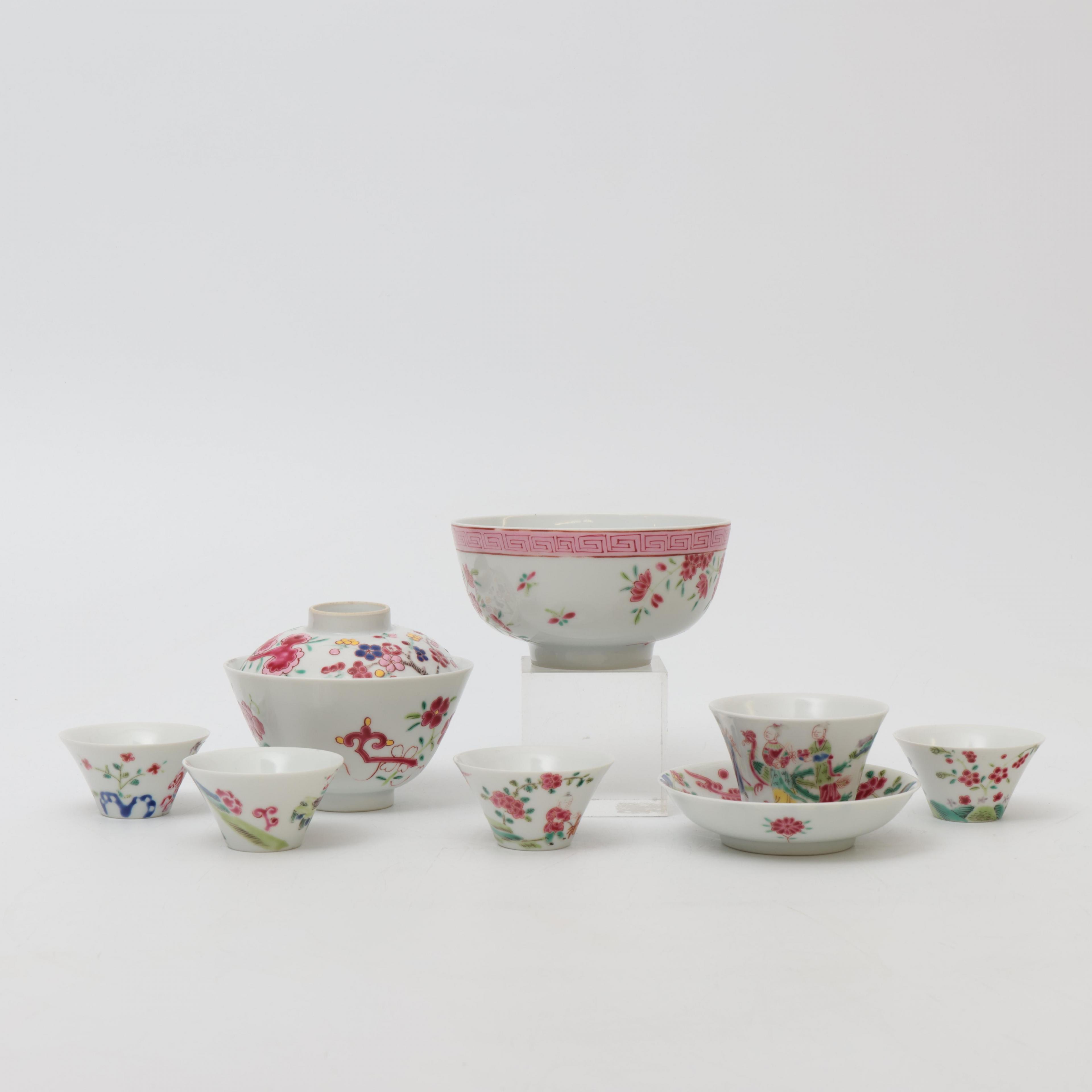 comprising a bowl and cover a bowl, a cup and saucer and four small cups