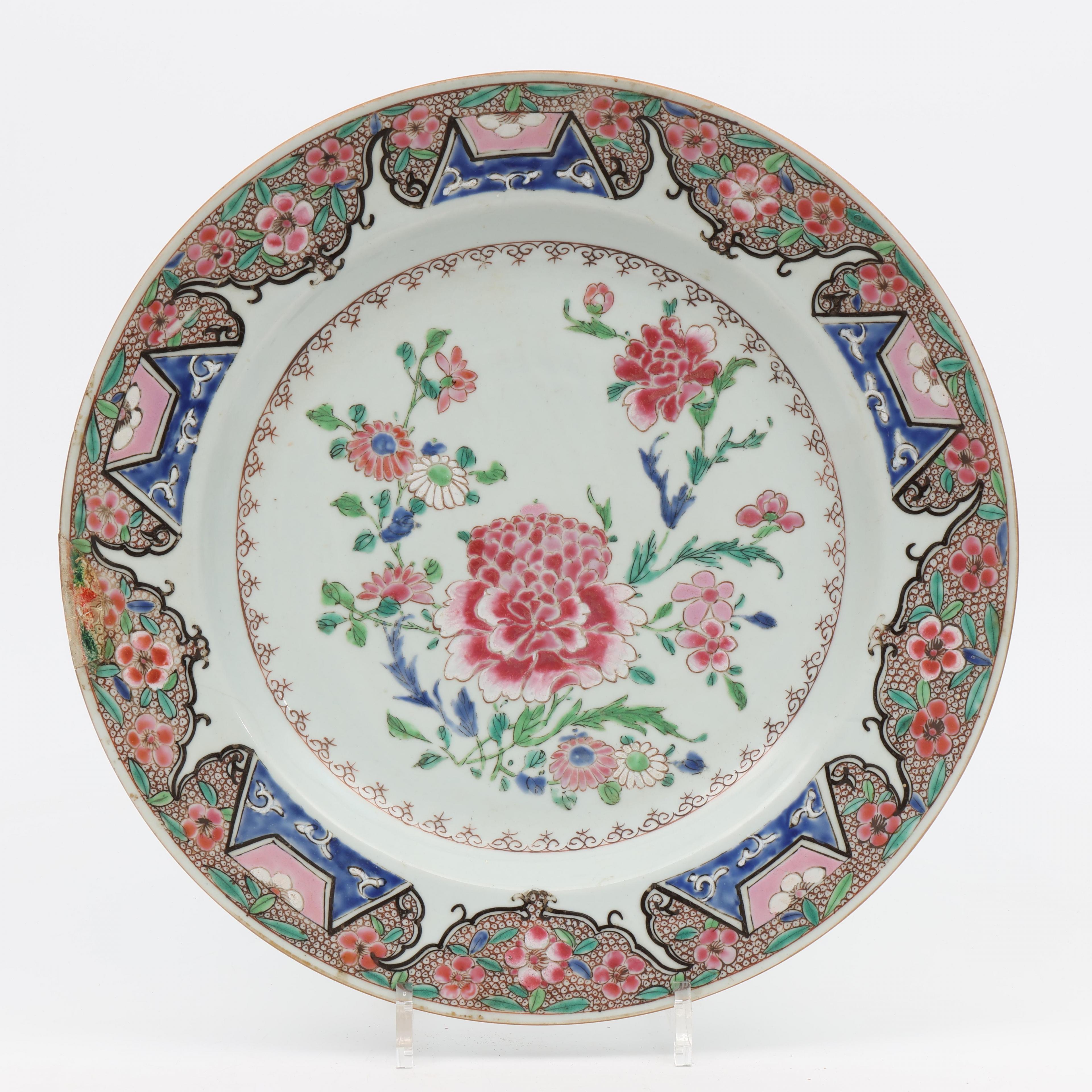 painted with a large peony bloom (restored rim chip of 5 x 1,5 cm with a related hairline)