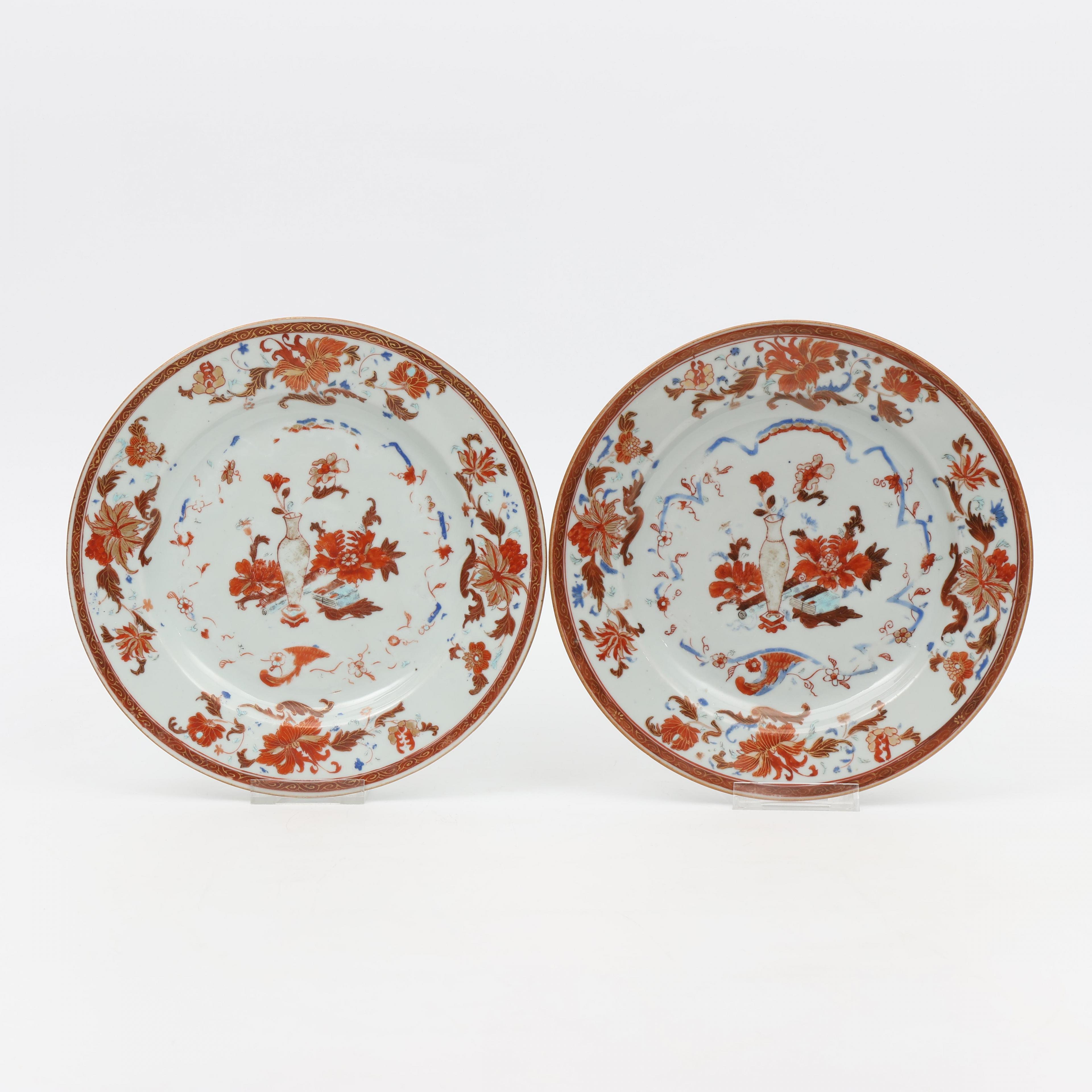 China, a pair of iron-red and gilt porcelain plates, Qianlong period (1736-1795),