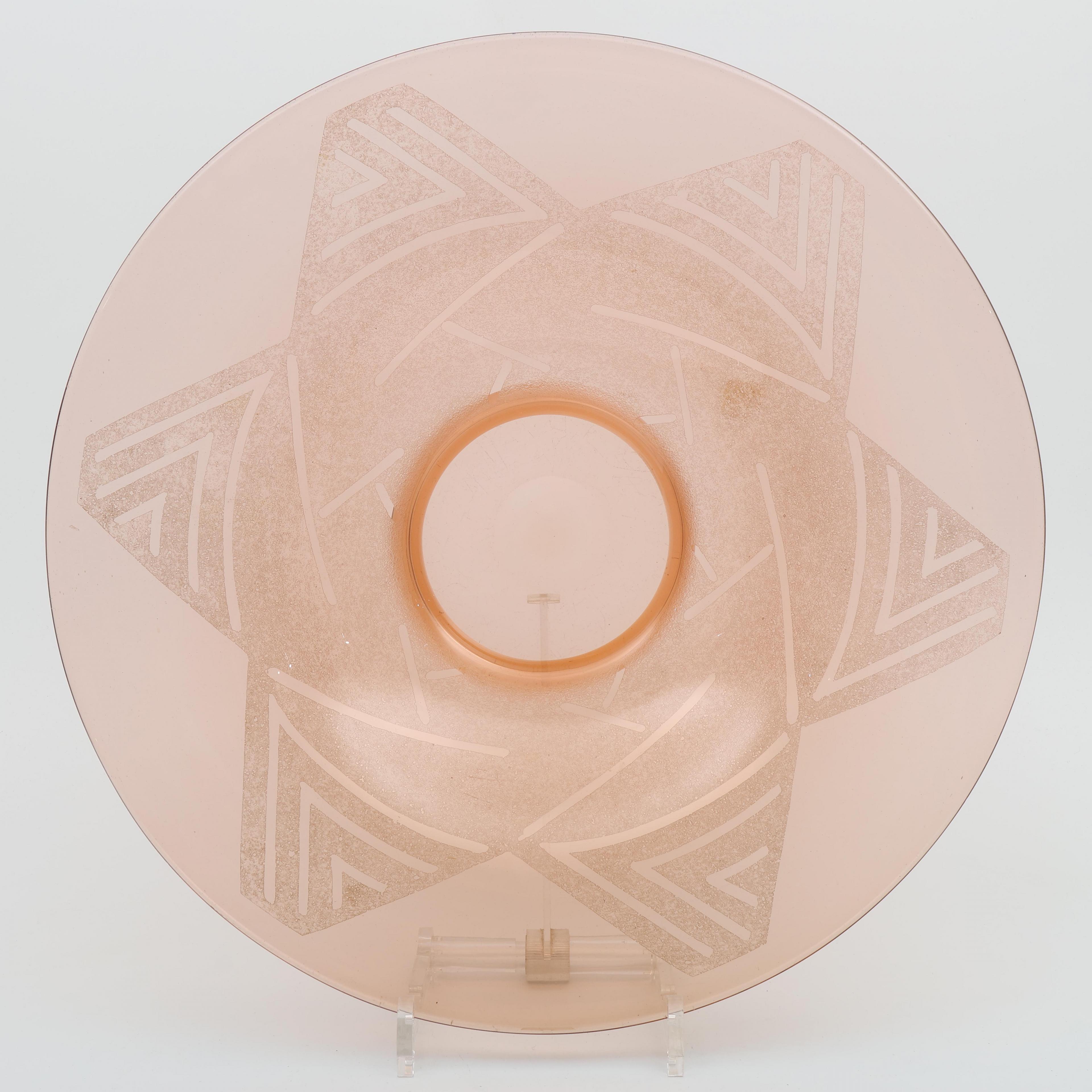 Schneider, roze glazen schaal, Art Deco, circa 1935;