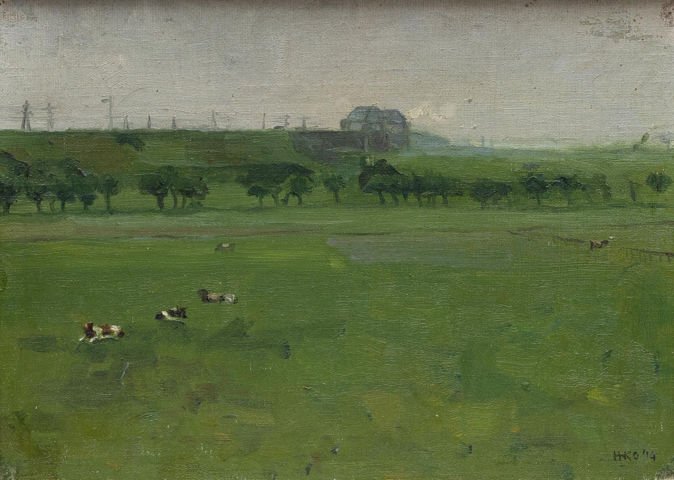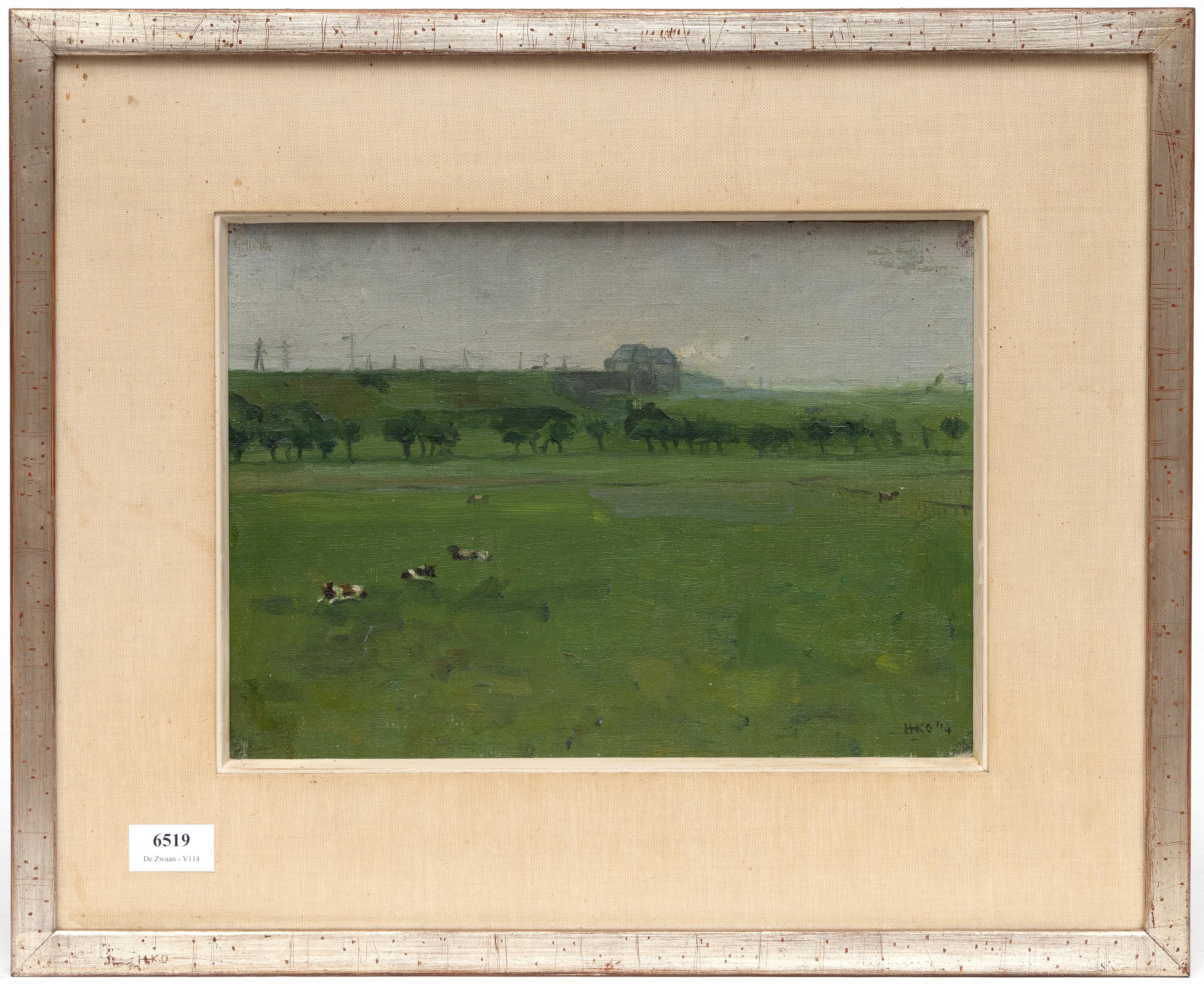 board, monogram r.o., '14, verso titel. signatuur en datering oct. '14, 25 x 34 cm.