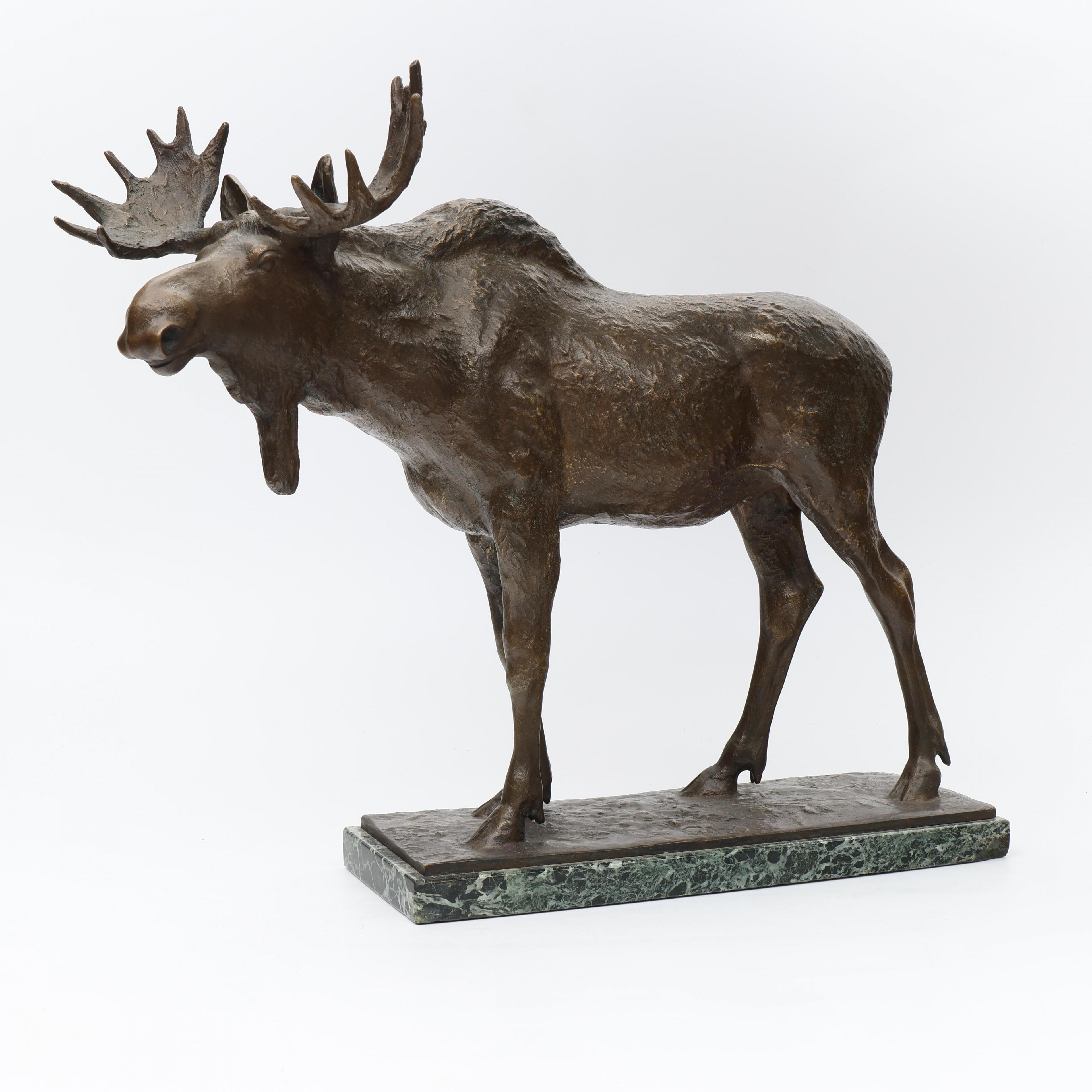 Hermann Fritz (1873-1948), bruin gepatineerd bronzen sculptuur, 'Eland', vroeg 20e eeuw;