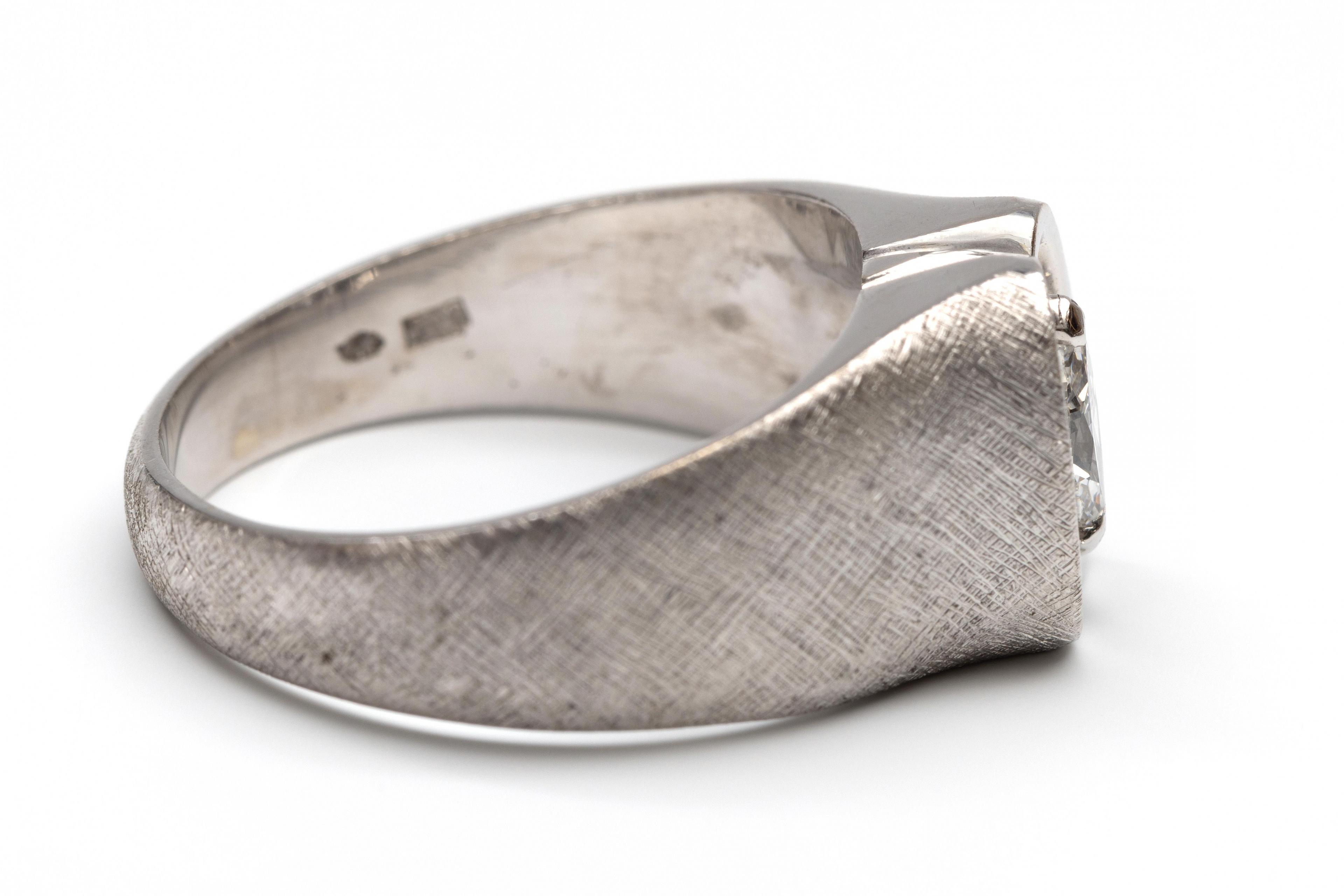 De bovenzijde bestaande uit twee open ovalen waartussen een markies geslepen diamant van ca. 0.35 ct. Het oppervlak gearceerd. Meesterteken Bernard Schipper, Amstelveen, 1973 - 1994