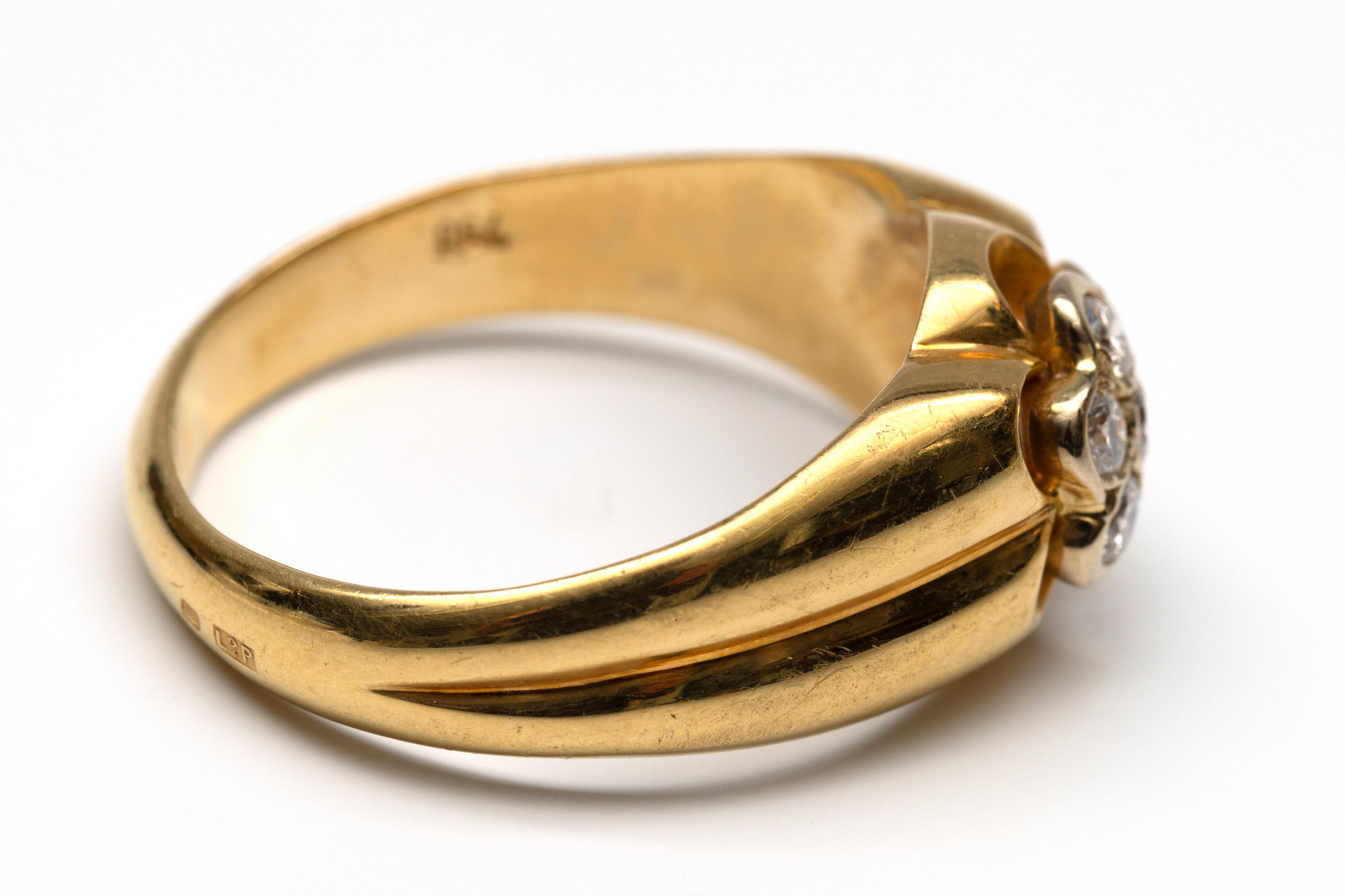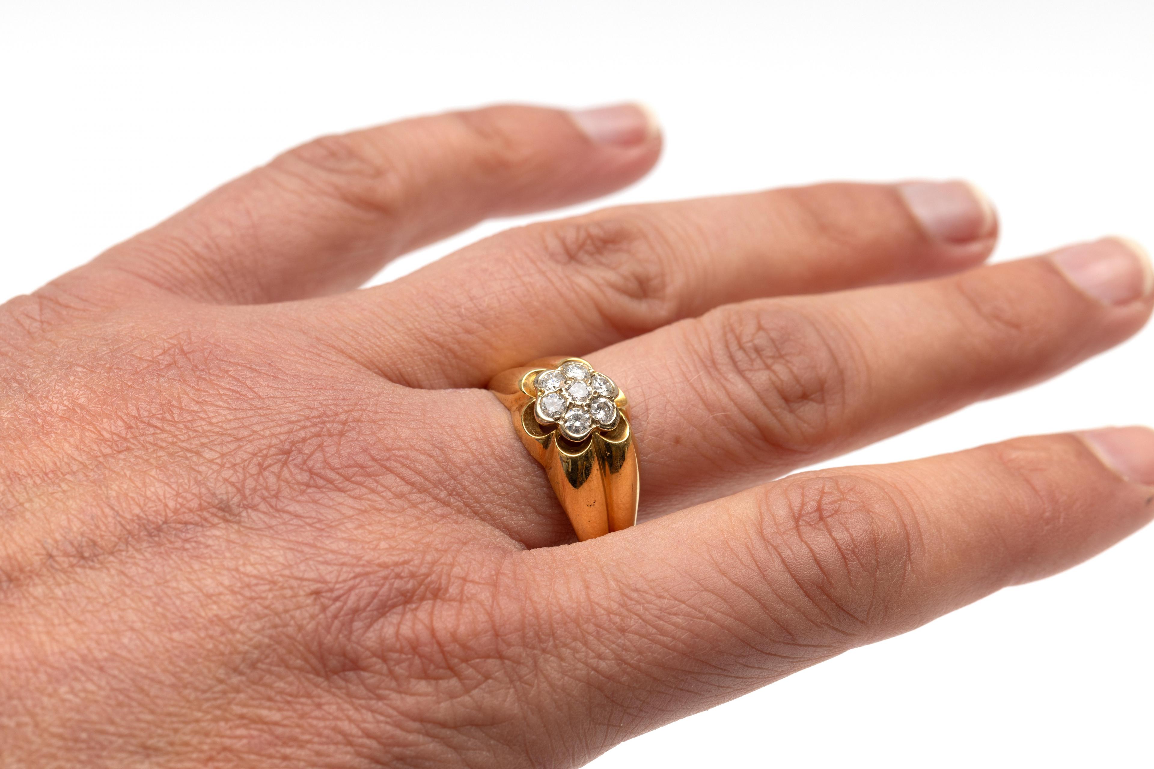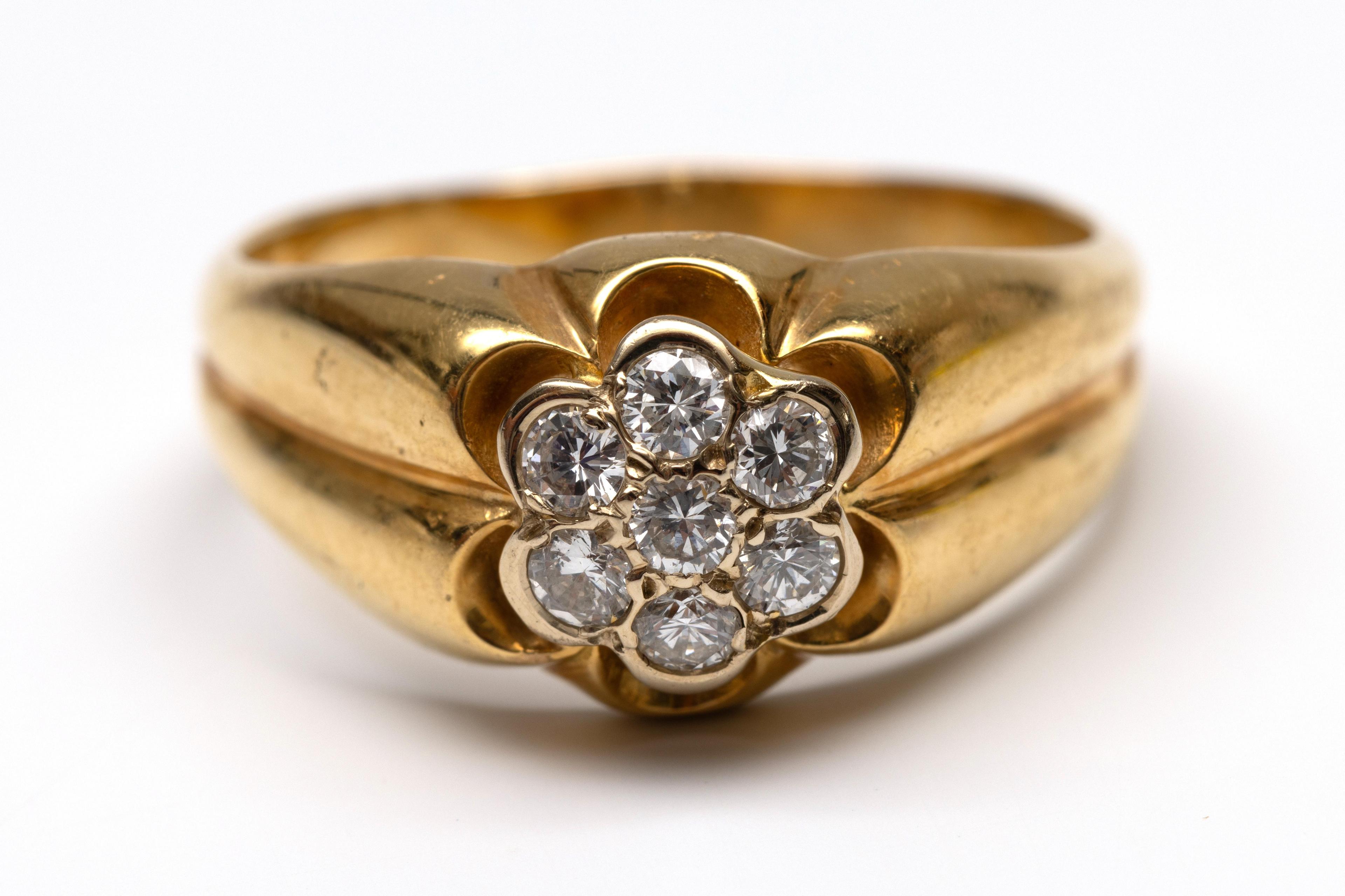 18 k. gold ring with a rosette-shaped top, set with a brilliant-cut diamond weighing approximately 0.50 ct. Maker's mark L. Polak, Bussum, 1974-present