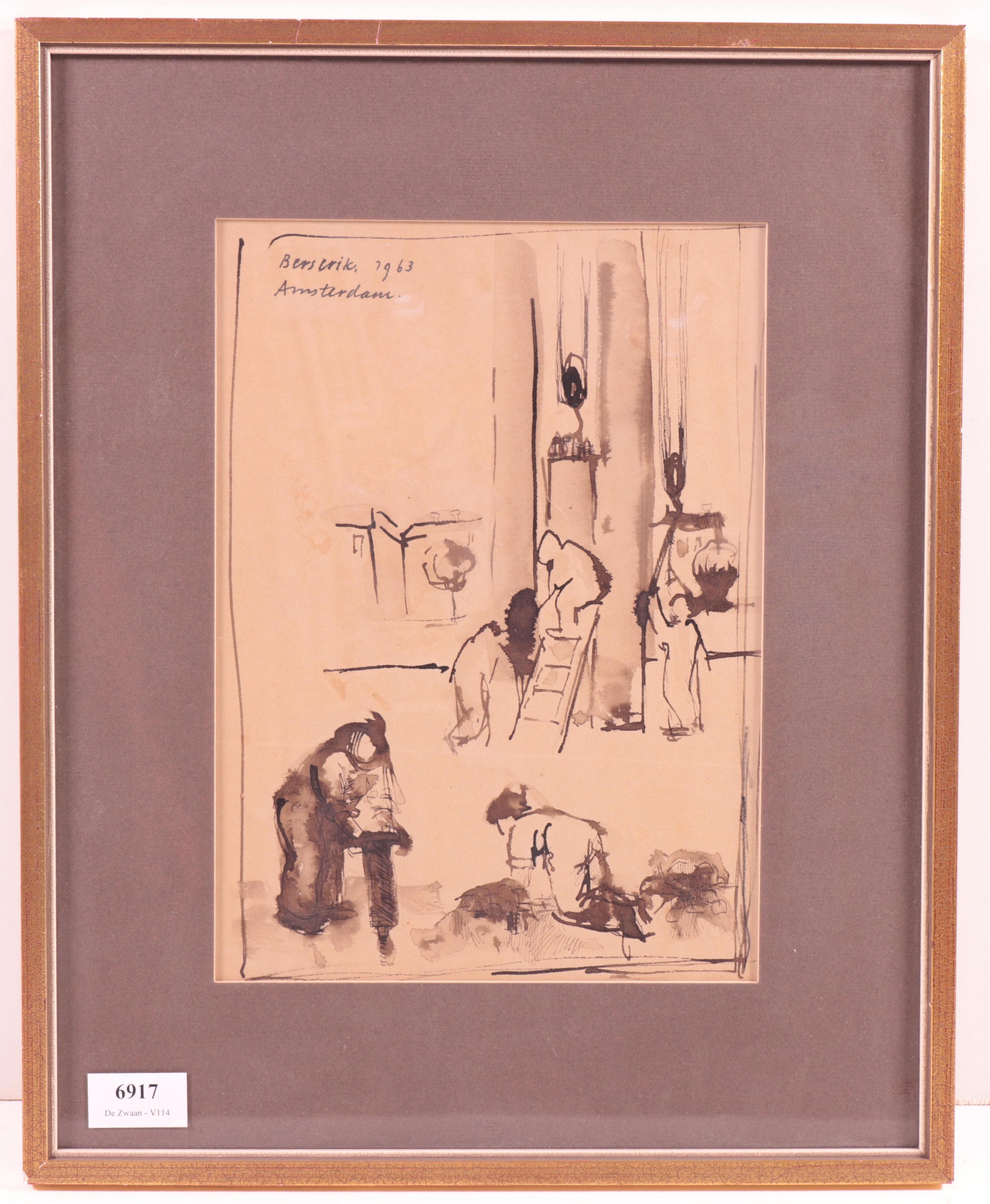 inkttekening, gesign. l.b., '63, 30 x 21 cm.