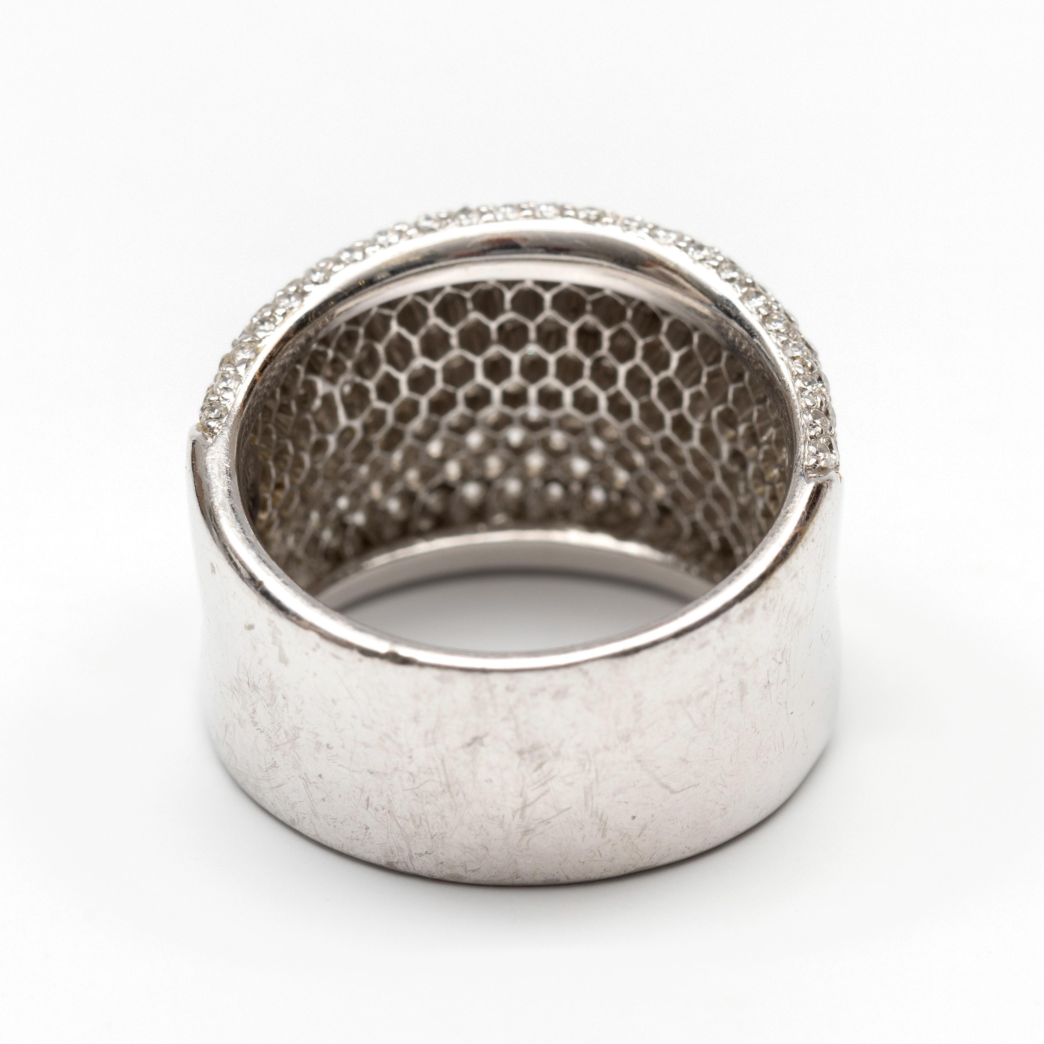 De bovenzijde licht concaaf en pavé bezet met briljant geslepen diamant met een totaalgewicht van ca. 1.35 ct.