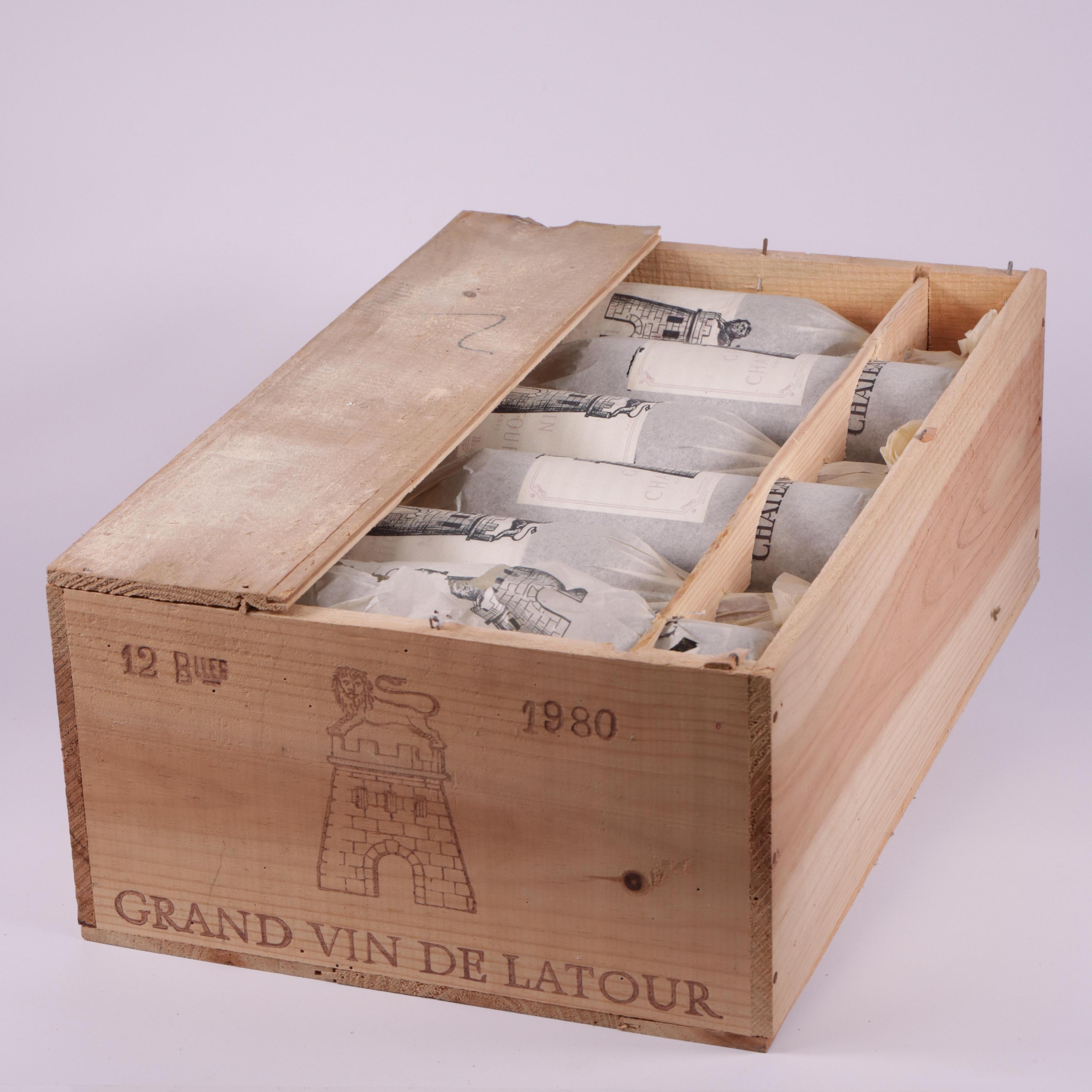 Twaalf flessen wijn, rood, Chateau Latour, Premier G.C.C., 1980, in kist.