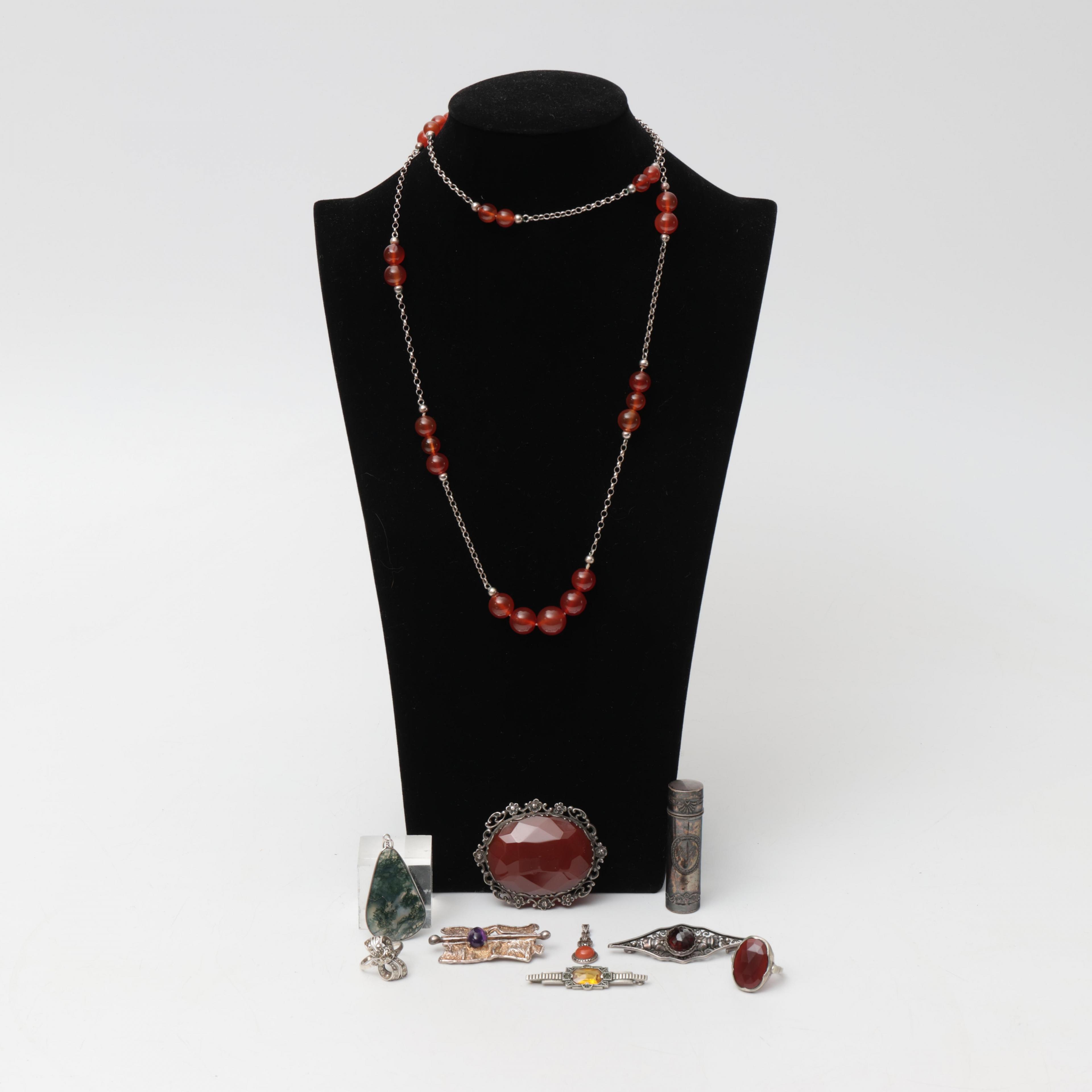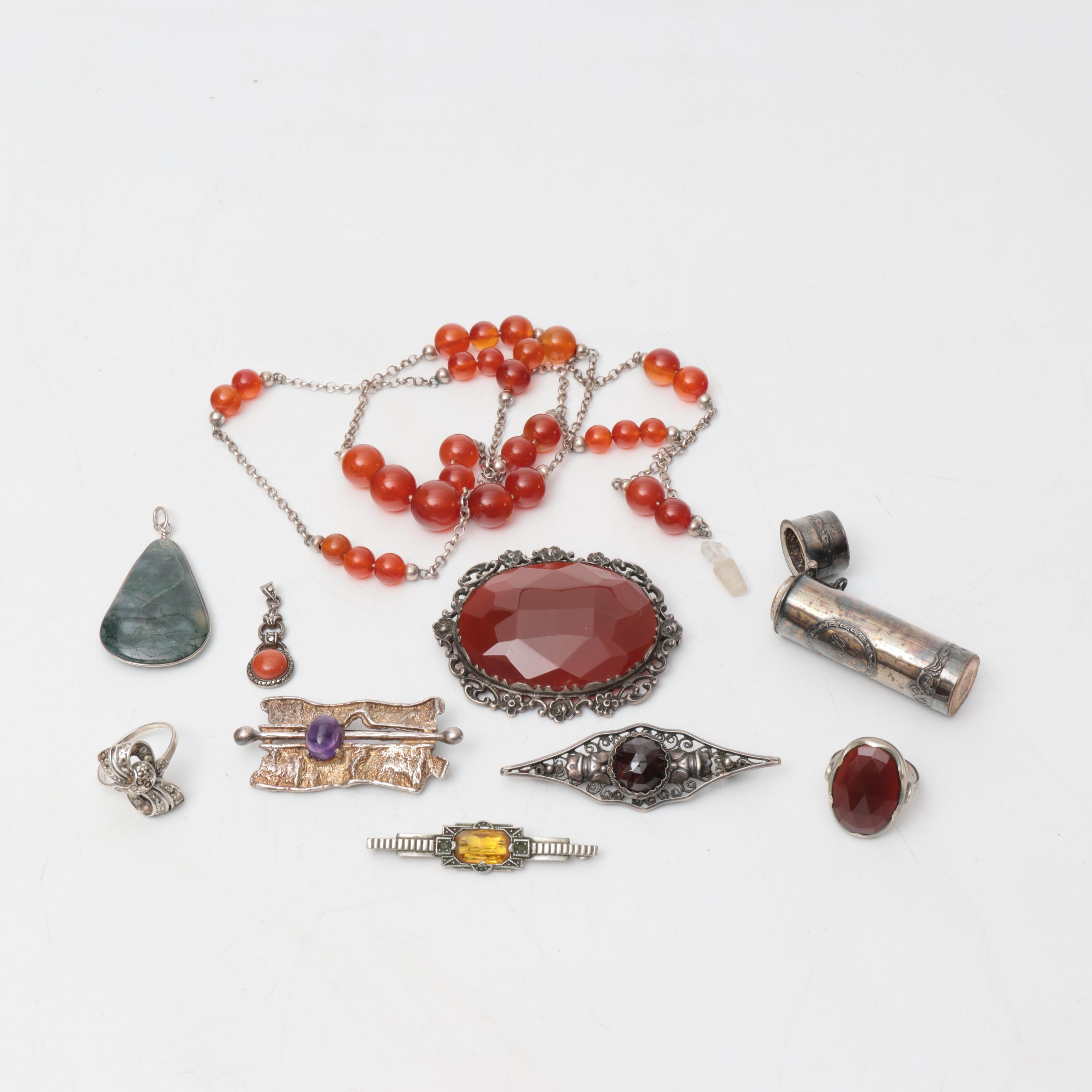 waaronder bezet met granaat en kornalijn. Hierbij een parfumflacon
