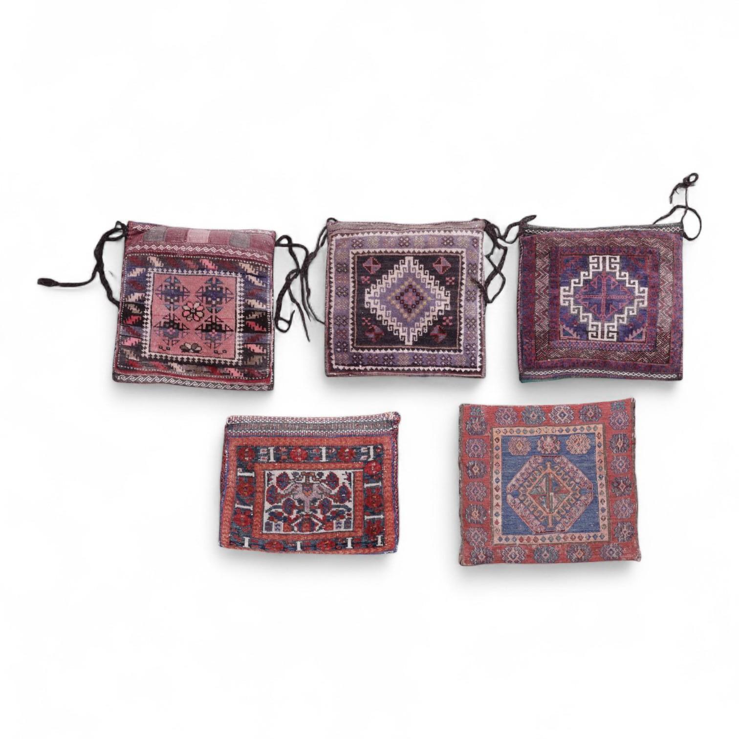 Vier tassen en één Sumak Shasavan tas, ca. 1900