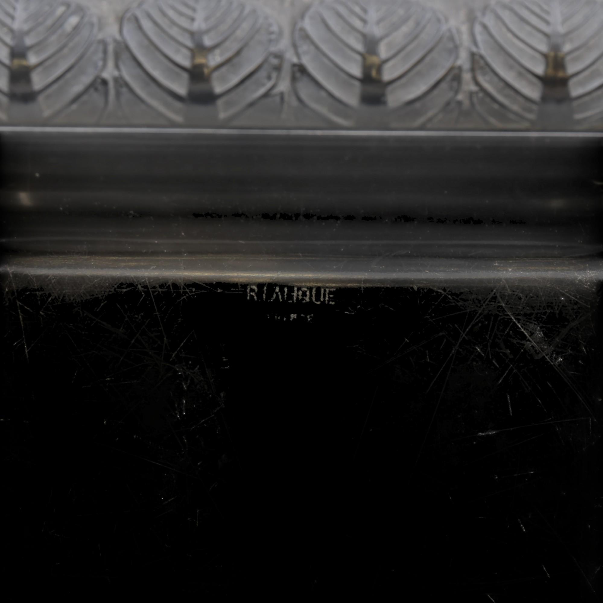De rand uitgevoerd met decoratie van bladeren. Gemerkt. R.Lalique France.