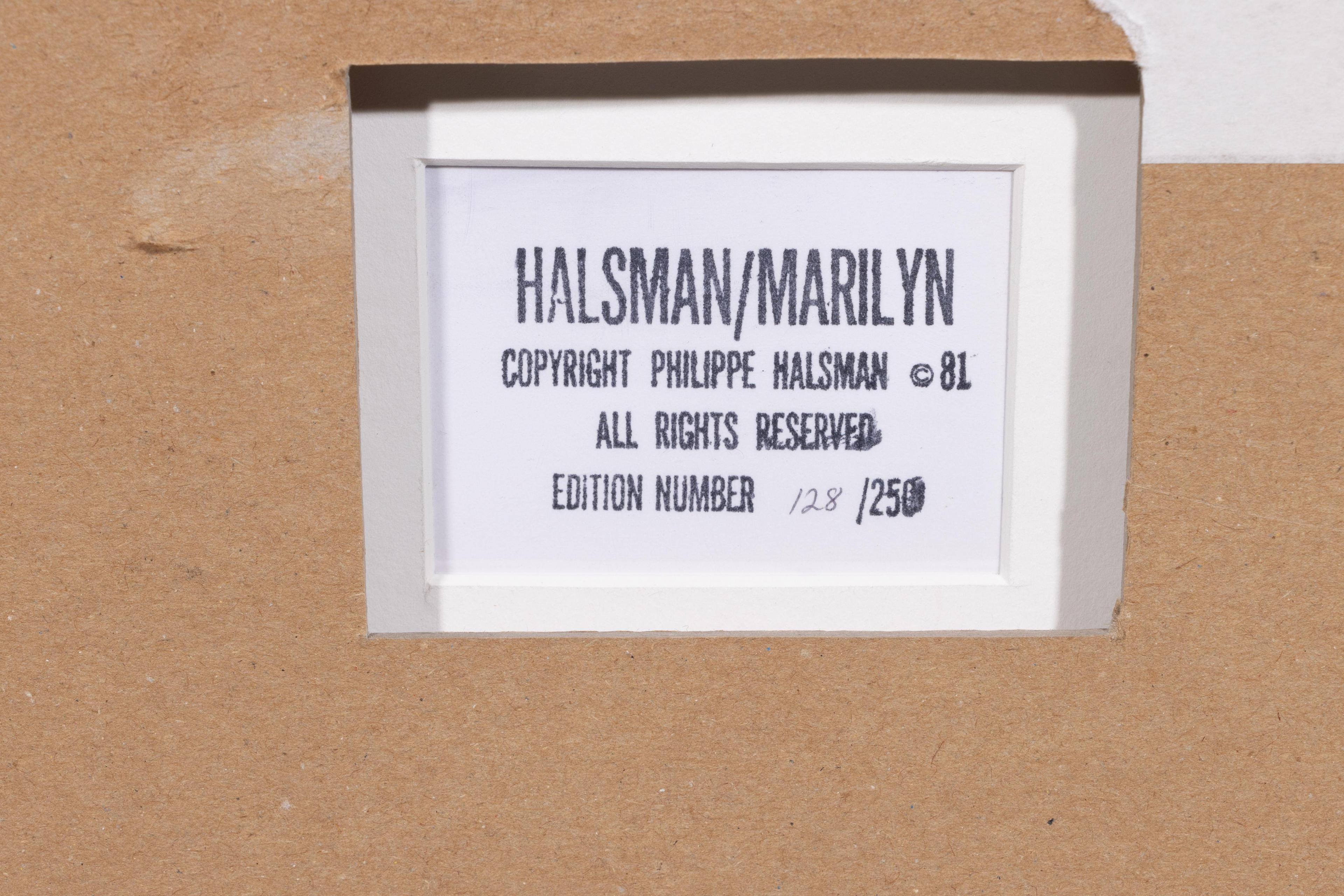 Gelatin silver print, 1952, unsigned, with Halsman/Marilyn stamp on verso, printed in 1981, edition number 171/250