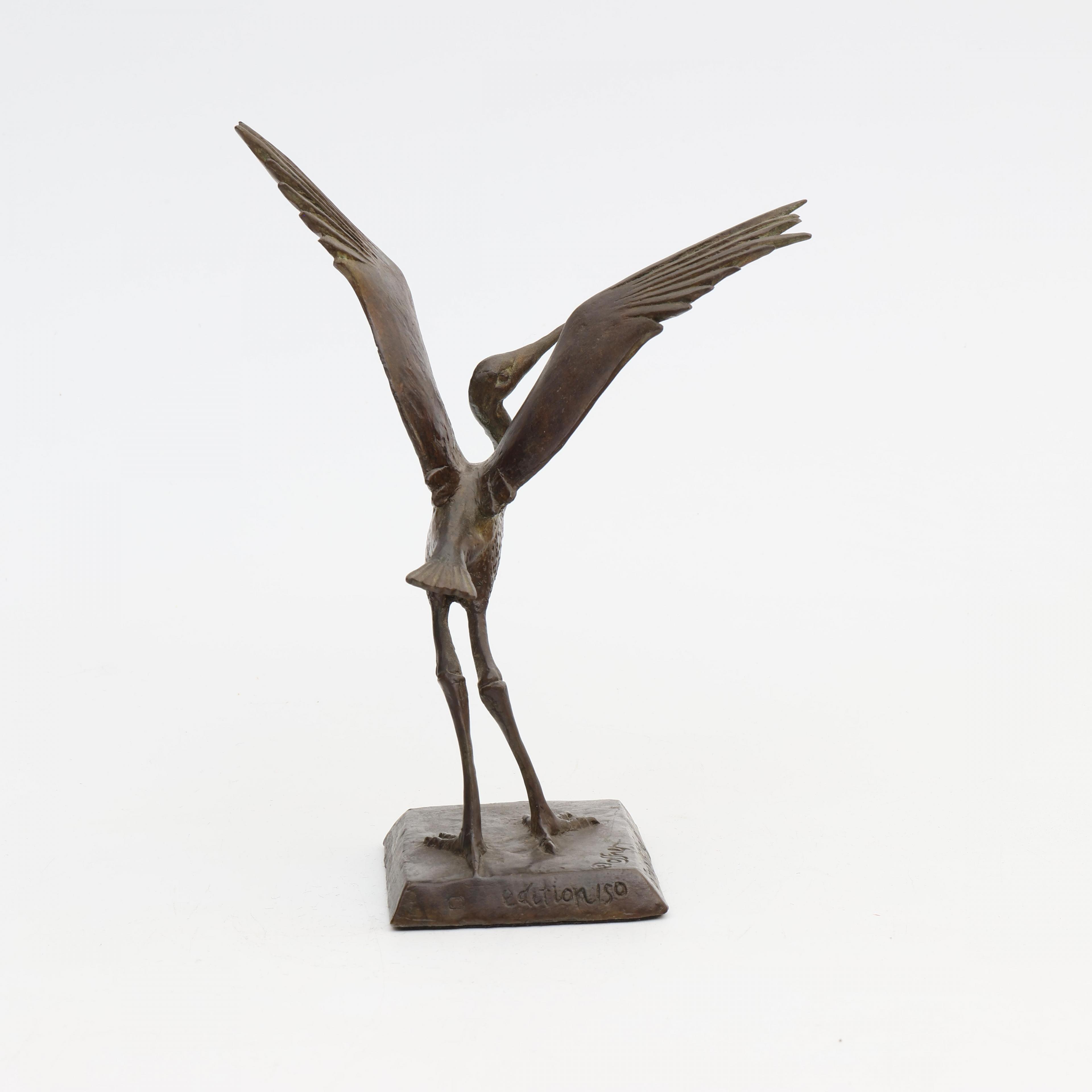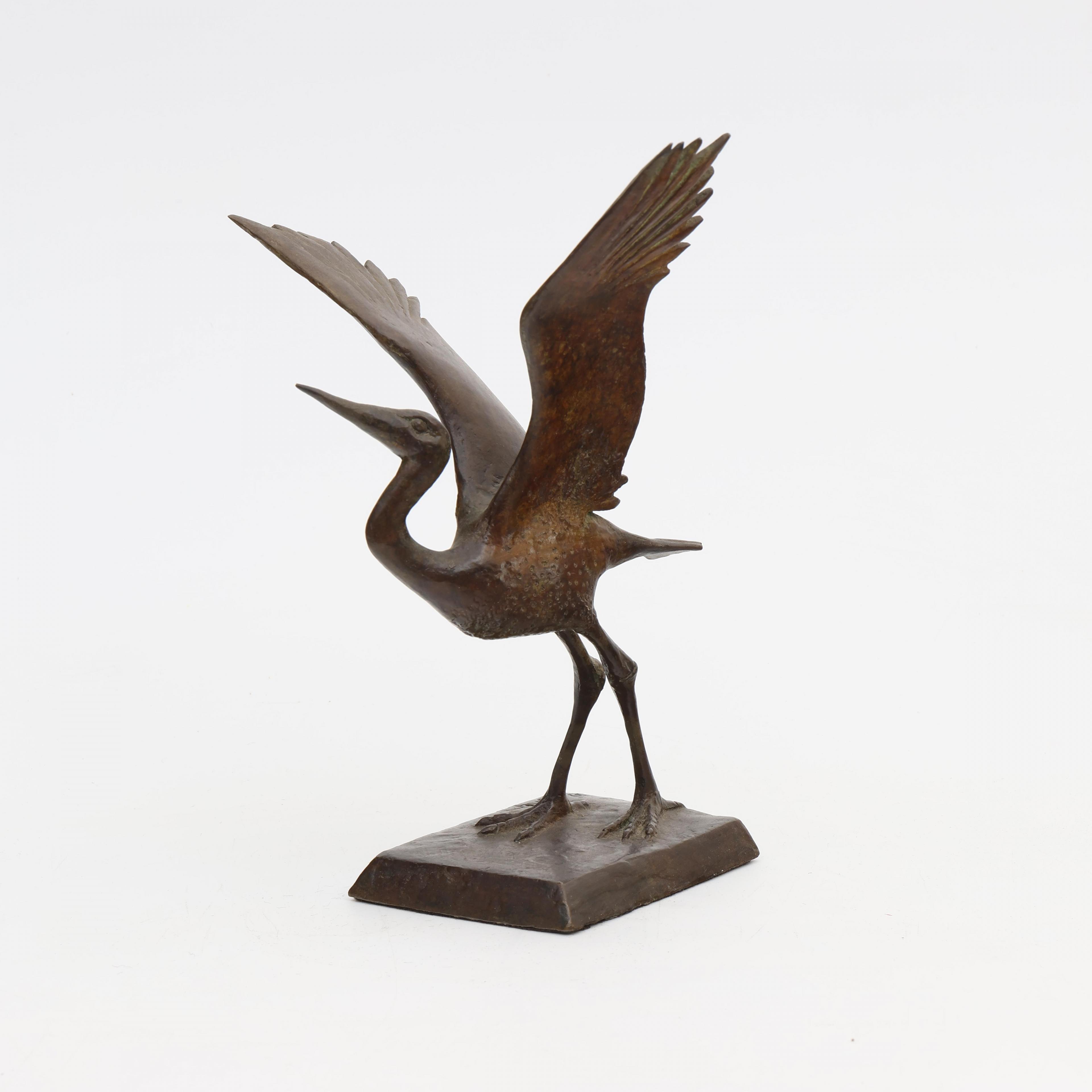Elliot Offner (1931-2010), bruin gepatineerd bronzen sculptuur, 'Blauwe Reiger', circa 1987;