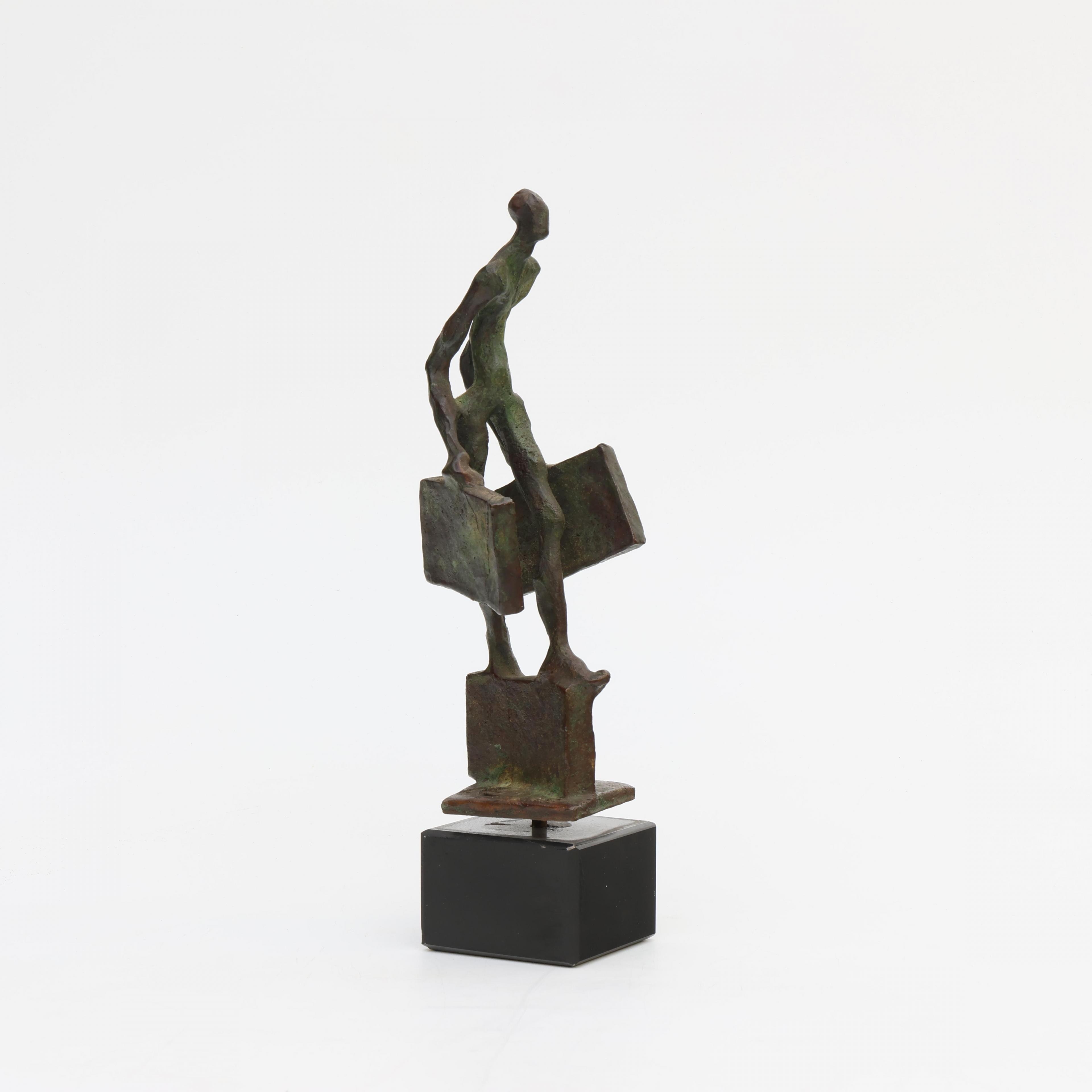 Ronald Tolman (geb. 1948), groen gepatineerd bronzen sculptuur, 'Vakantie';