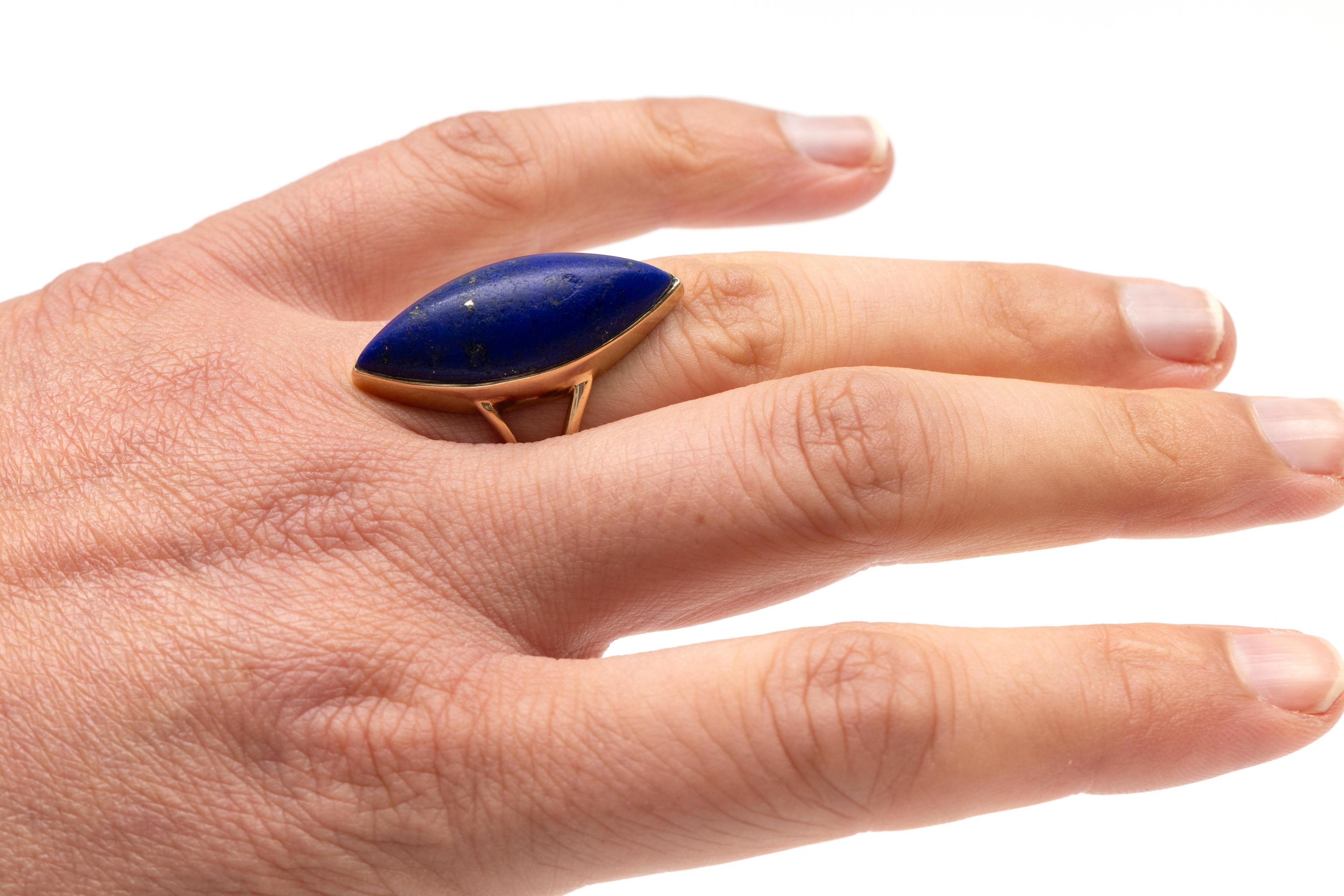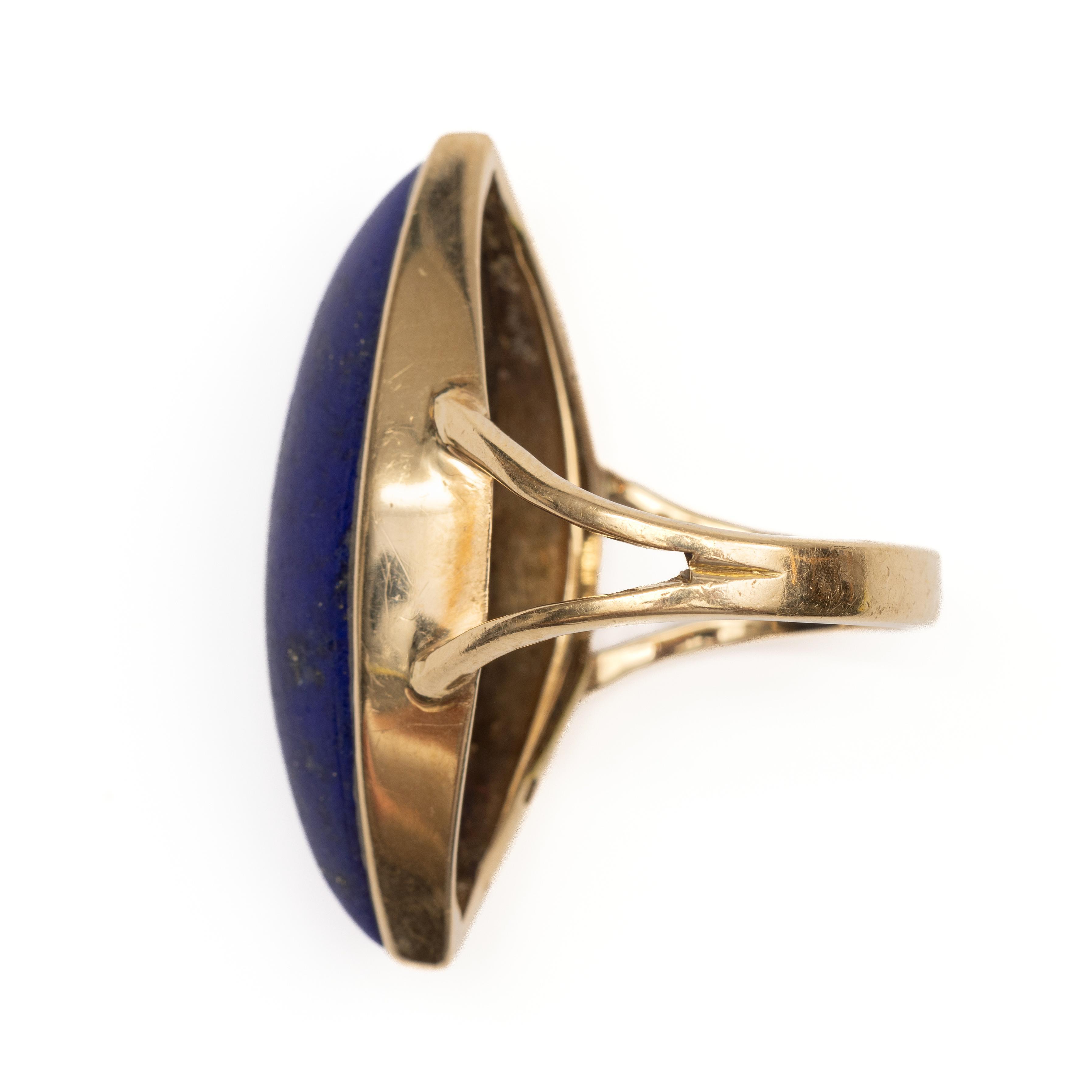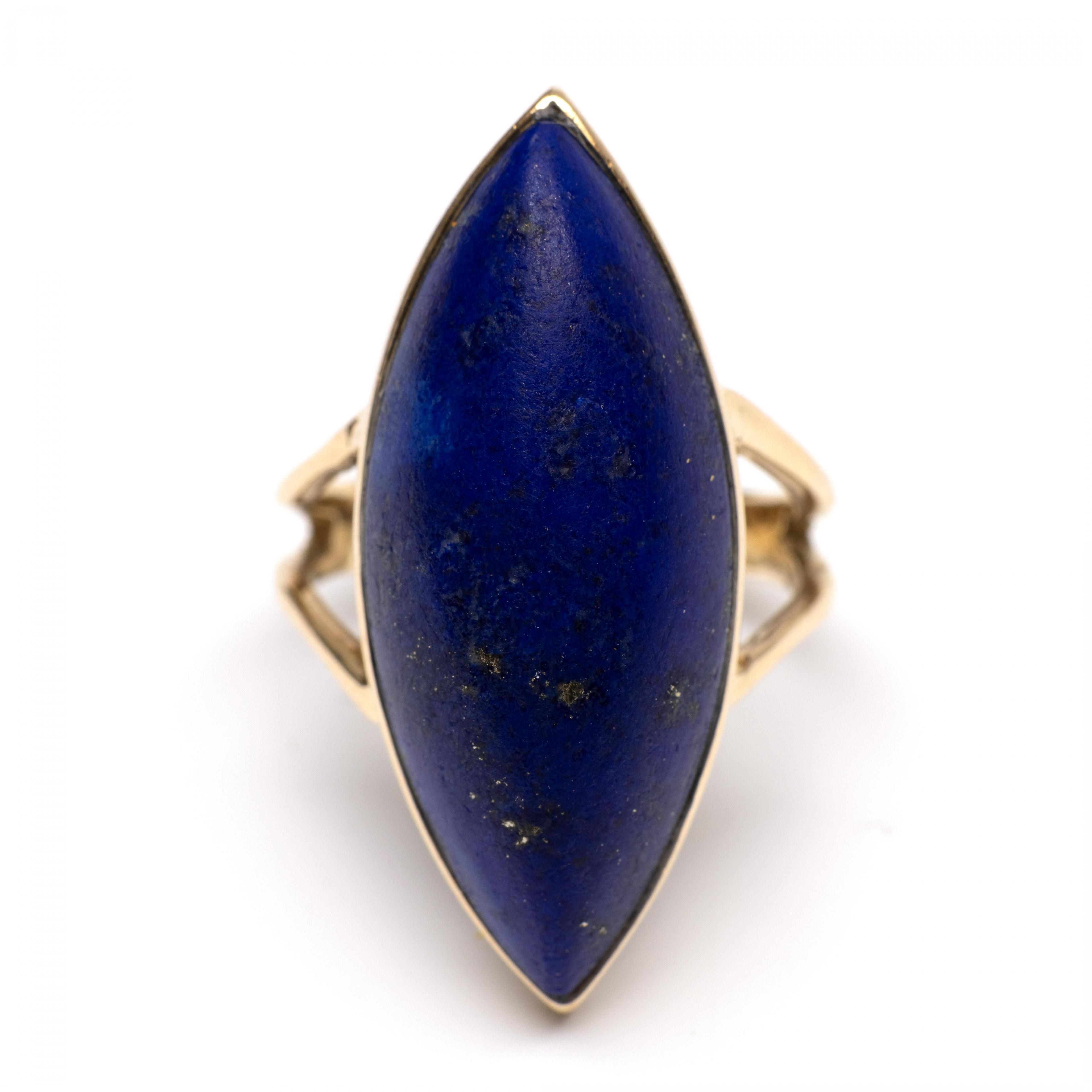 14 k. gold ring. Set with a marquise-shaped cabochon-cut lapis lazuli (approx. 30 x 11 mm)