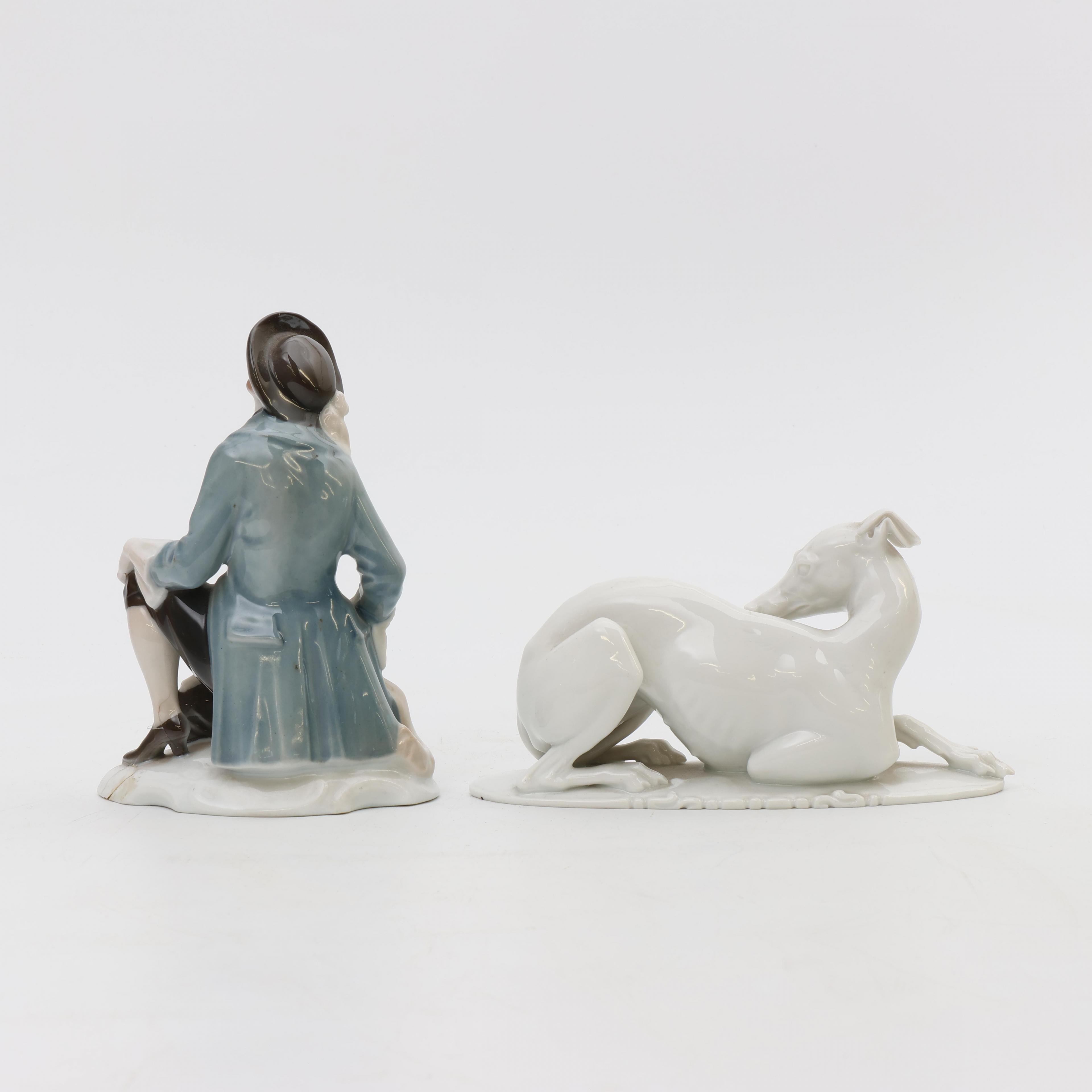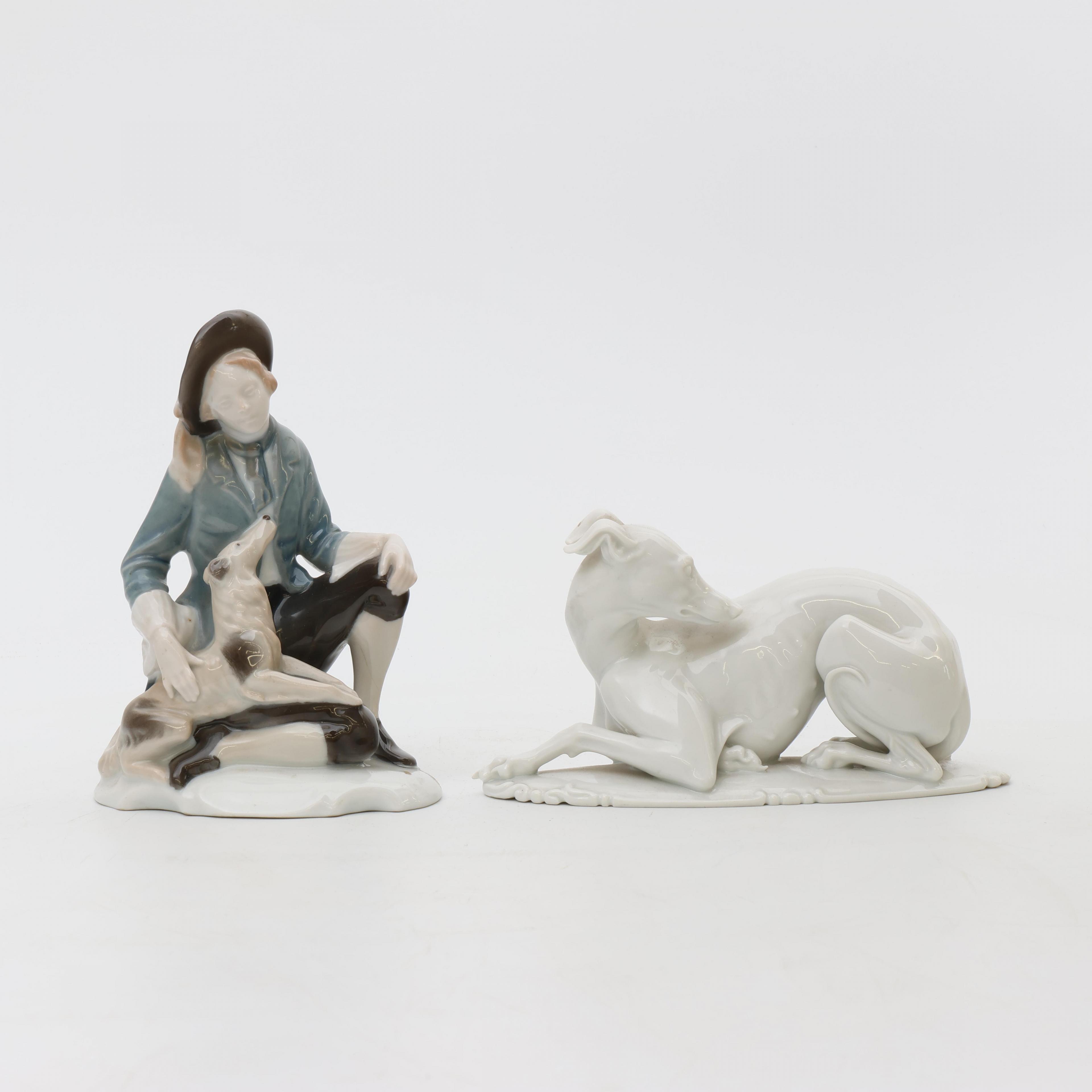 Voorstellende hazewindhond, ontwerp T. Kärner en man met hond.