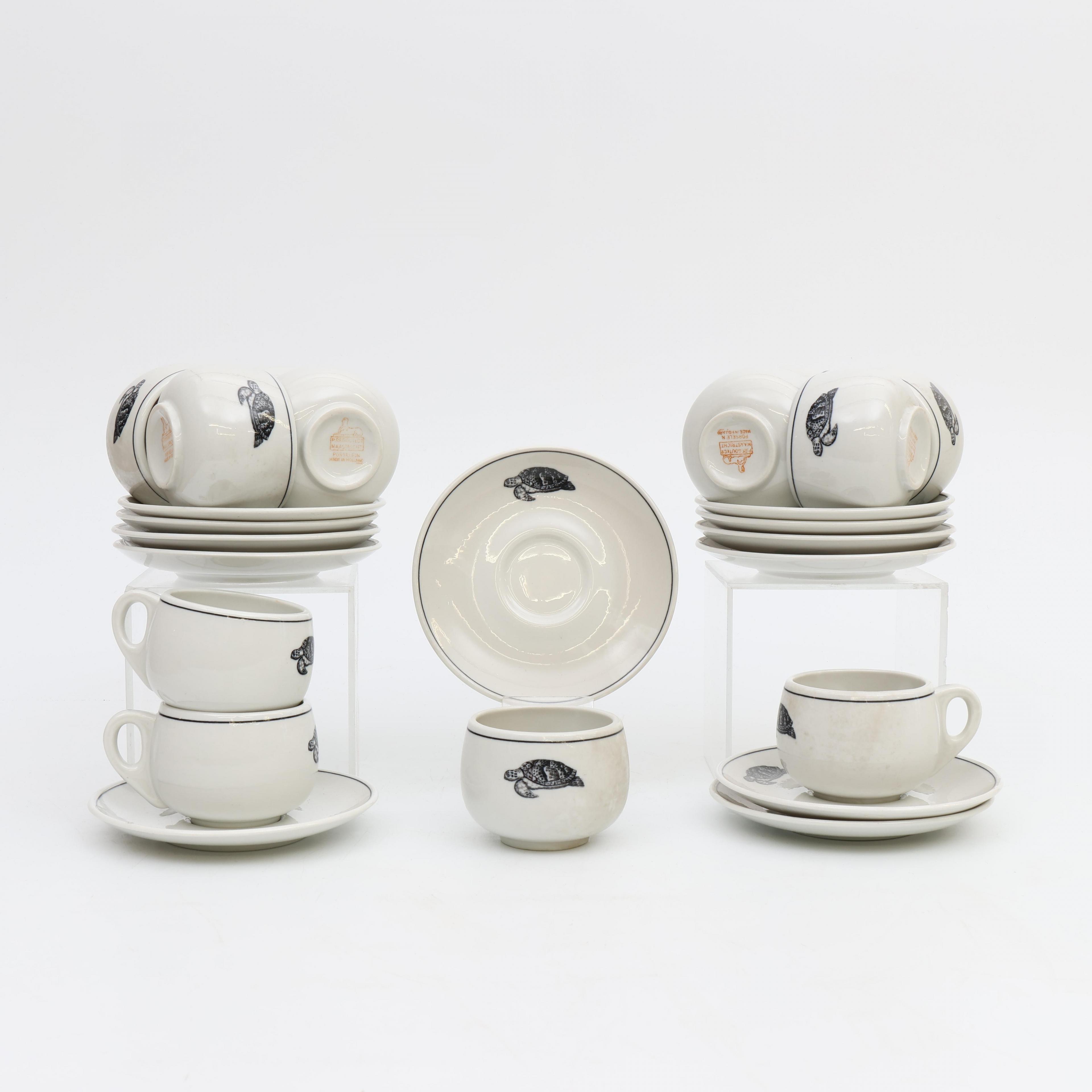 Petrus Regout, twaalf wit porseleinen schildpadsoep kop- en schotels;