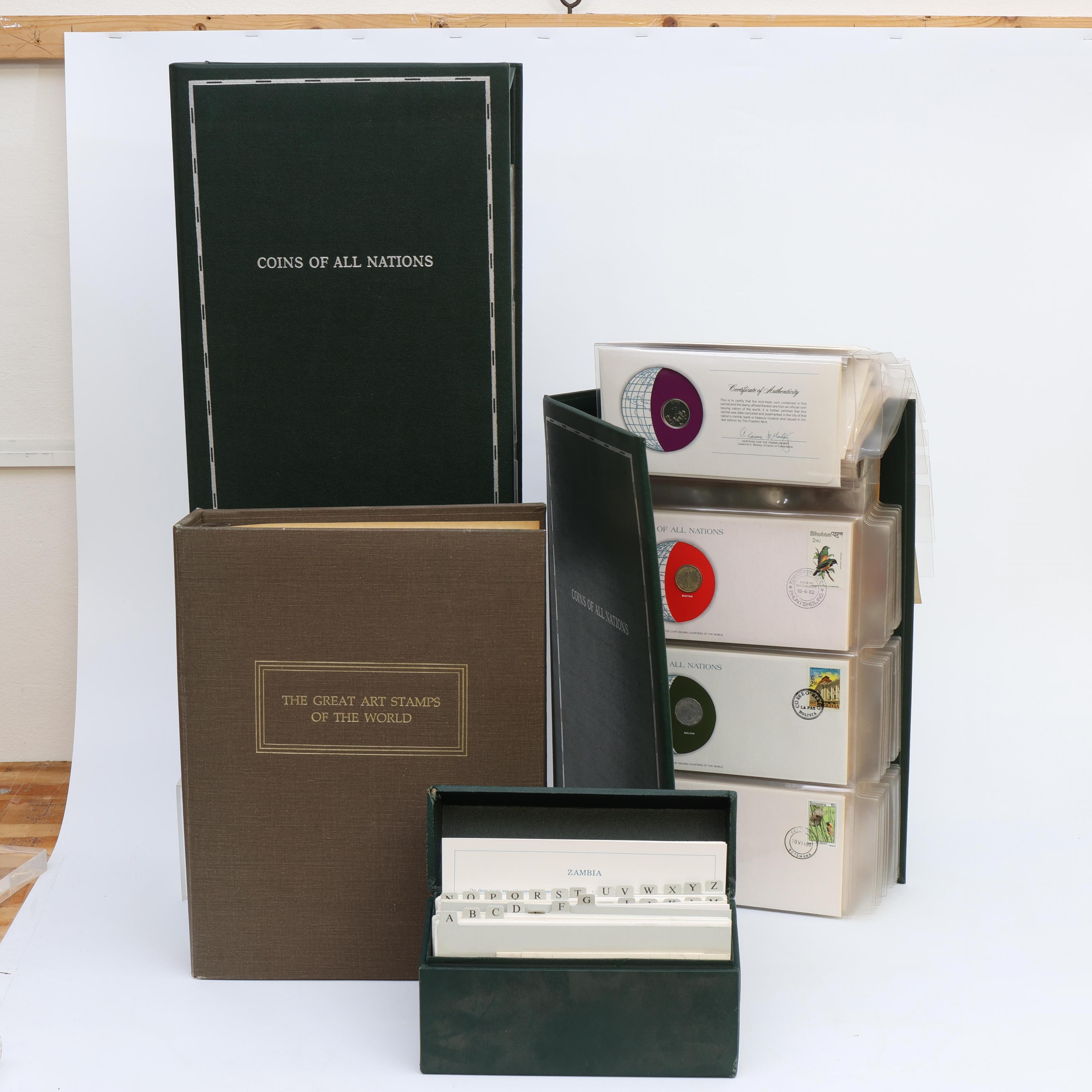 Compleet met index kaartenbak. Hierbij album The great art stamps of the world.
