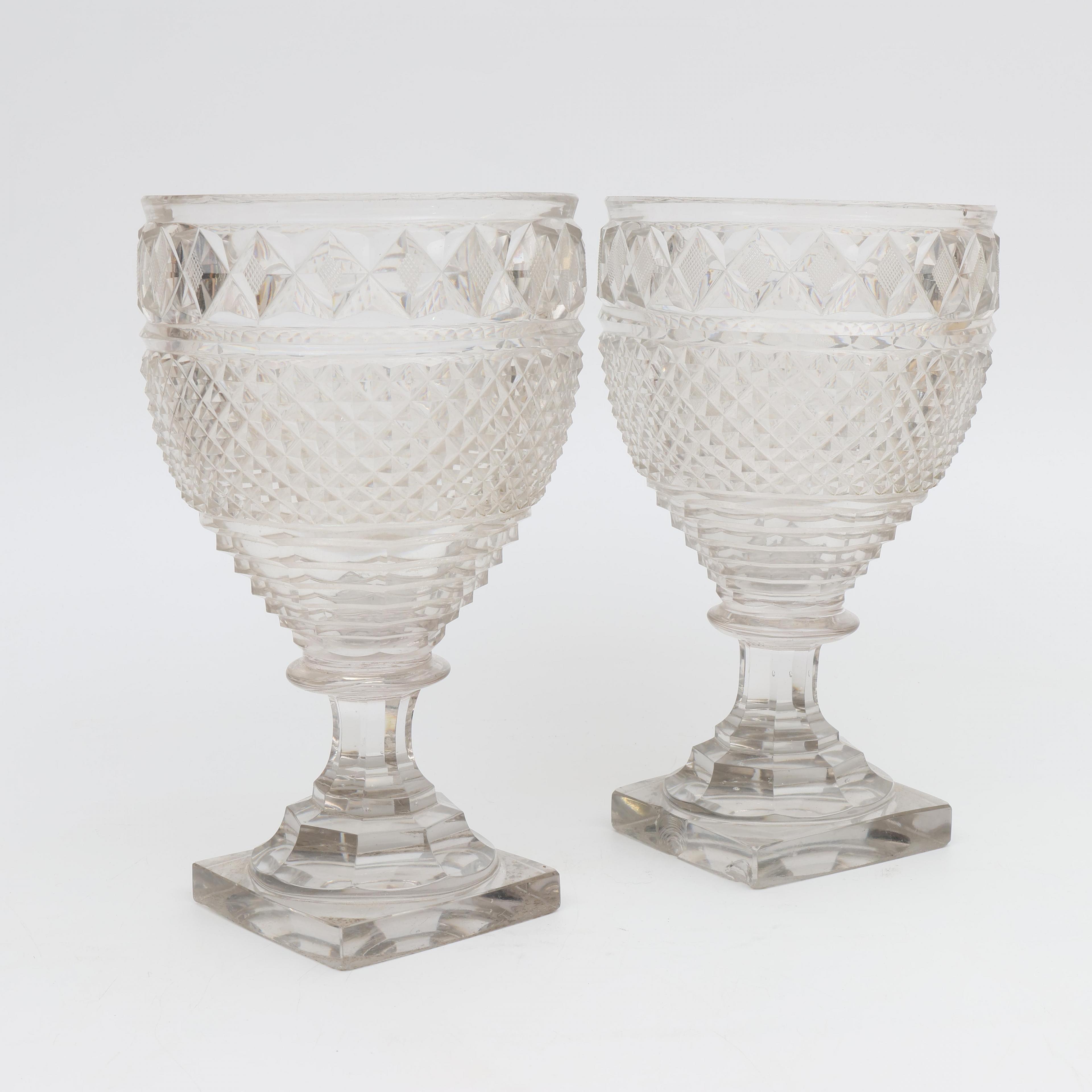 Paar kristallen geslepen gembercoupes, 19e eeuw;