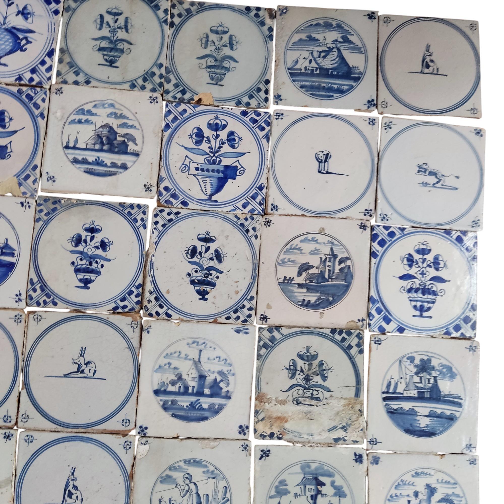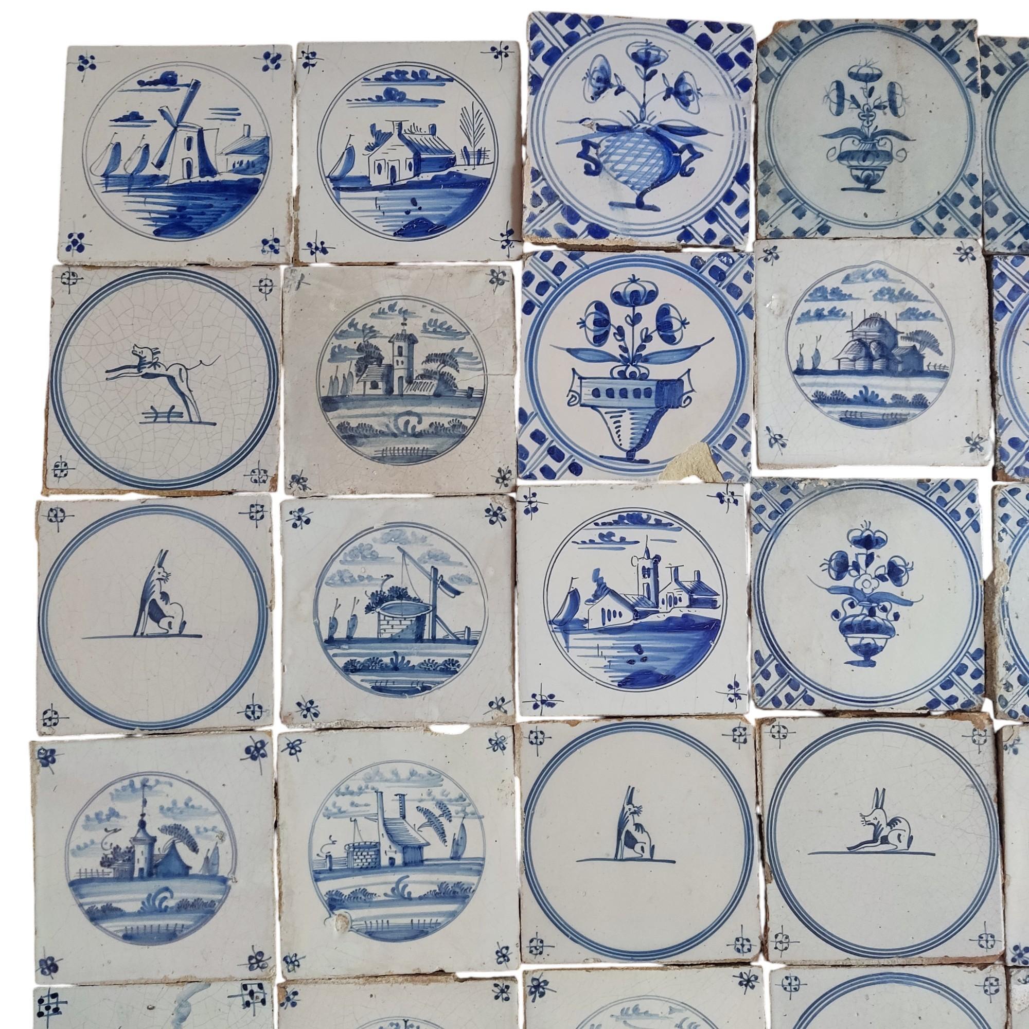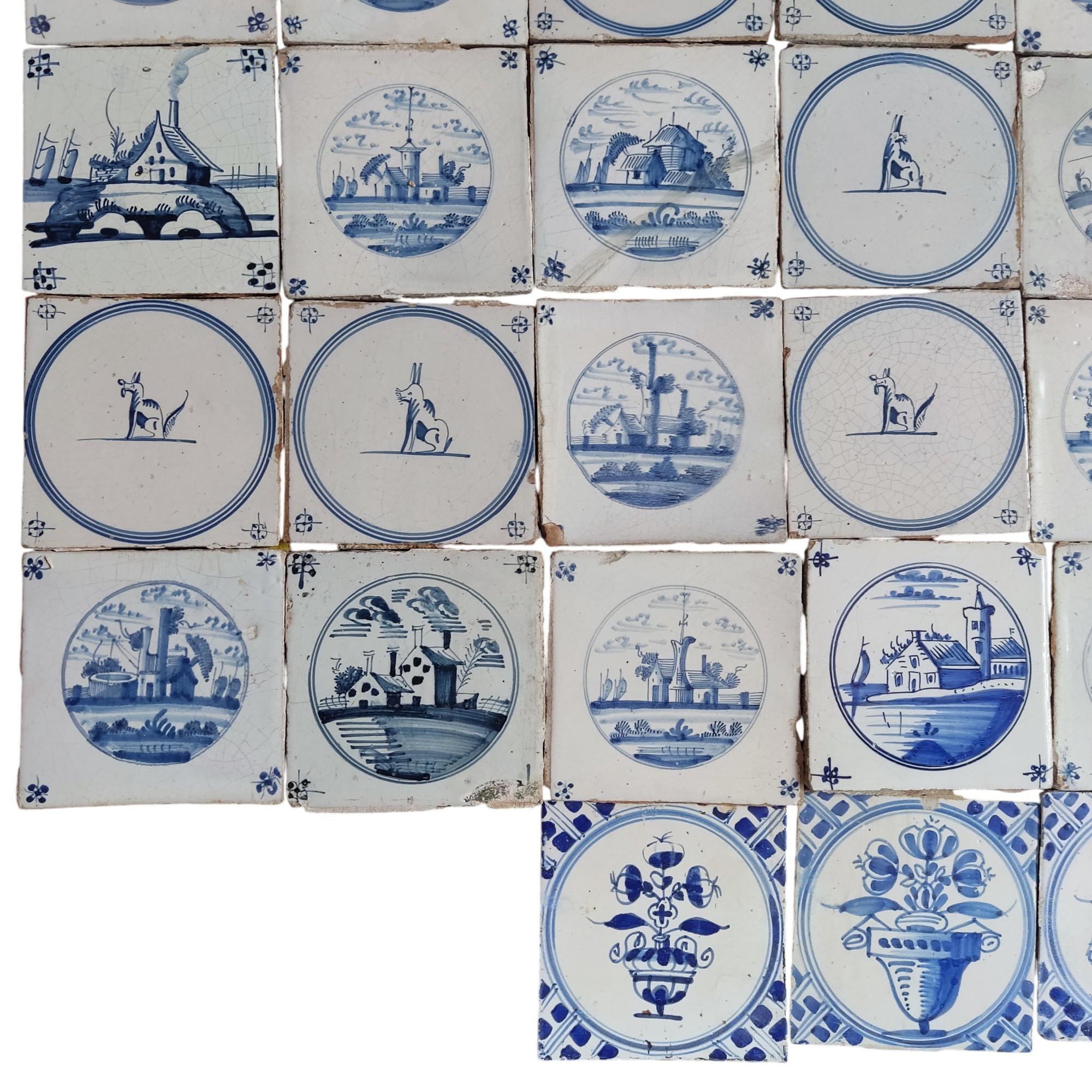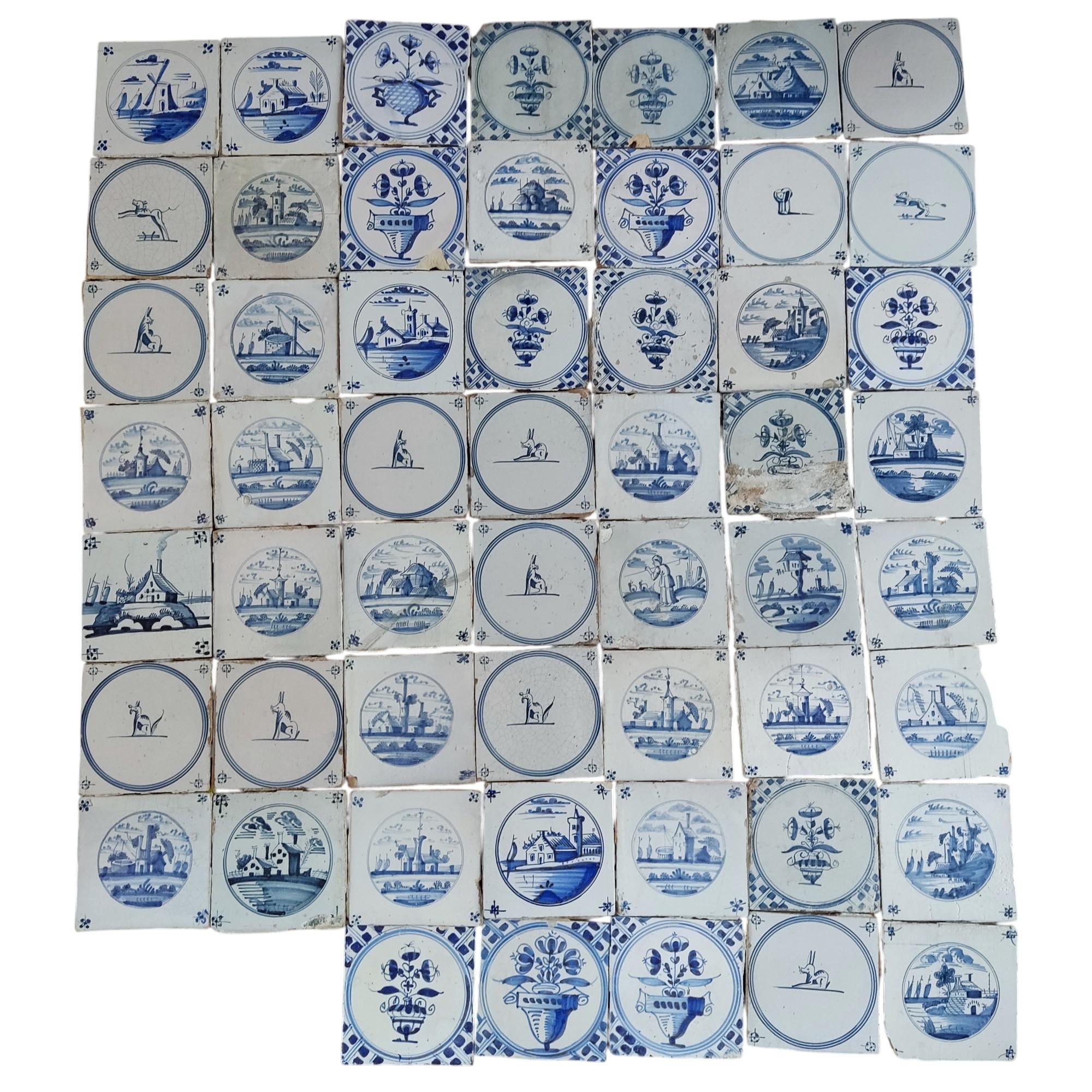 Delft, vierenvijftig blauw wit aardewerk tegels, 18e eeuw;