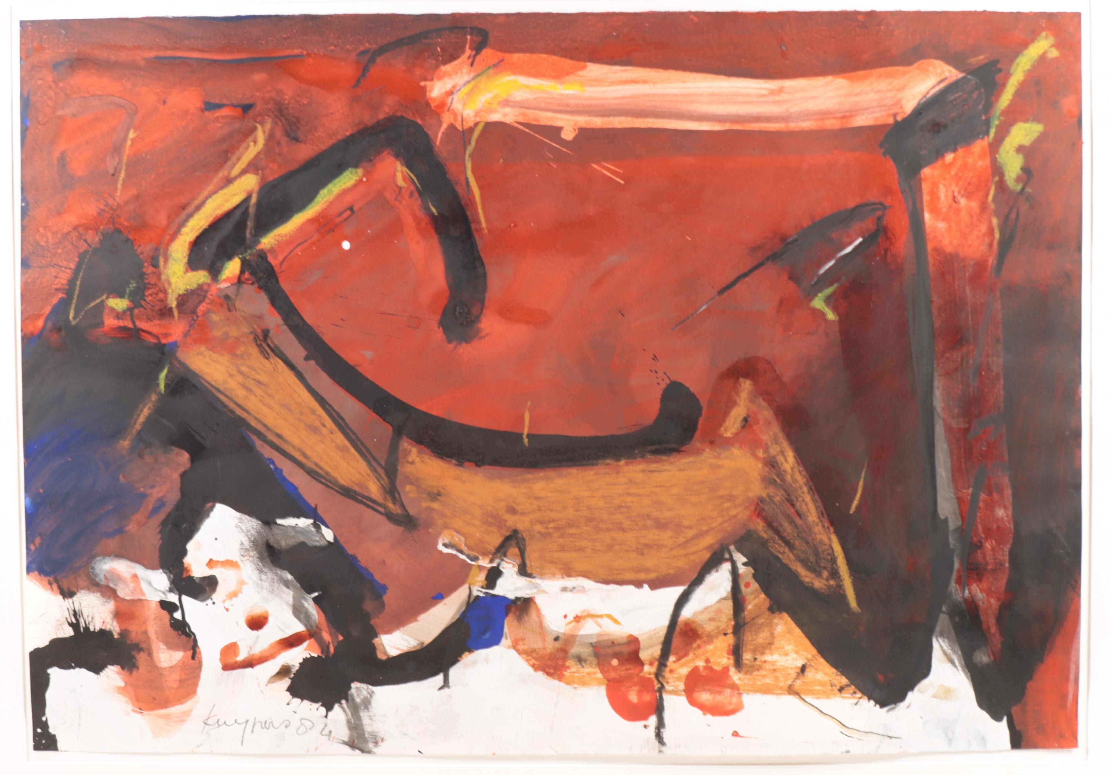 inkt en gouache, gesign. l.o., '84, 70 x 100 cm.