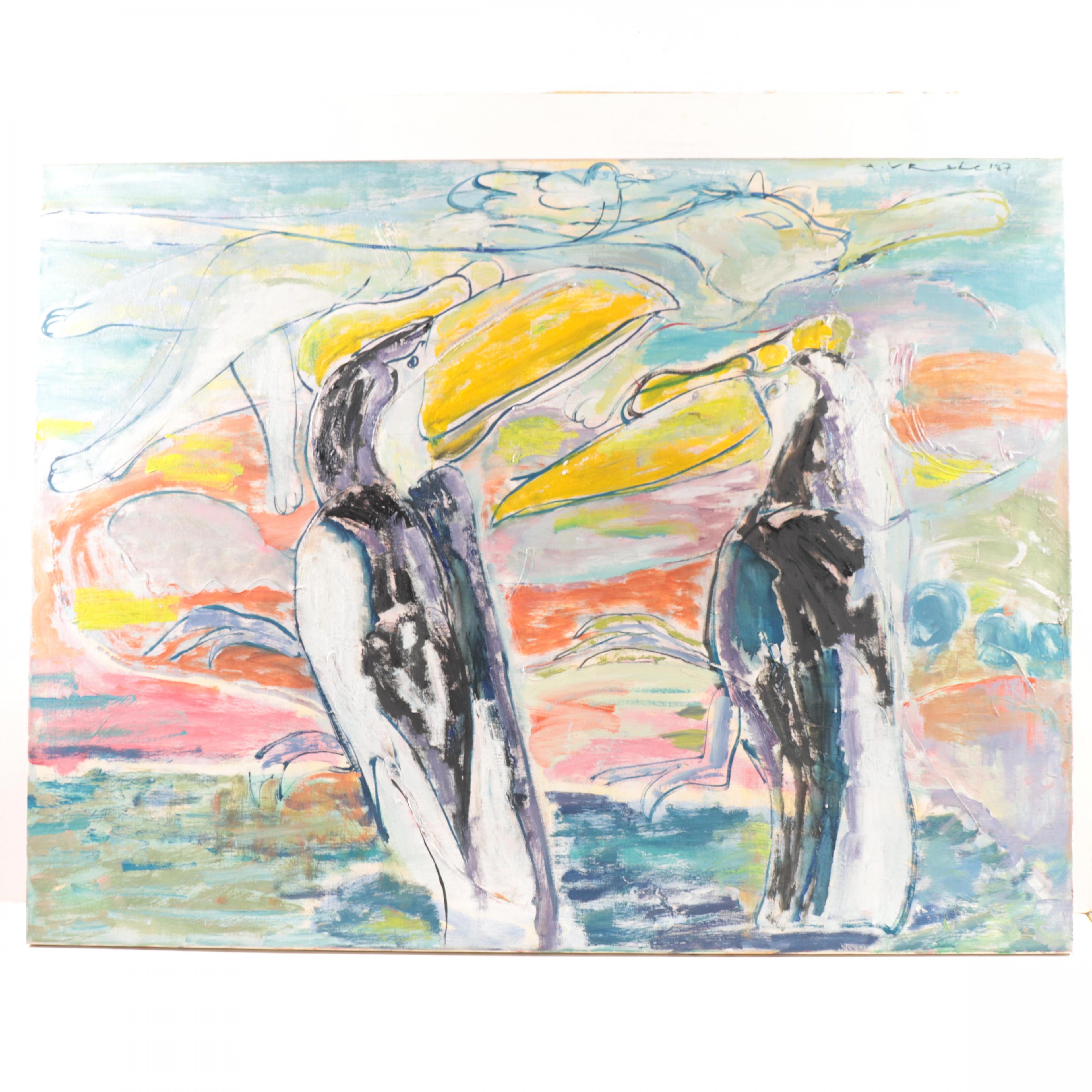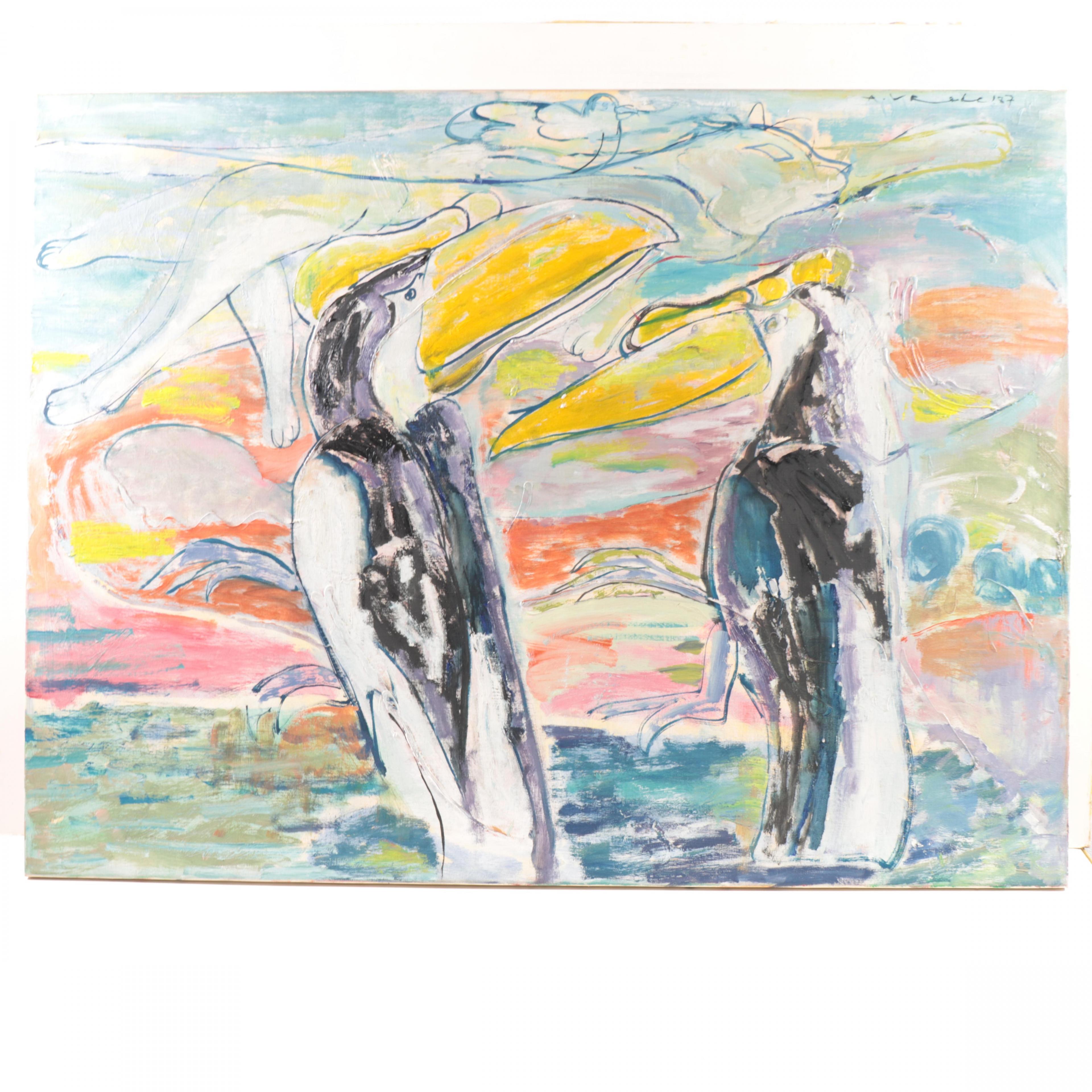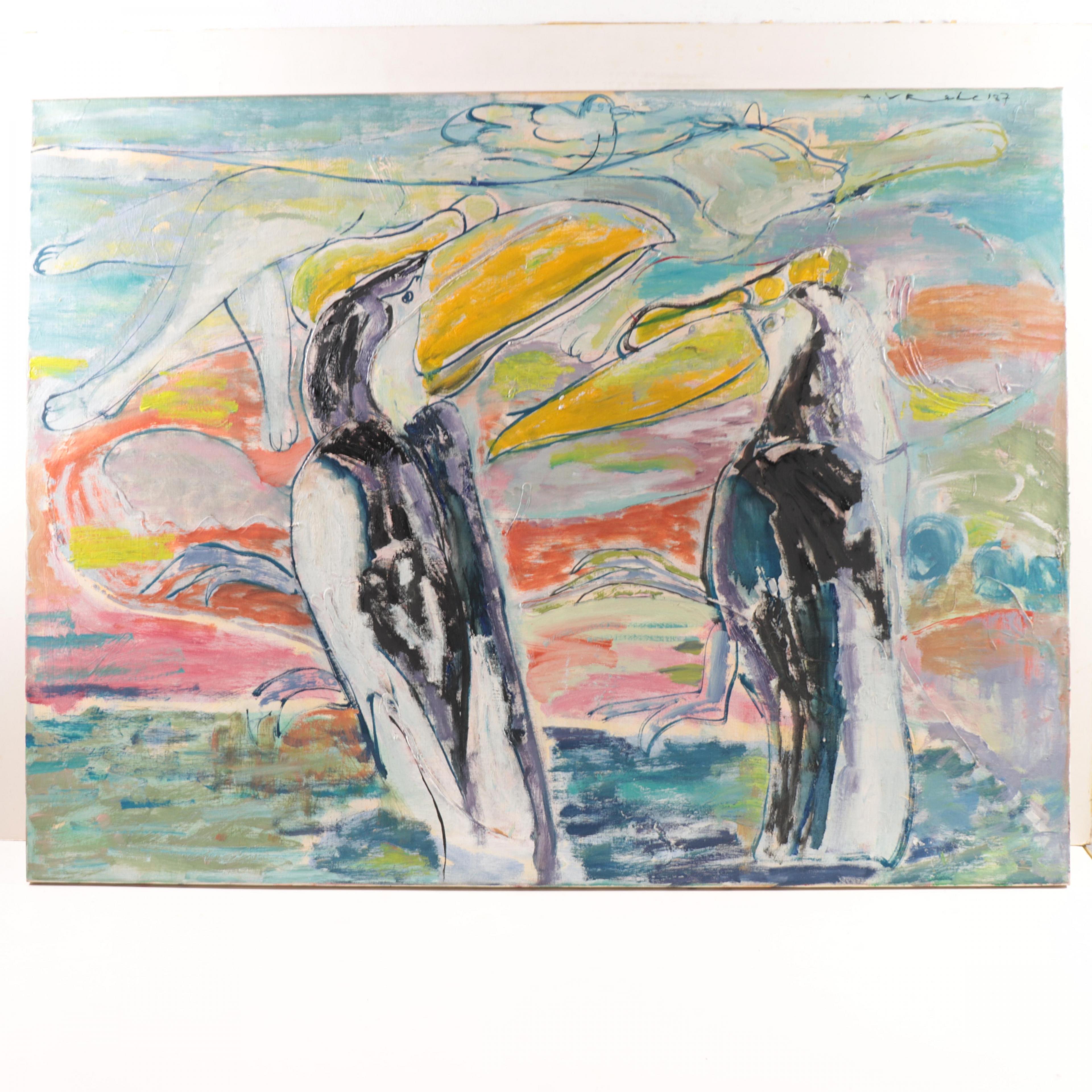 doek, gesign. r.b., '87, 95 x 125 cm.